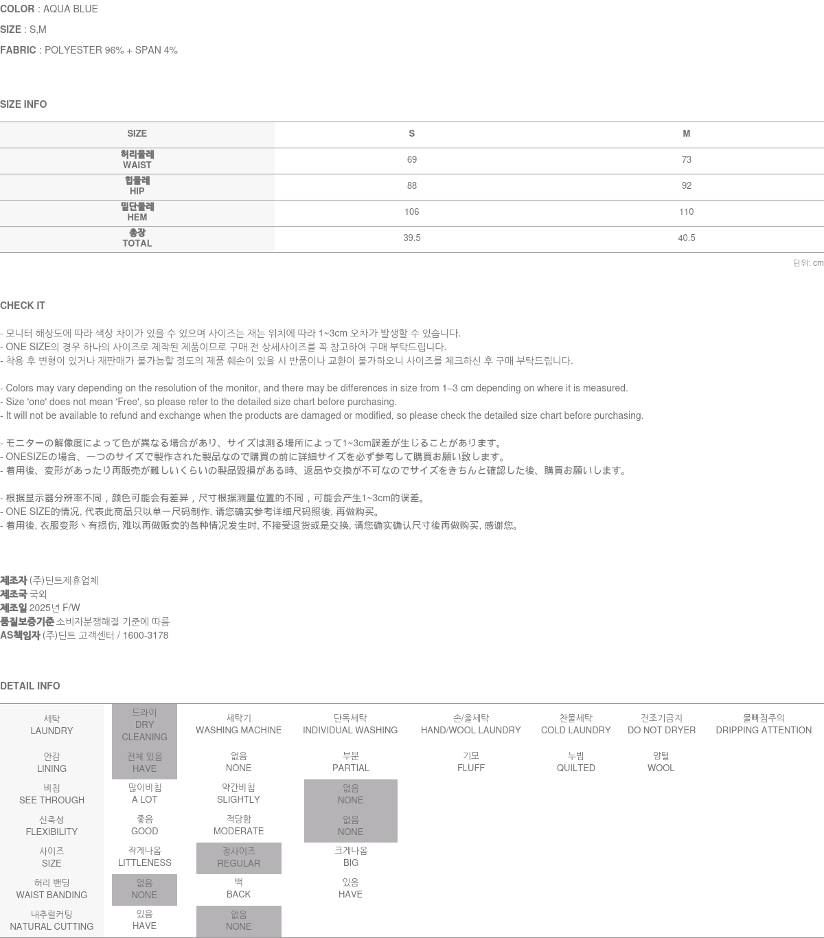 關於售後服務 瑕疵商品, 或是布料瑕疵、不正確標註的尺碼或質料, 引起的問題, 將會爲您進行修復/車縫 → 交換 → 退貨處理 (換貨與退貨的實際舉例, 請參考 ”換貨與退貨“ 與 “無法進行換貨與退貨的情況”之說明.) A/S負責人與連絡電話:DINT.Inc (gbcs_dint@naver.com)