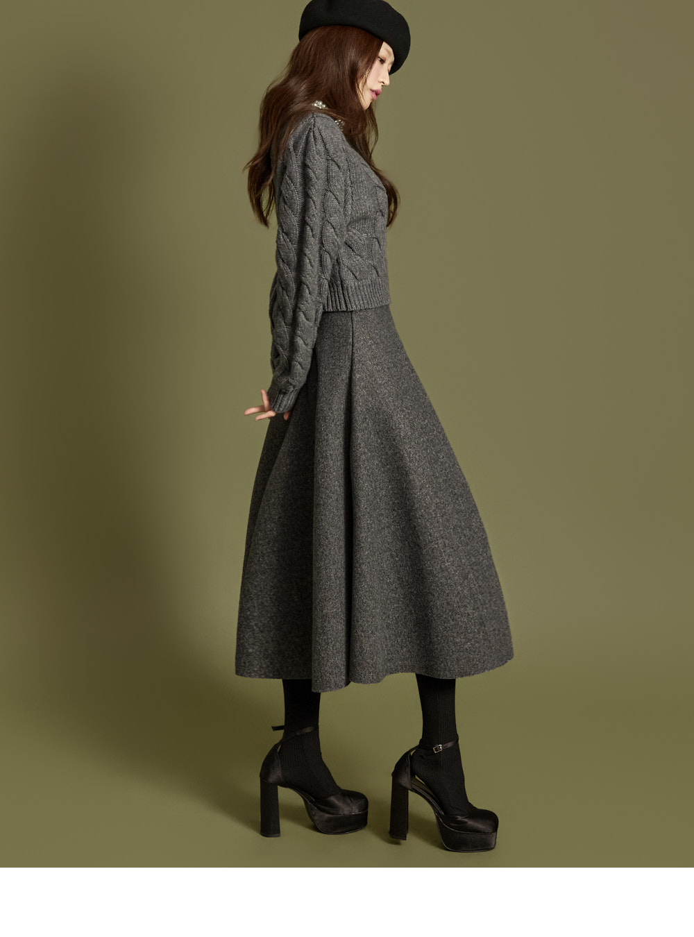这是一款具有高级感氛围的针织上衣。 采用厚实的麻花编织,营造出温暖柔和的氛围,以柔软触感的羊毛针织材质制成,带来舒适的穿着体验。 宽松版型与短款长度打造出利落的剪裁感,颈部加入的珍珠装饰成为亮点,营造出优雅精致的气质,袖口与下摆采用罗纹收边,穿着更为稳固。 无论单独穿着还是搭配多样下装,都能展现出富有品味的造型感,仅凭一件即可为整体造型增添亮点。不仅适合日常穿搭,也非常适合年末聚会或正式场合。 模特身高171CM,穿着ONE码,GRAY颜色。