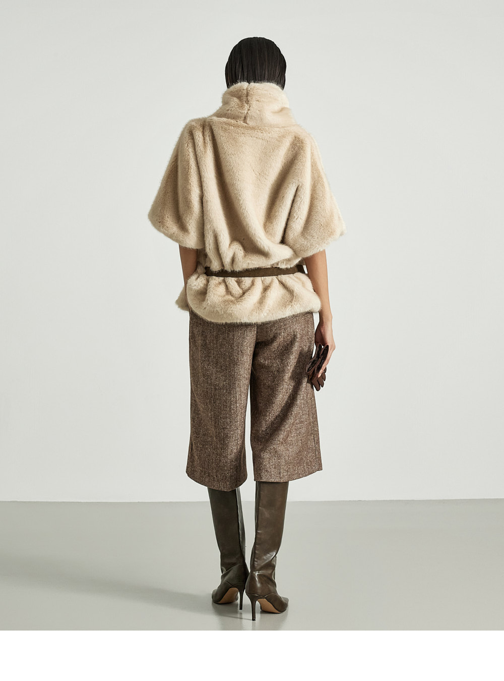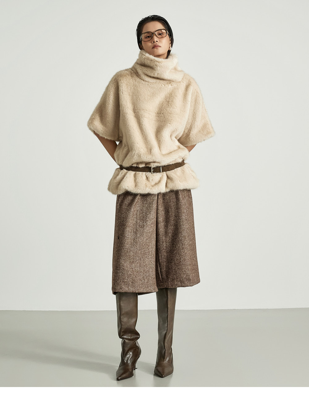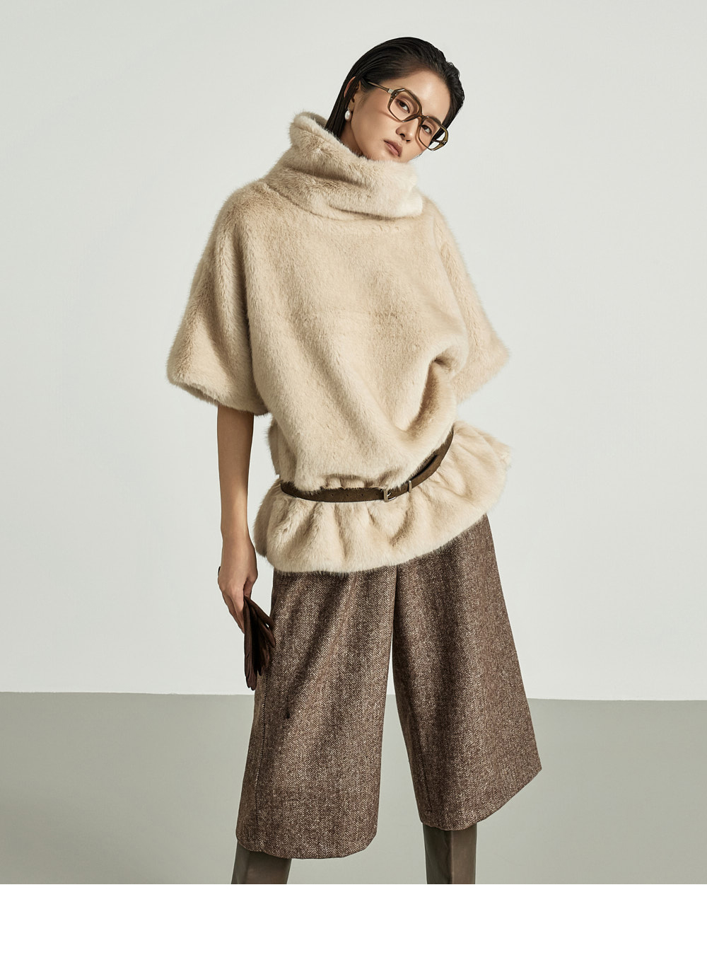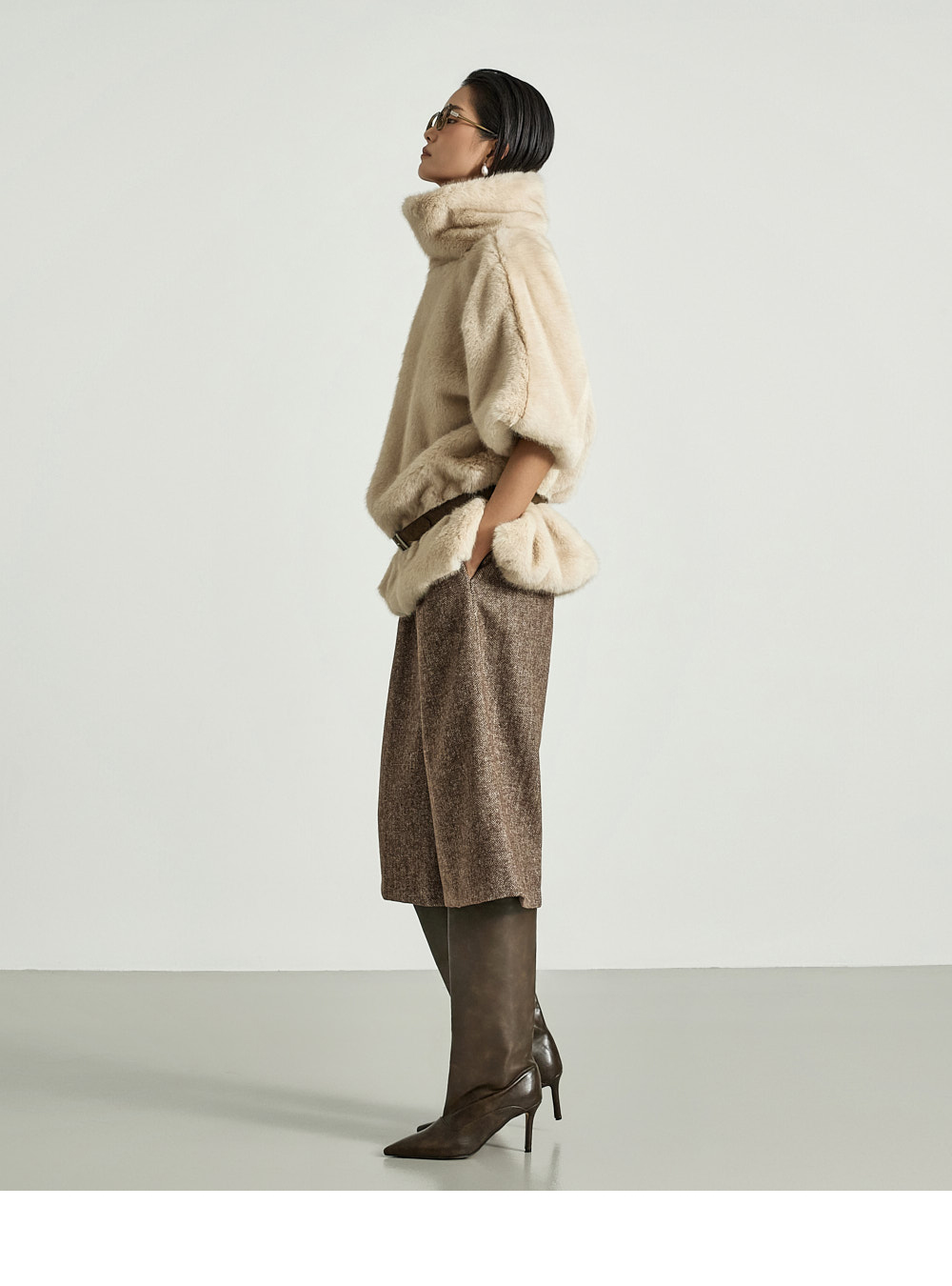模特身高173CM,穿着ONE码,颜色为象牙色。
