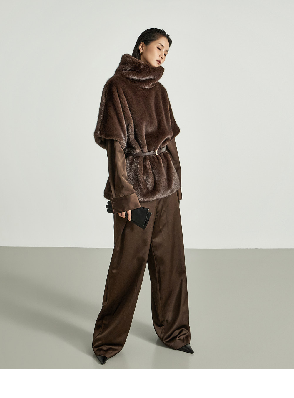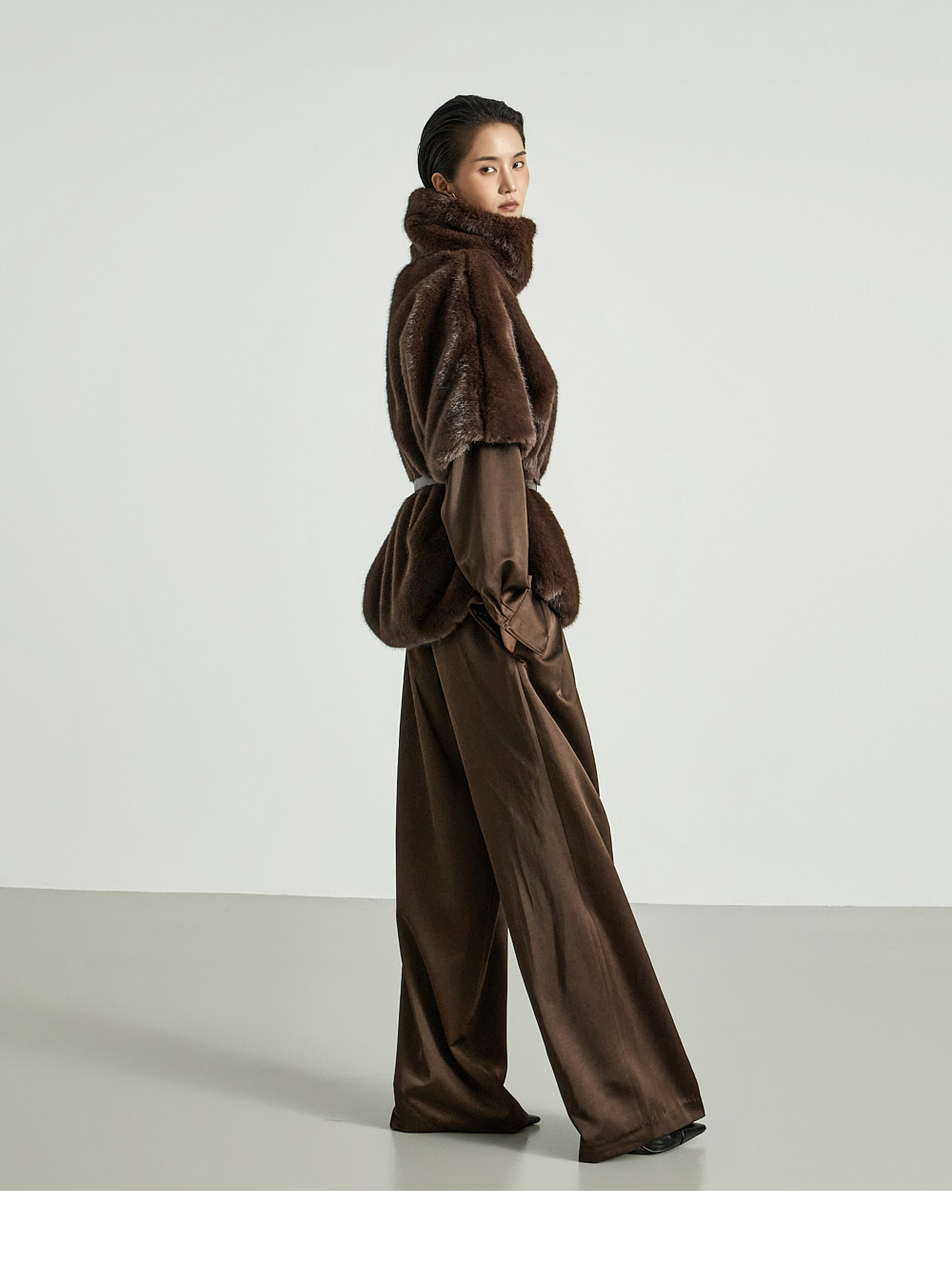 模特身高173CM,穿着ONE码,颜色为棕色。