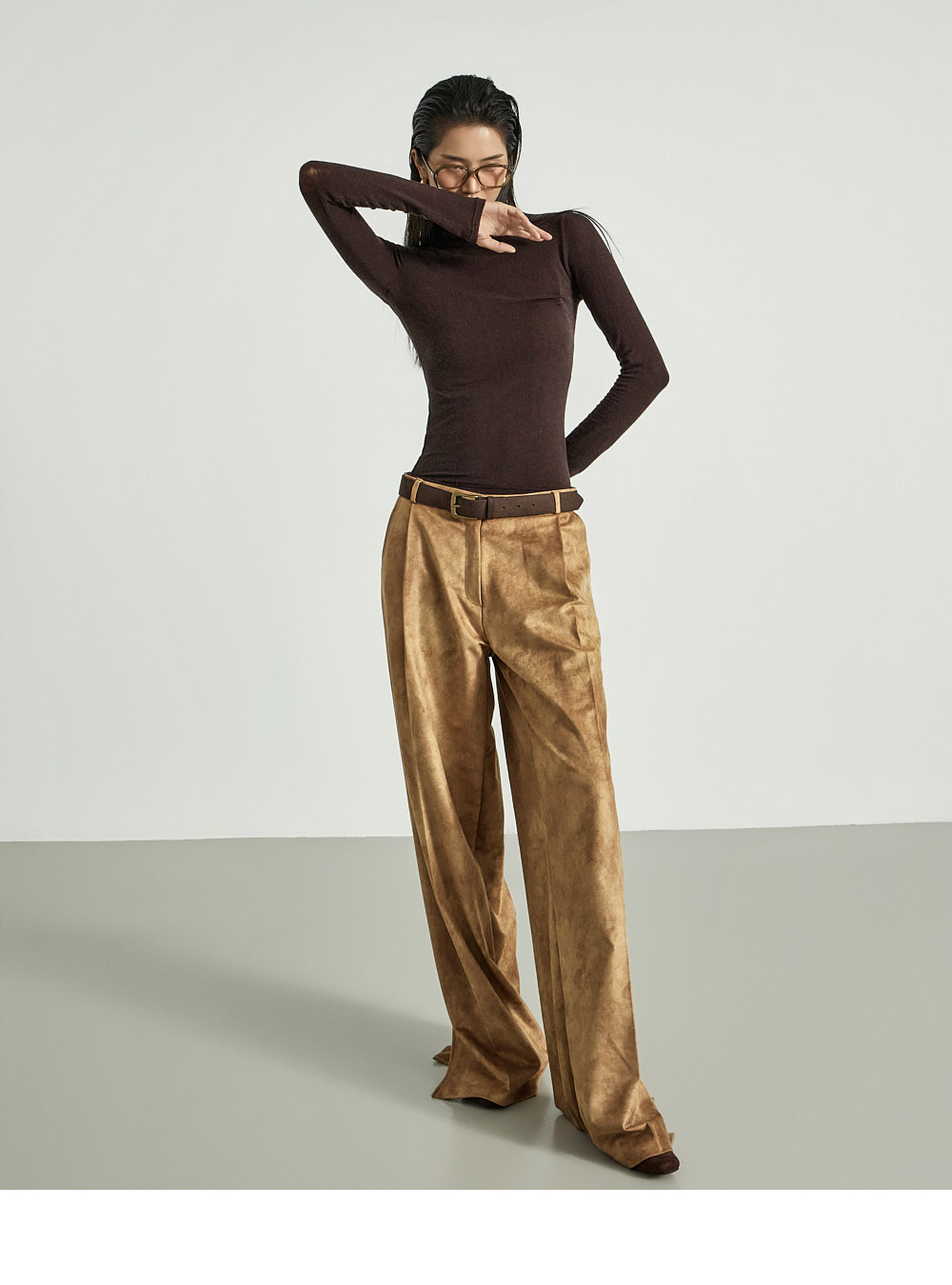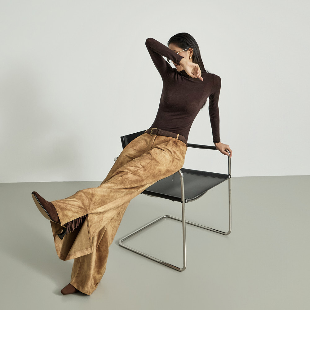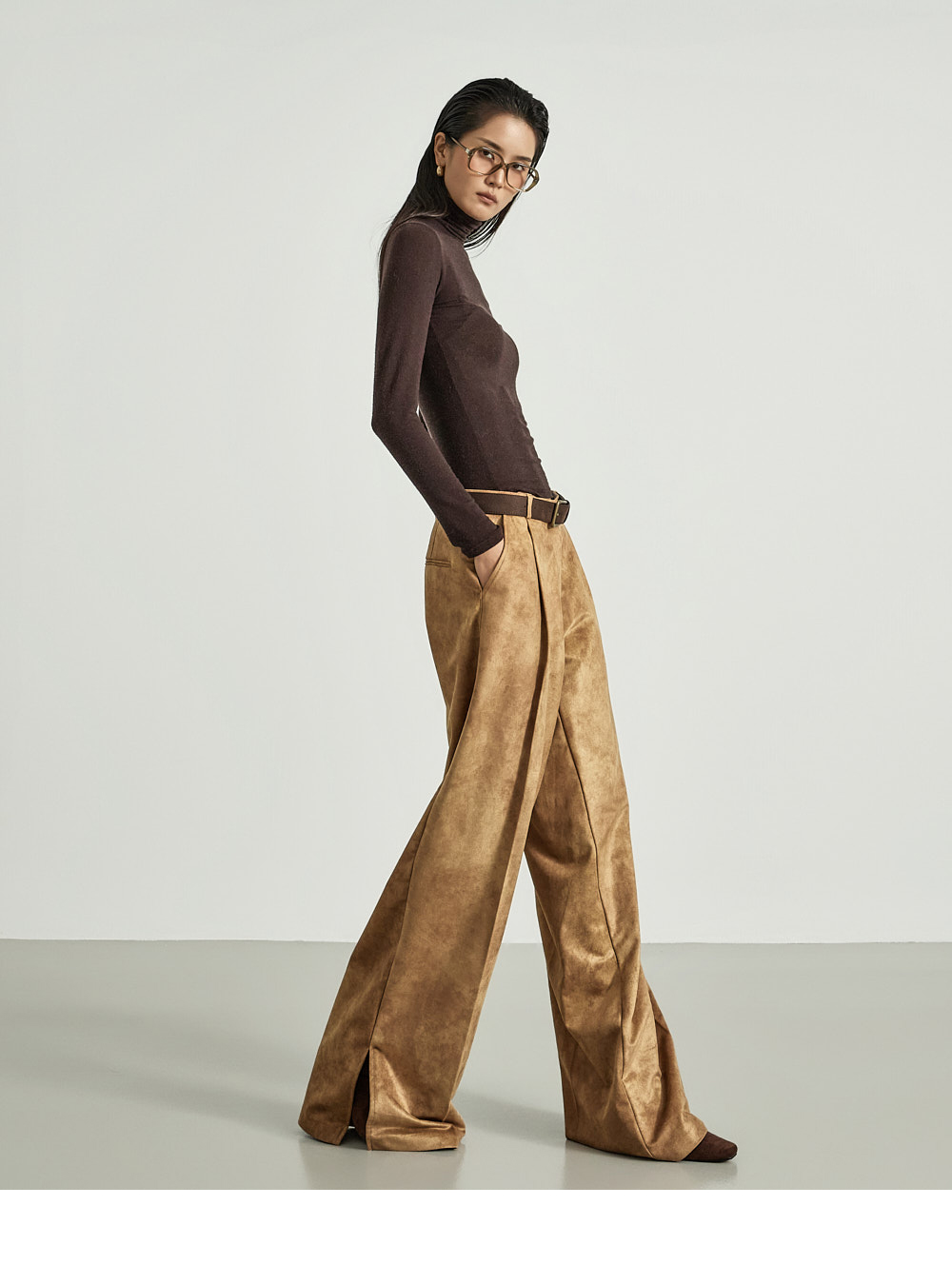前置褶皱与两侧开衩细节营造精致利落的轮廓。