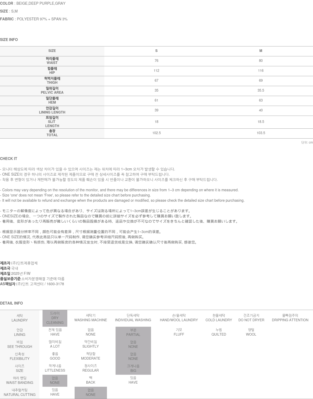 • 丹寧商品的部分, 商品特徵上洗滌時有可能會掉色, 着用時請多加留意.