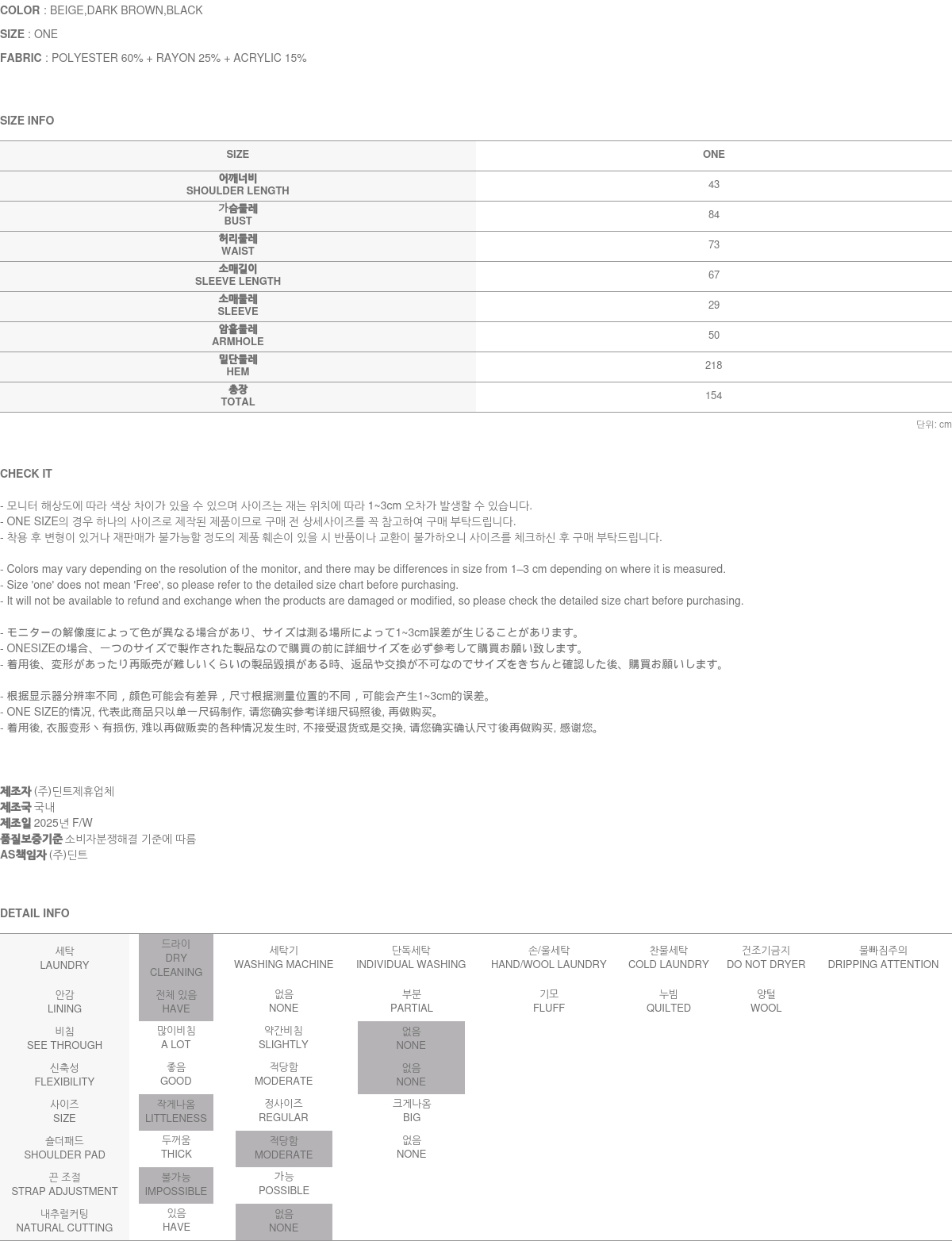 - DINT的所有商品, 使用一般洗滌或是烘乾機, 皆有可能成爲變形或是商品損傷的原因, 建議您使用乾洗.