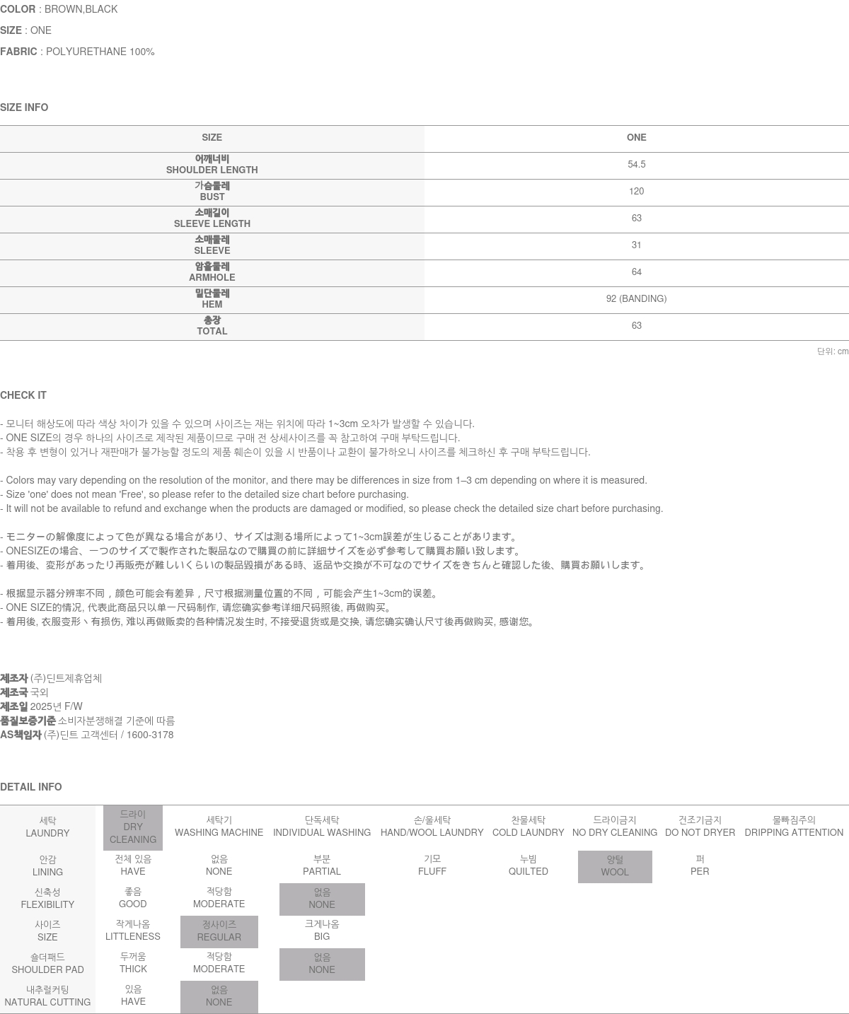 換貨 與 退貨 收到商品後, 7日內能在我的頁面申請交換或退貨, 申請後請將商品寄回DINT. 申請後, 請填寫包裹裡一同寄去的撤回申請書, 再將包裹包裝成一開始您收到時的狀態(包裝袋、衣架、贈品皆要一起寄送回來)發送至DINT即可. 因爲顧客變心所申請的換貨與退貨, 運費將由顧客負擔;誤送或是商品瑕疵的部分, 將由DINT負擔運費. 退貨住所爲:首爾市 衿川區 加山洞 459-8號 大韓通運 7樓 DINT股份有限公司 品質保證標準說明:符合電子商務等有關消費者保護法律規定的消費者可申請交換或是退貨.