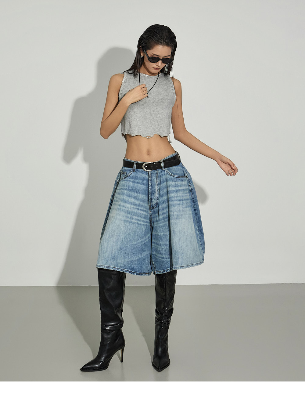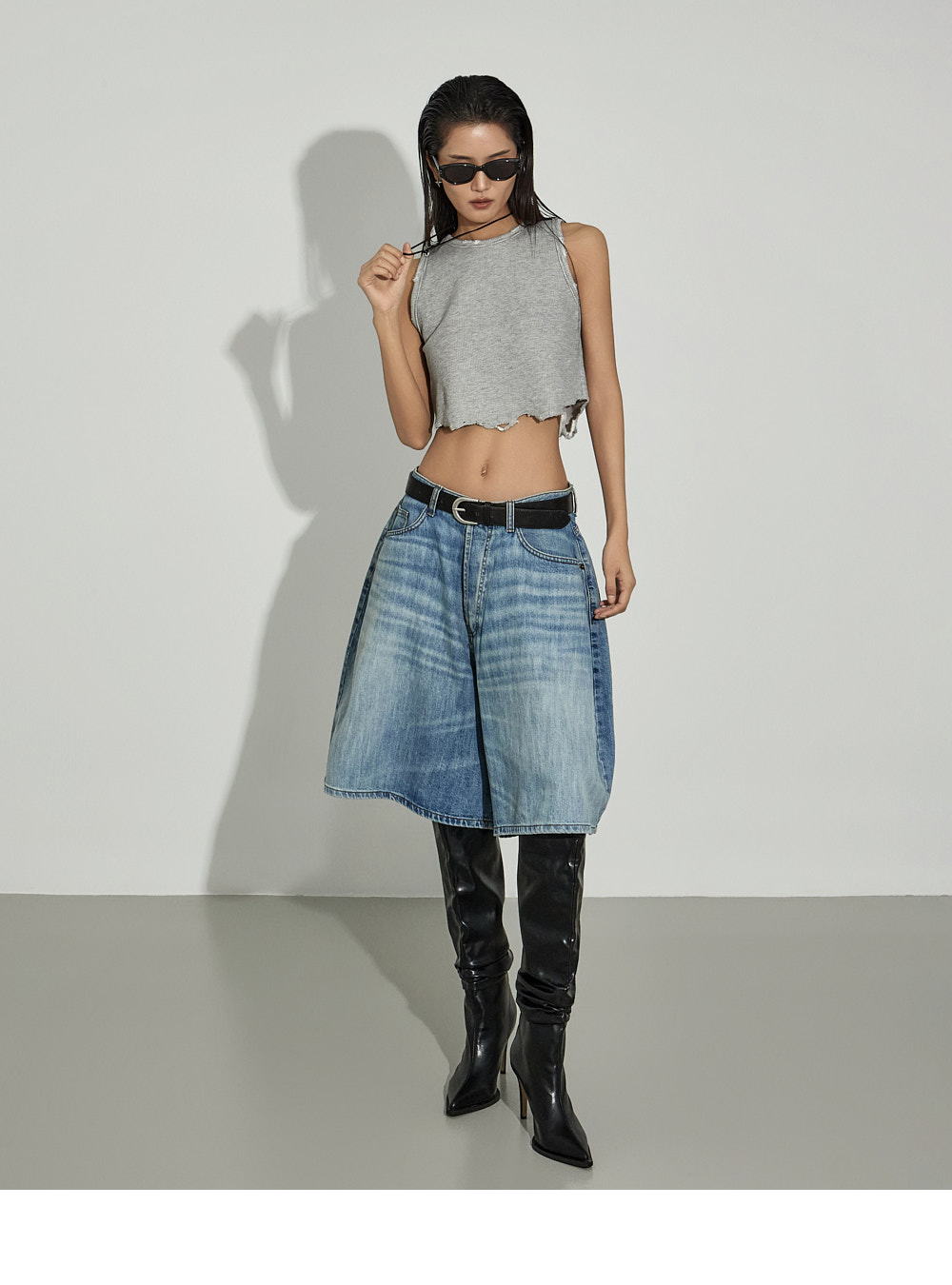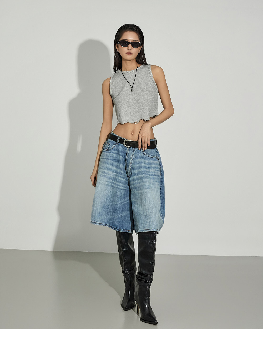 街头风格的短款无袖上衣。 采用棉、粘纤与氨纶混纺材质制作,柔软且具有适度弹性,提供舒适的穿着感。 下摆自然剪裁并加入破坏感设计,呈现独特且复古的风格,宽松圆领设计,无负担地穿着。 使用保暖性较高的秋冬季面料,可单穿,也可作为各种外套内搭。 是打造潮流街头风格的必备单品。 模特身高173CM,穿着ONE码,灰色。