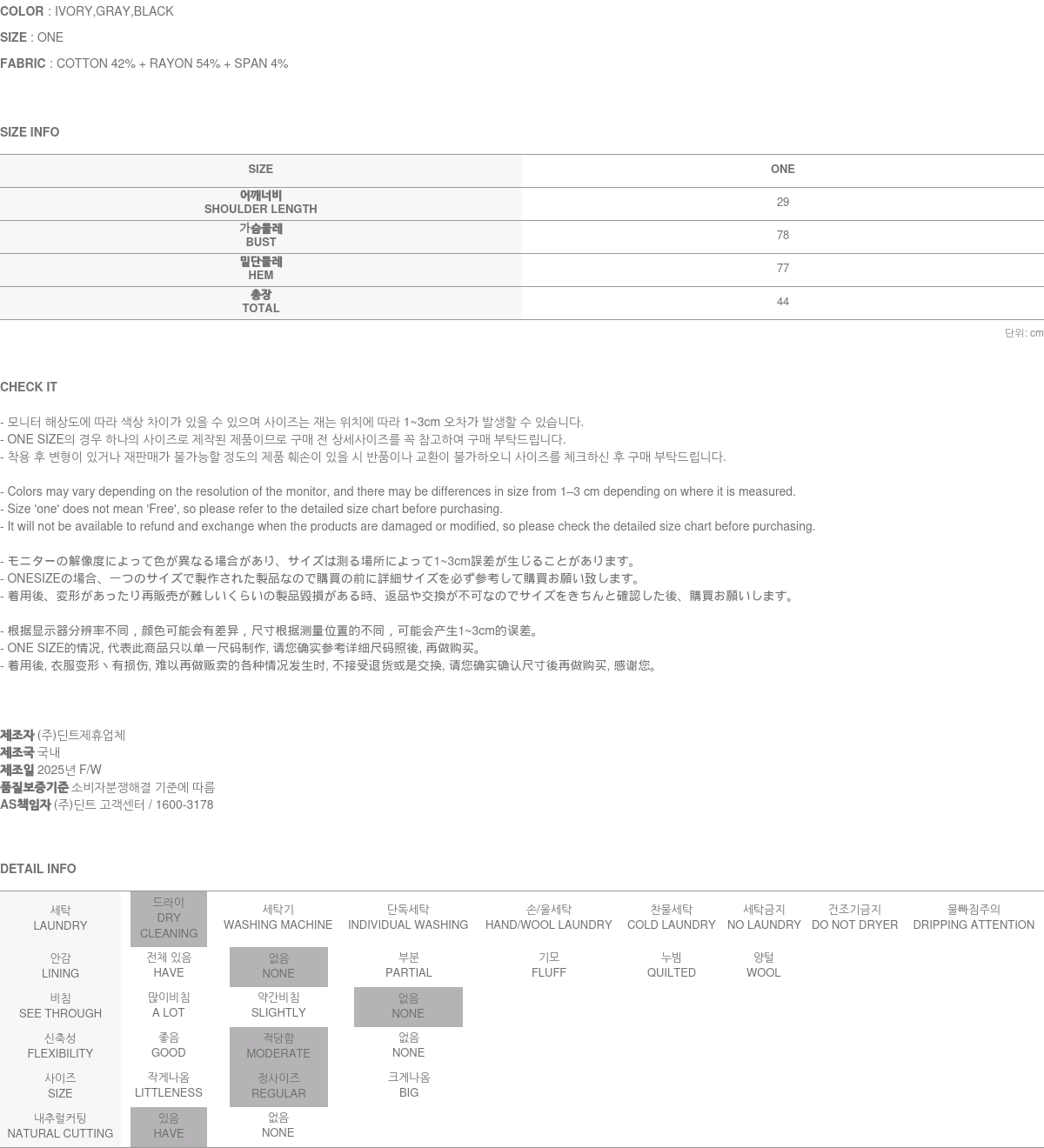 關於售後服務 瑕疵商品, 或是布料瑕疵、不正確標註的尺碼或質料, 引起的問題, 將會爲您進行修復/車縫 → 交換 → 退貨處理 (換貨與退貨的實際舉例, 請參考 ”換貨與退貨“ 與 “無法進行換貨與退貨的情況”之說明.) A/S負責人與連絡電話:DINT.Inc (gbcs_dint@naver.com)