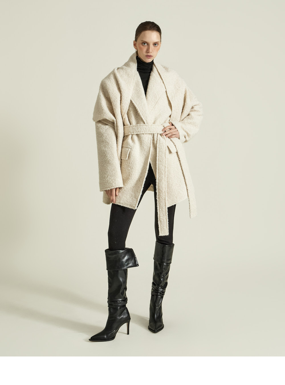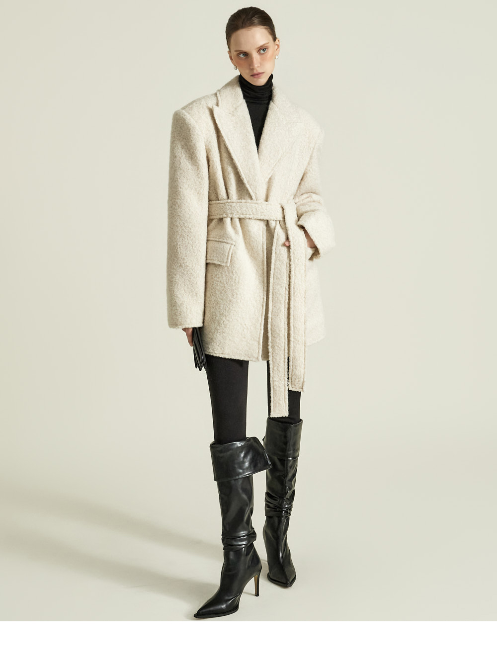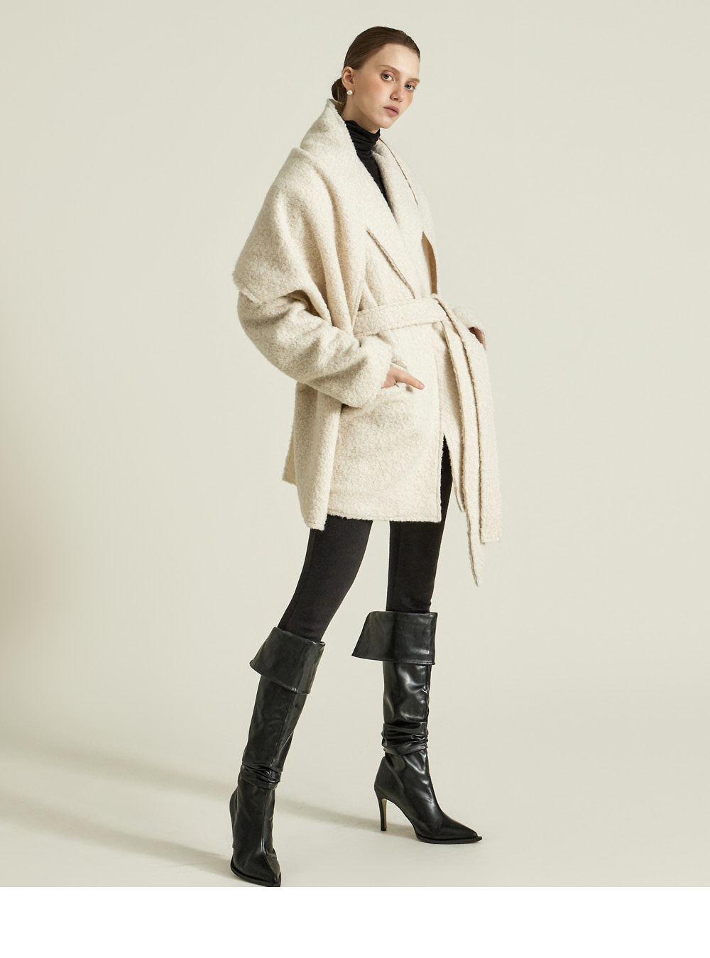 173CM 模特穿着 ONE 尺码,颜色为 象牙白。