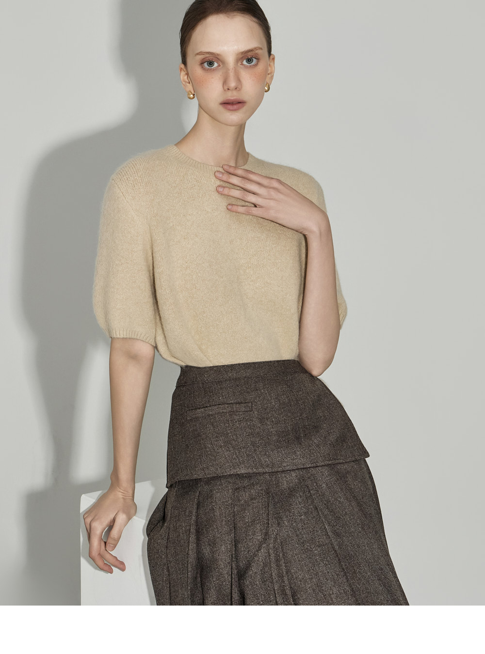 174CM 模特穿着 ONE 尺码,颜色为 BEIGE。