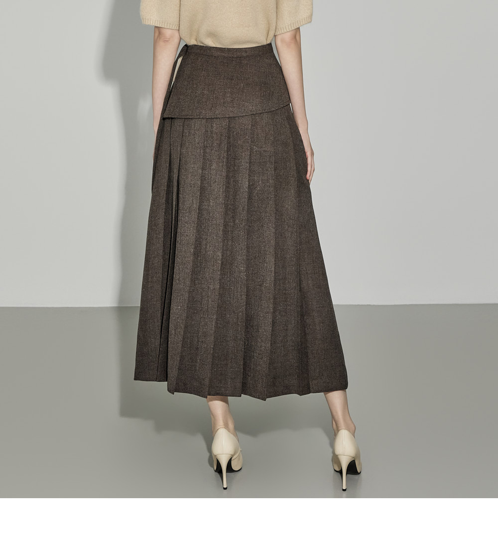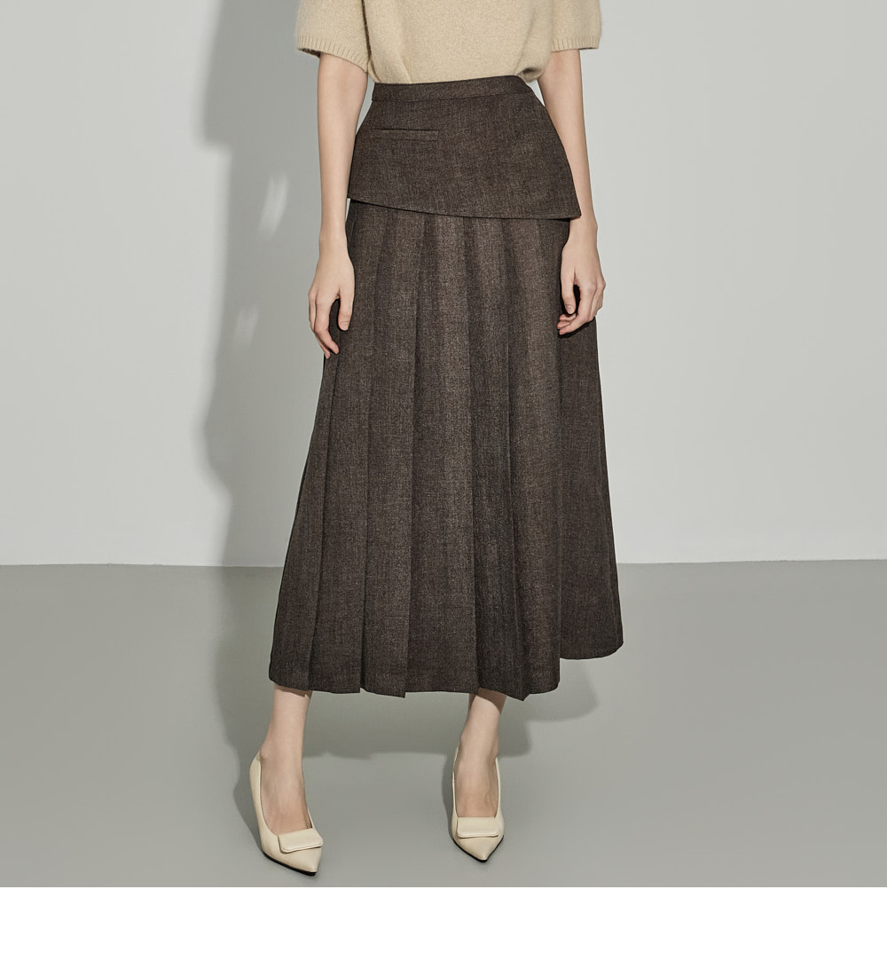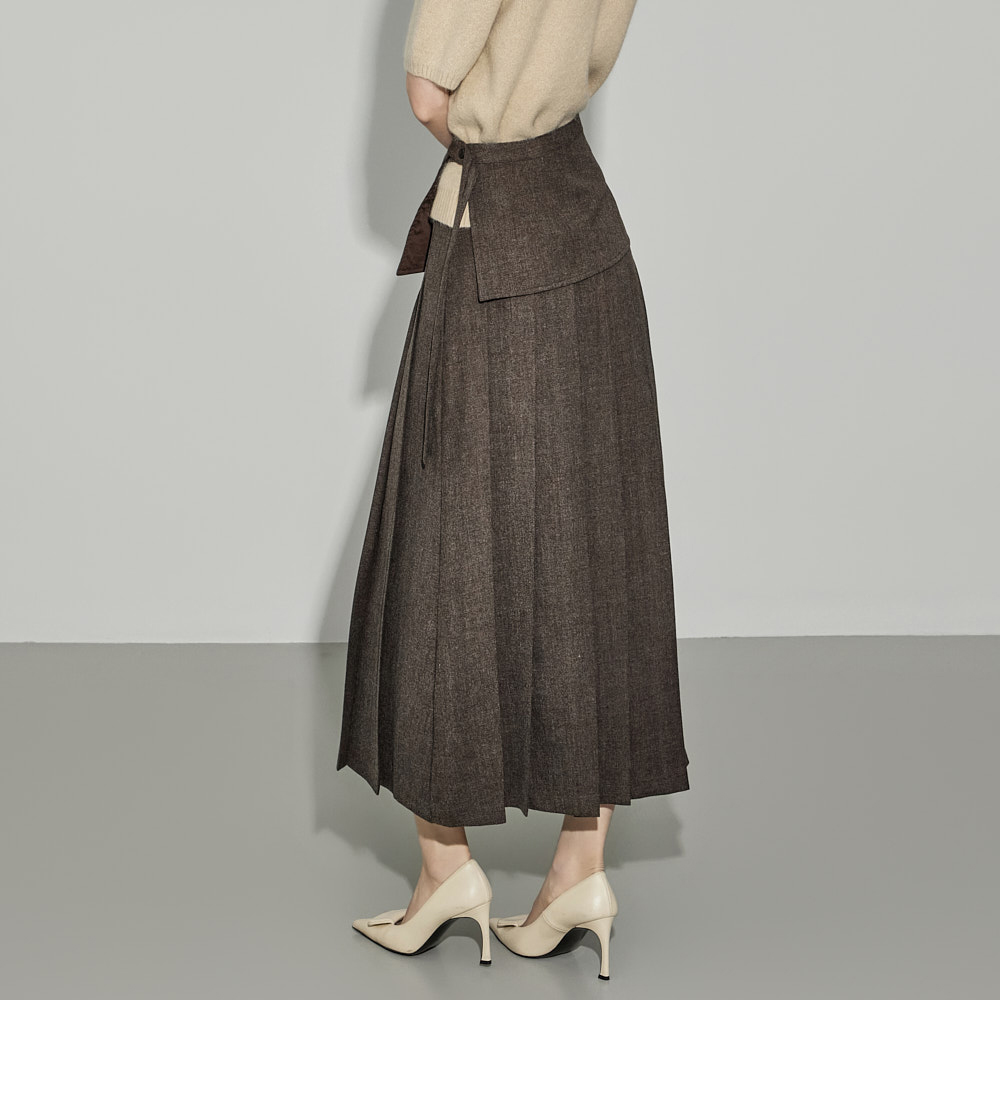 这是一款女性化风格的宽松绑带套装裙。 由聚酯纤维、粘纤、腈纶混纺材质制成,坚挺而柔韧,展现高级质感。 百褶设计自然呈现蓬松感,随着动作流动的剪影勾勒出女性化线条。 套装配有绑带,可进行多种搭配,侧拉链设计方便穿脱,部分内衬提供稳固的穿着感,单穿或与各类针织衫搭配,都能打造更加完整的造型。 174CM 模特穿着 S 尺码,颜色为 BROWN。
