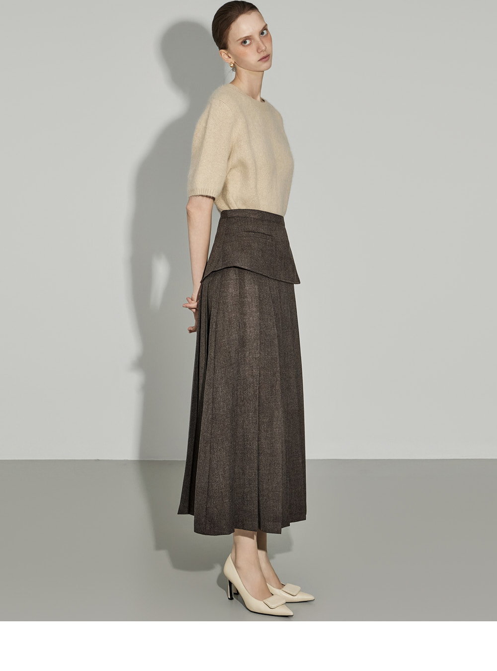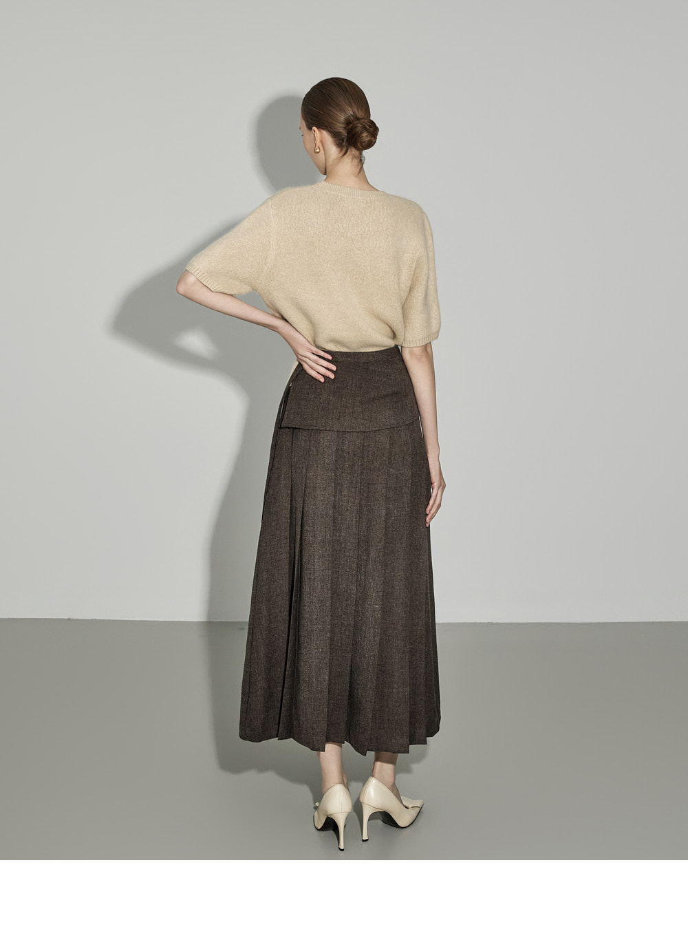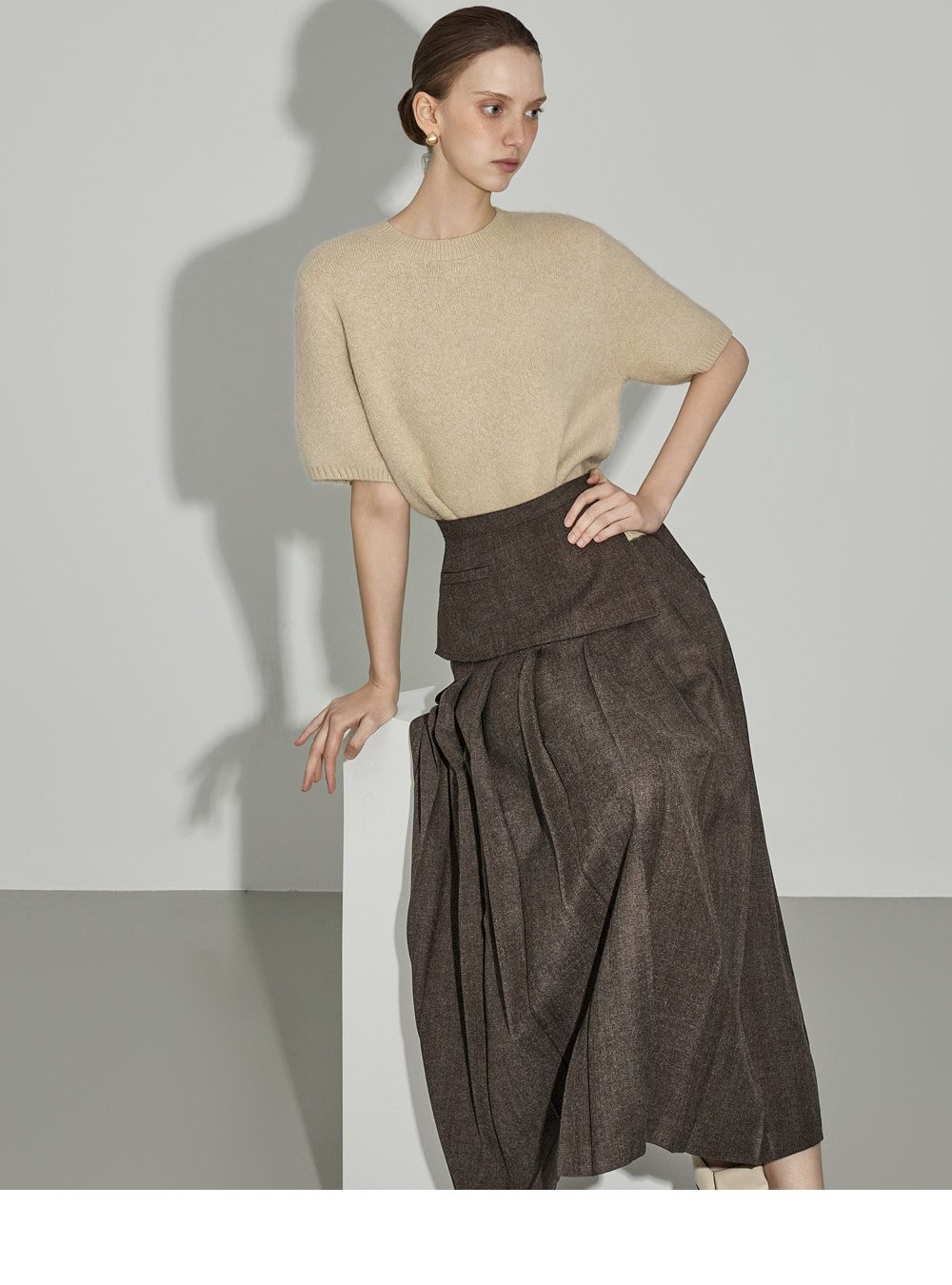 这是一款女性化风格的宽松绑带套装裙。 由聚酯纤维、粘纤、腈纶混纺材质制成,坚挺而柔韧,展现高级质感。 百褶设计自然呈现蓬松感,随着动作流动的剪影勾勒出女性化线条。 套装配有绑带,可进行多种搭配,侧拉链设计方便穿脱,部分内衬提供稳固的穿着感,单穿或与各类针织衫搭配,都能打造更加完整的造型。 174CM 模特穿着 S 尺码,颜色为 BROWN。