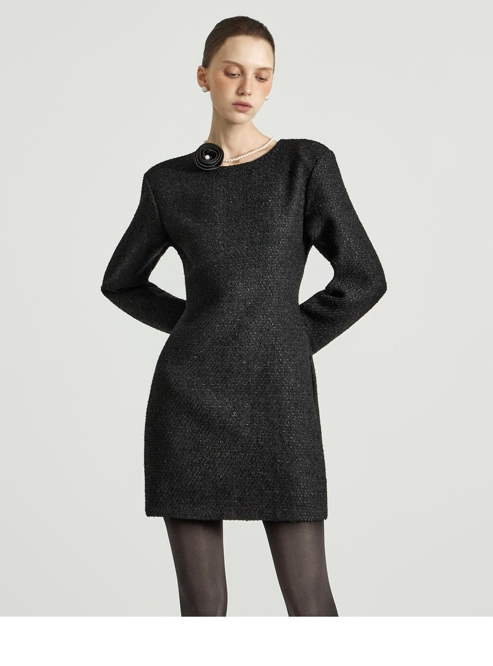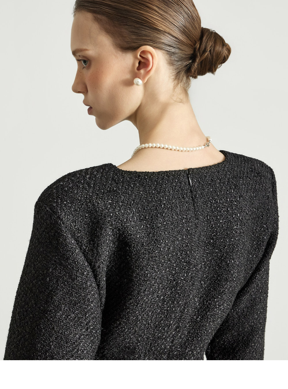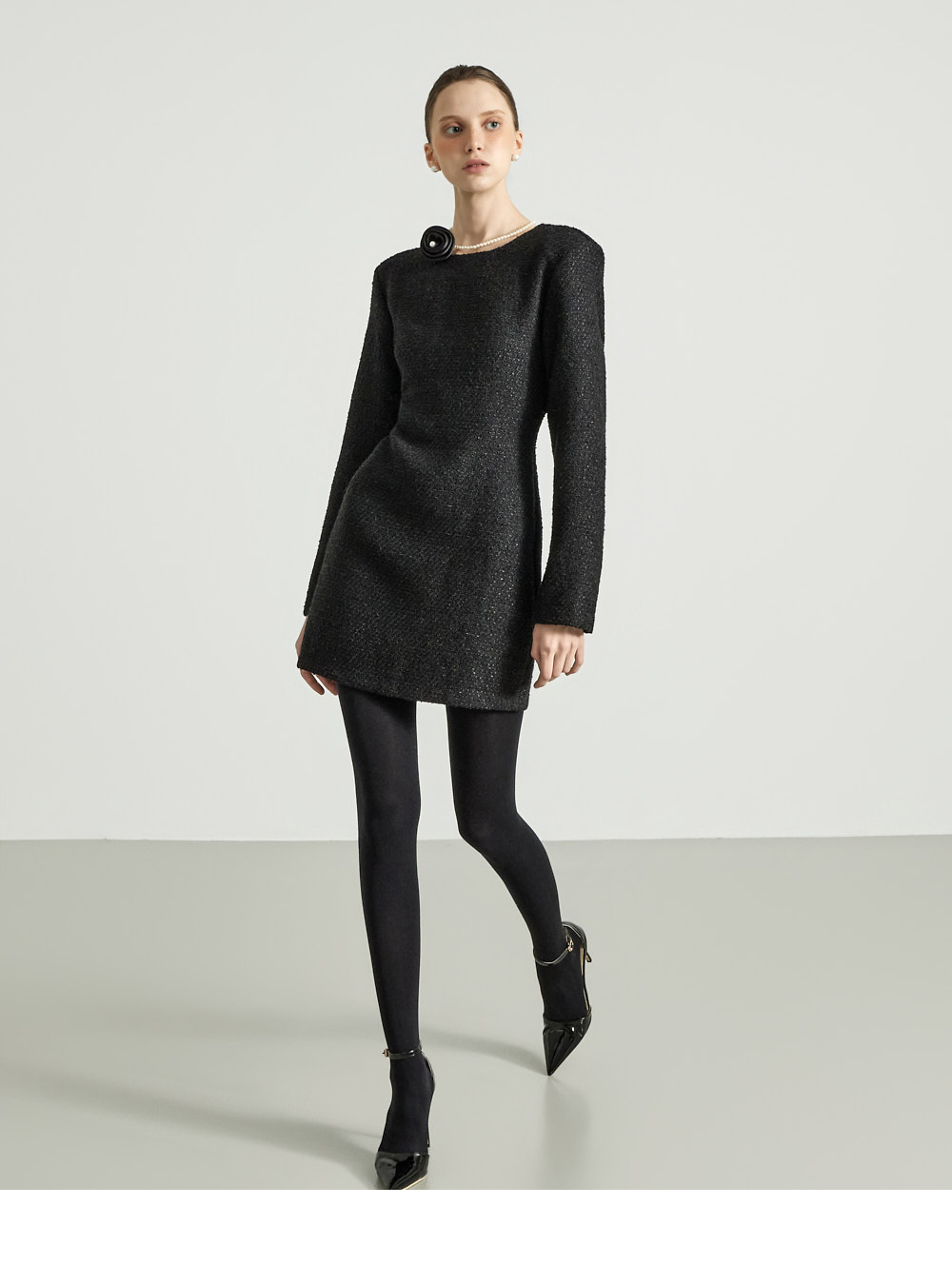 局部里衬设计增加穿着舒适感,背部拉链便于轻松穿脱,同时肩垫设计让整体剪裁更均衡。迷你裙长度能拉长腿部比例。