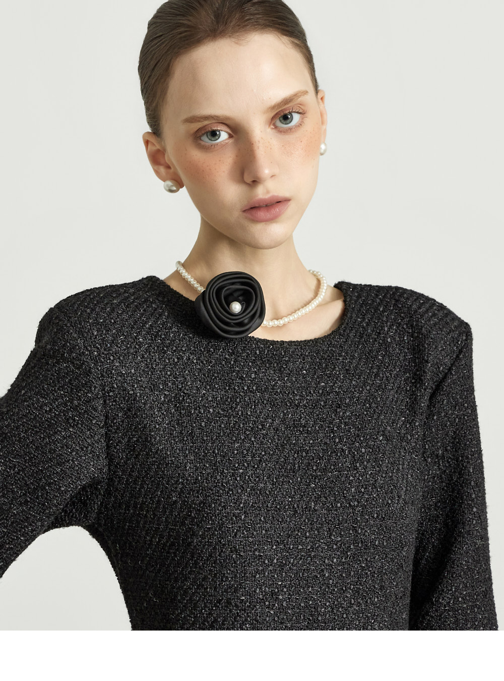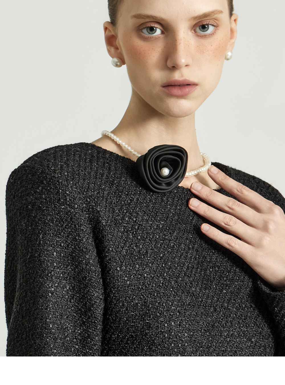 搭配珍珠项链和花朵胸针套装,可进行多样化搭配,根据造型可呈现浪漫或经典的氛围。