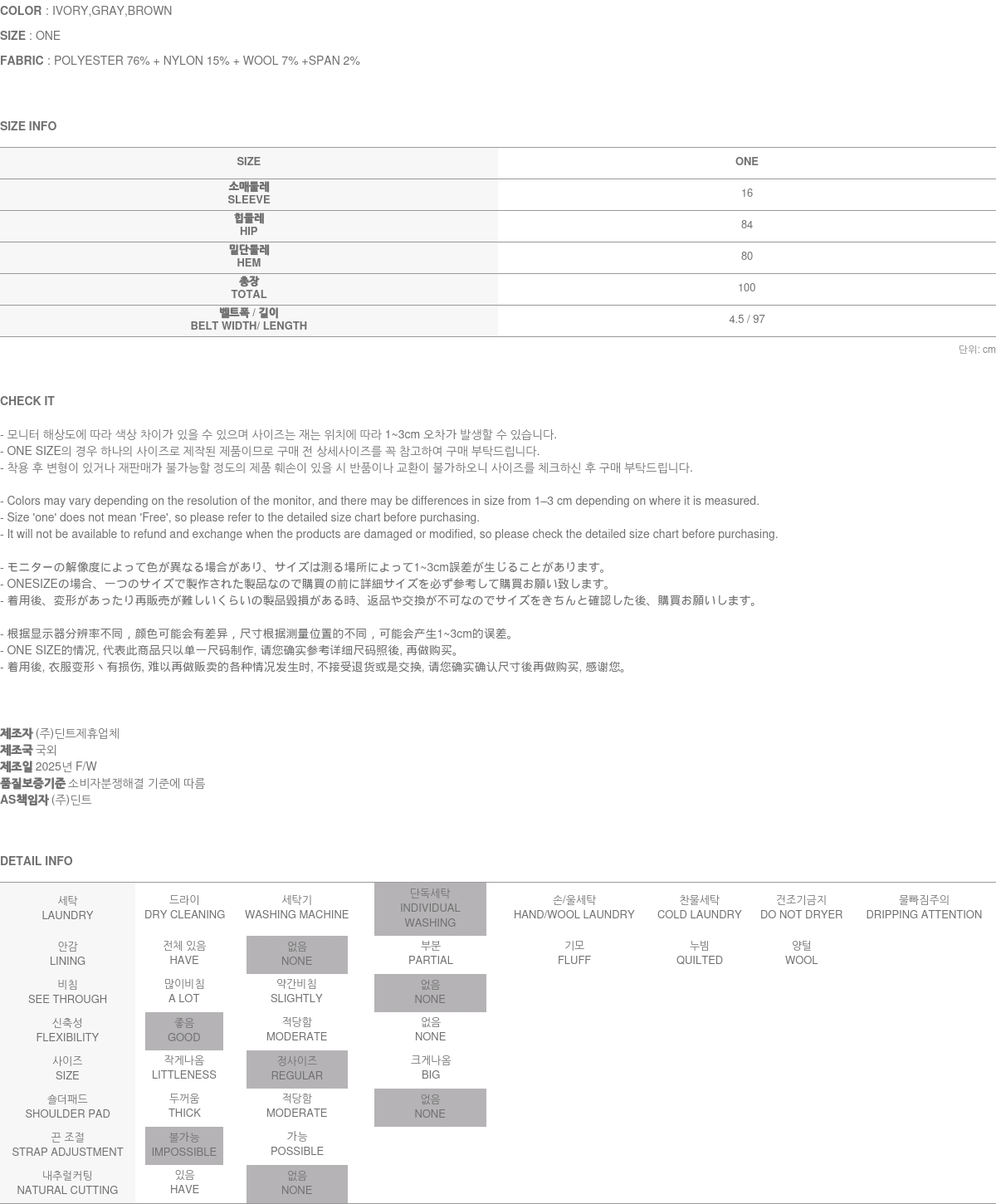 171CM 모델 ONE 사이즈, IVORY 컬러 착용하였습니다.