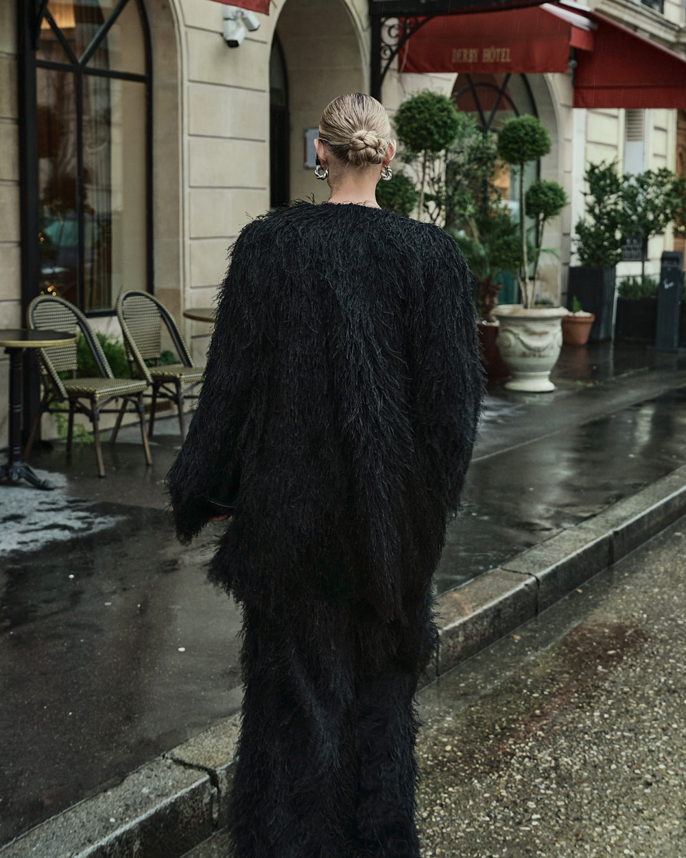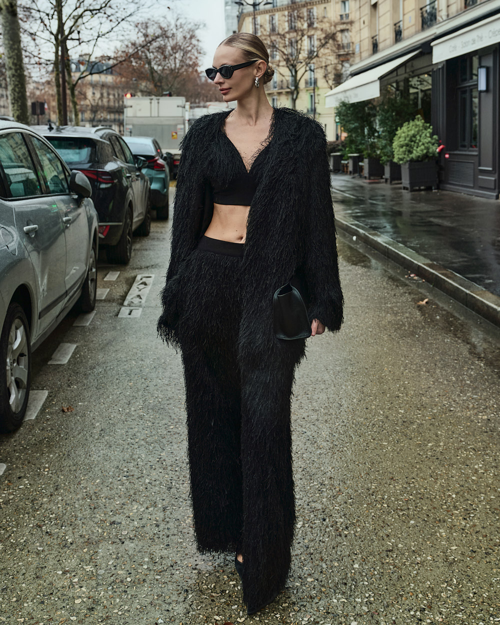 长款裤长与宽松版型自然修饰腿型,