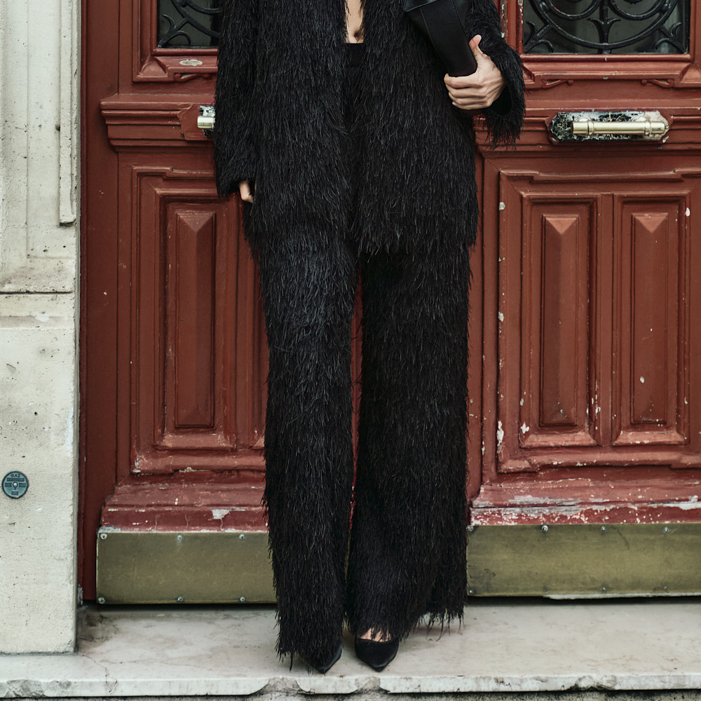 这是一款突显独特氛围的宽腿裤。