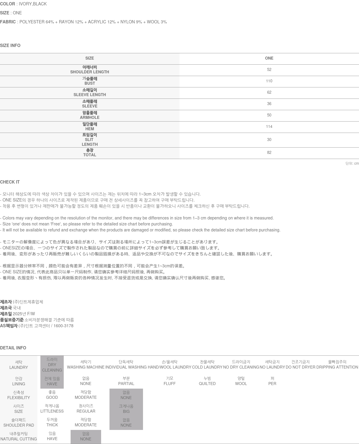 • DINT的所有商品, 使用一般洗滌或是烘乾機, 皆有可能成爲變形或是商品損傷的原因, 建議您使用乾洗.