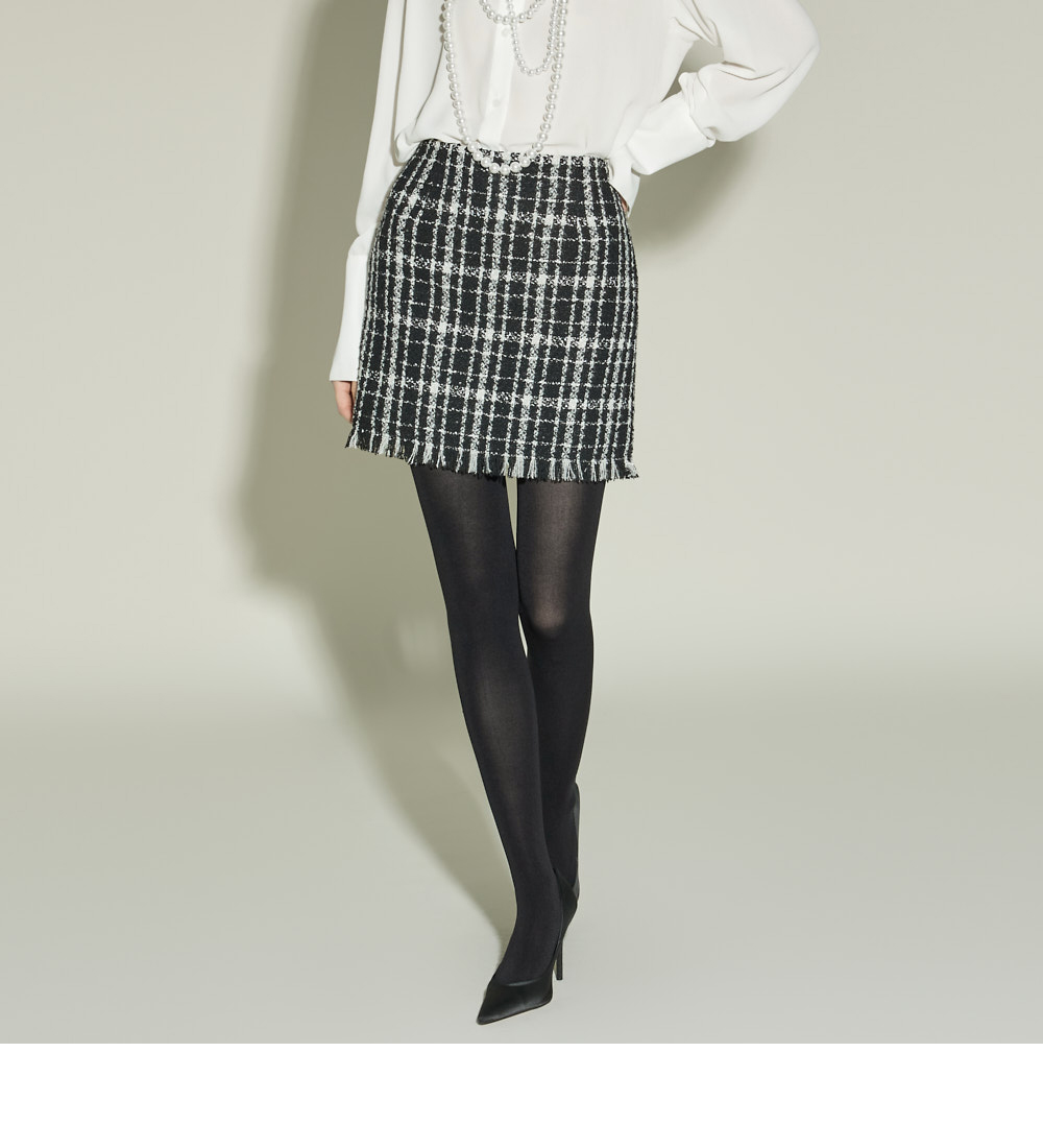 174CM模特穿外套ONE码 / 裙子S码,黑色。