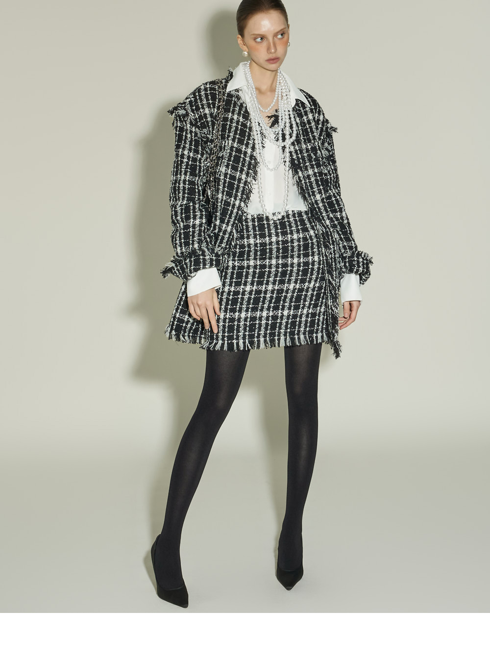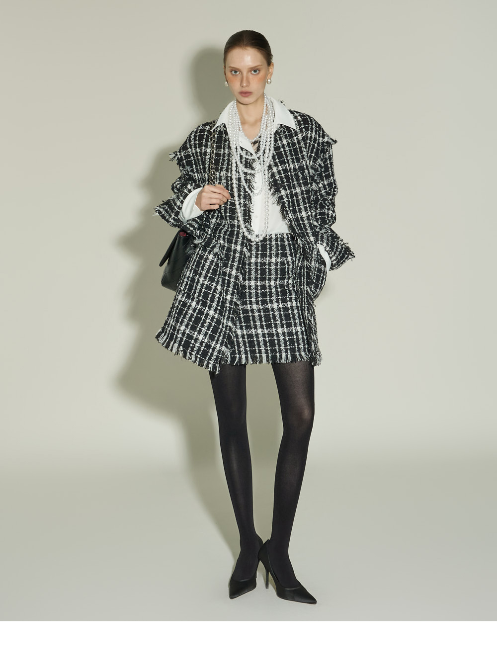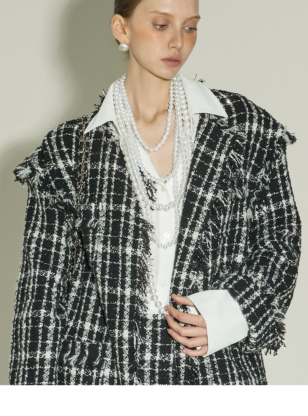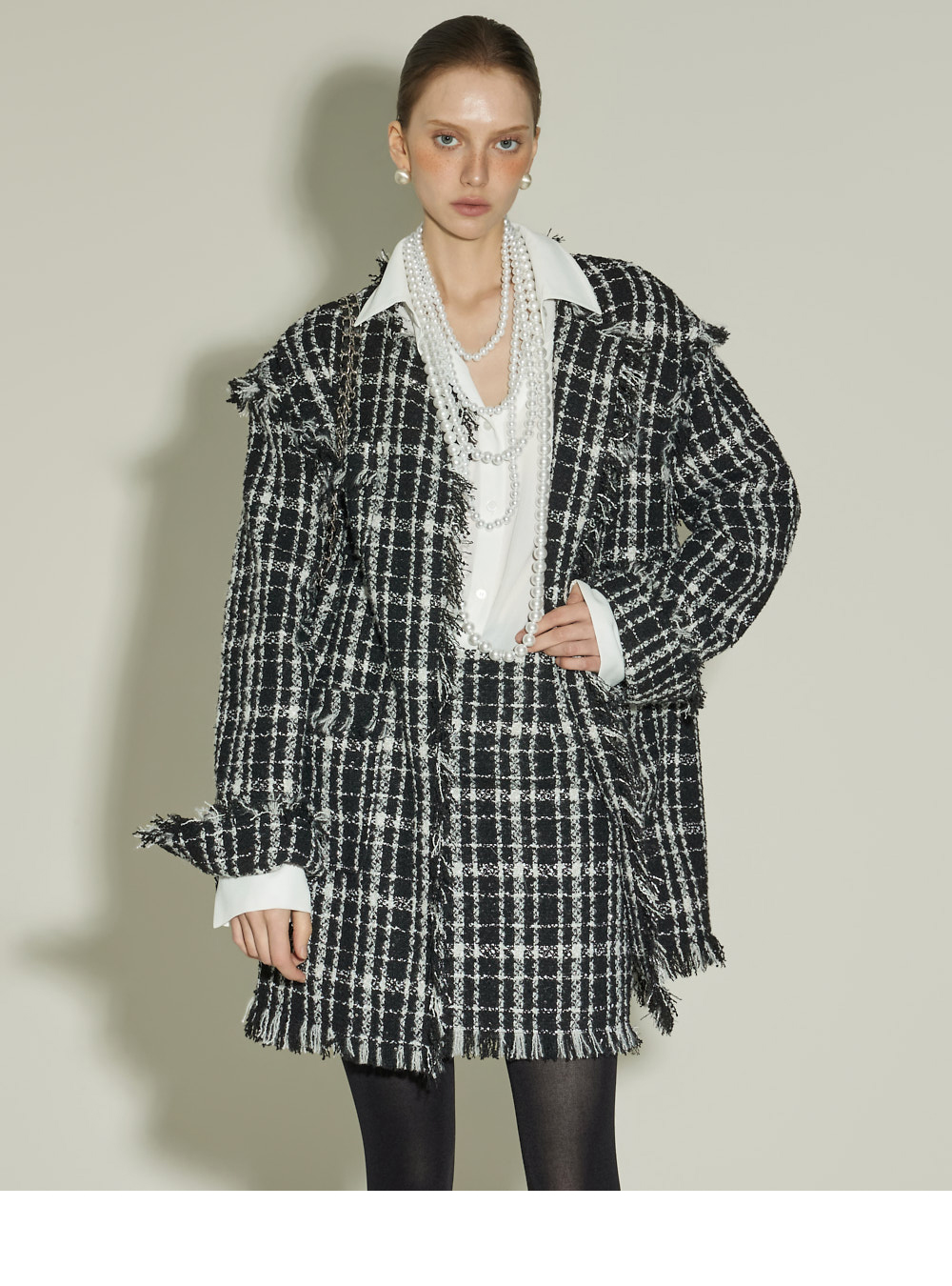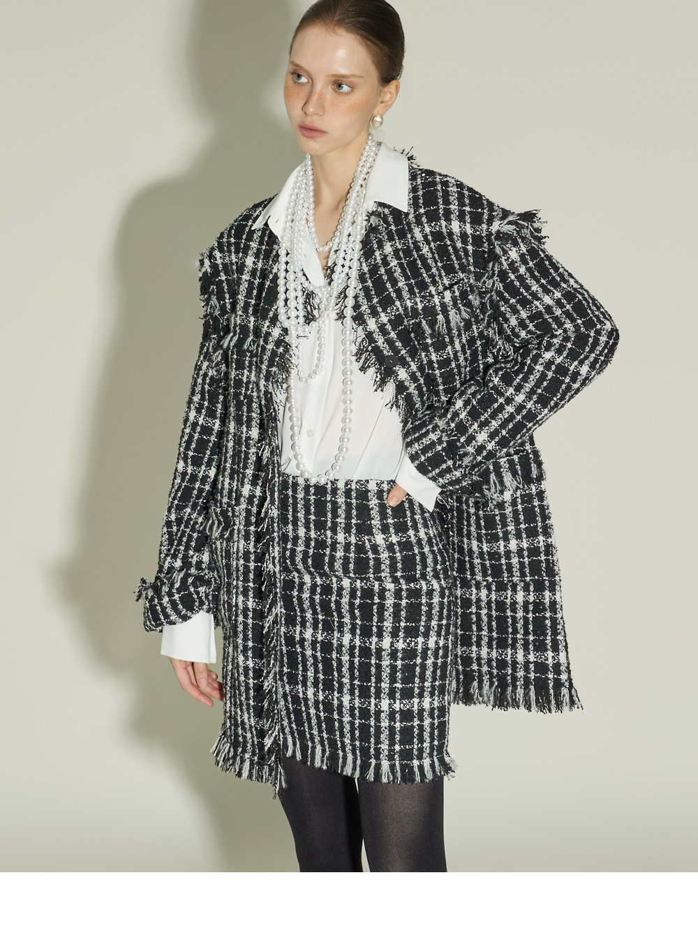 立体的粗花呢质感与自然的流苏细节,