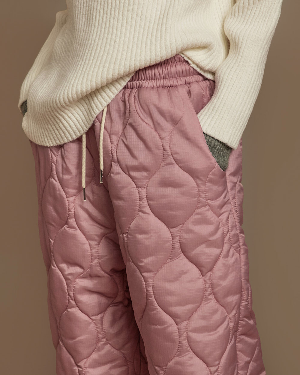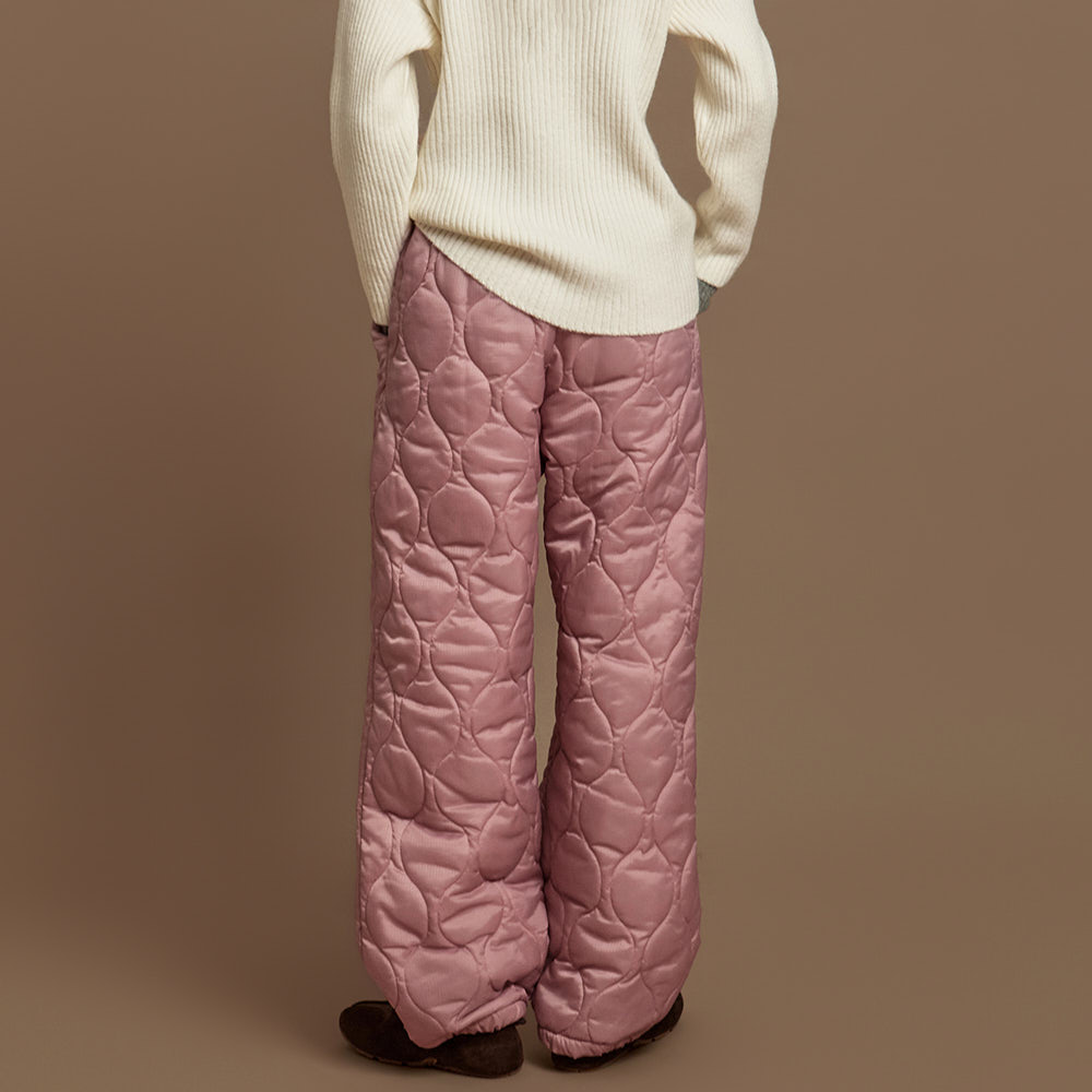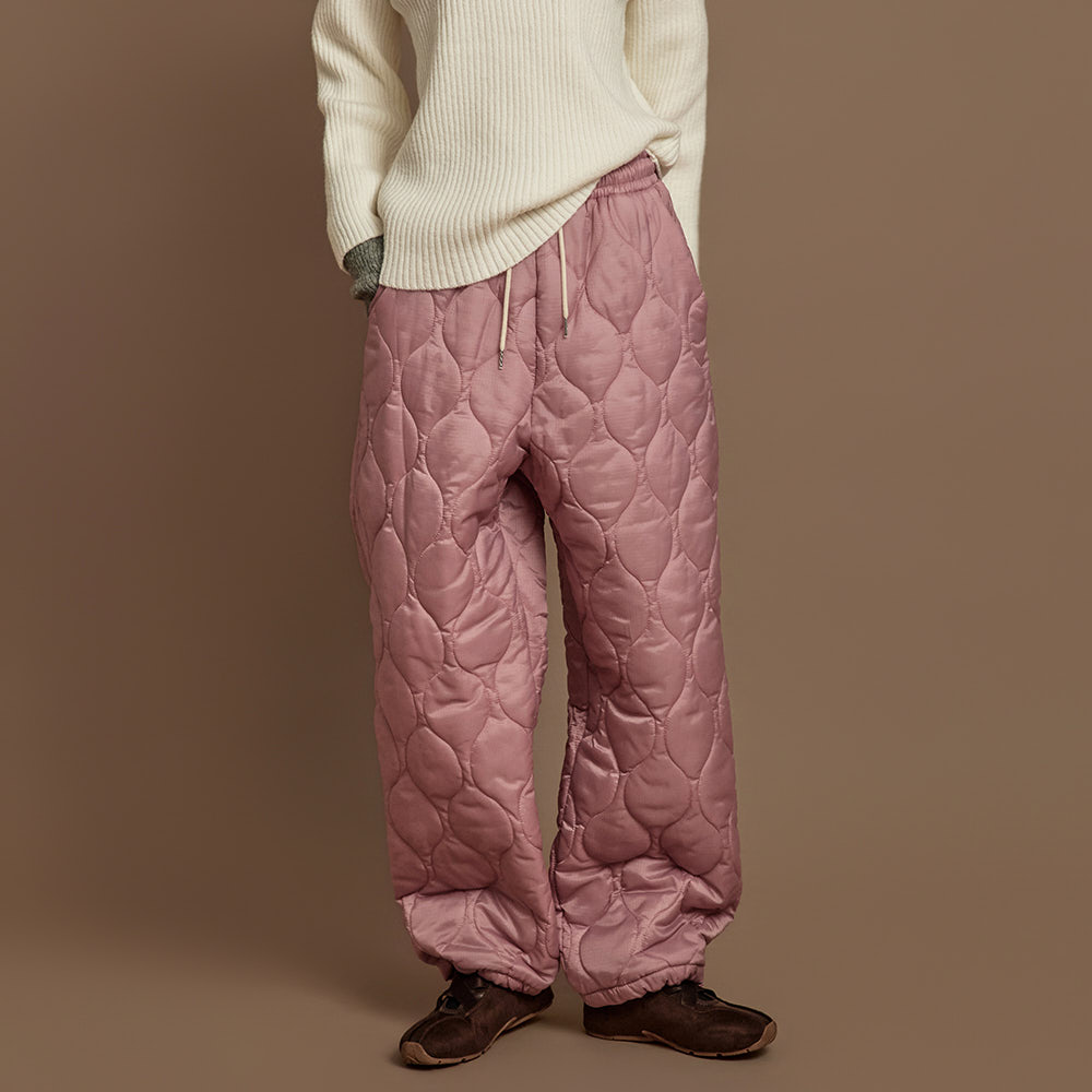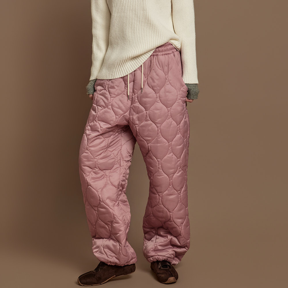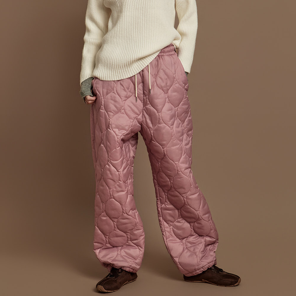这是一款充满休闲氛围的绗缝夹棉长裤。