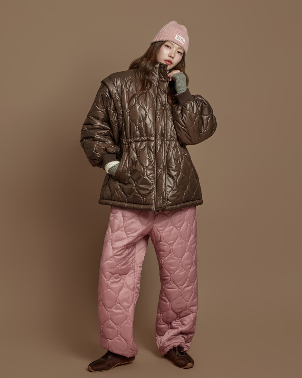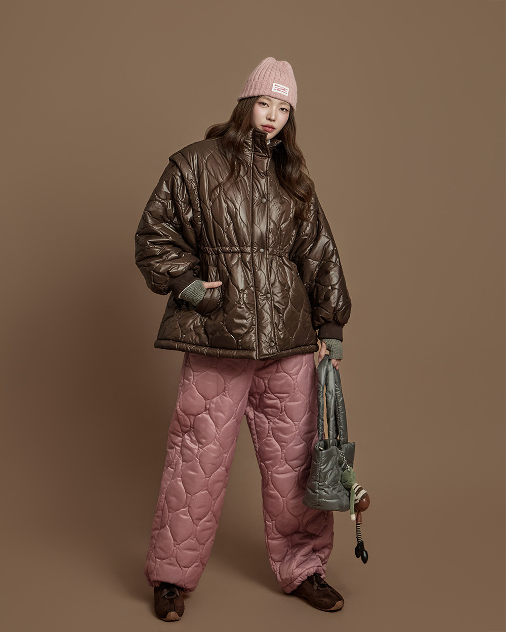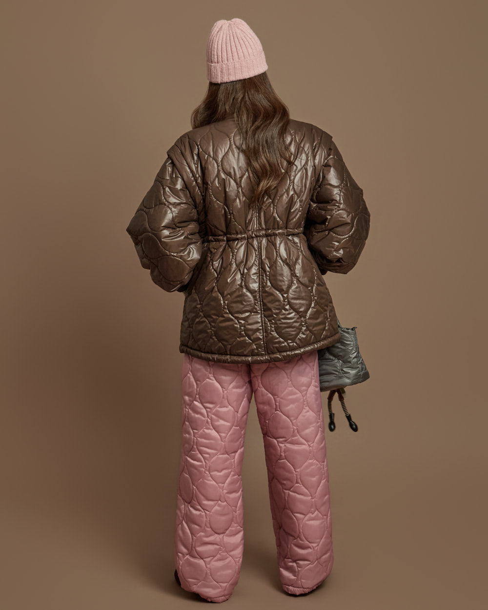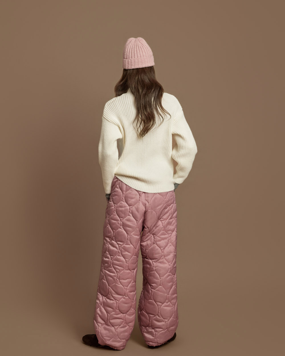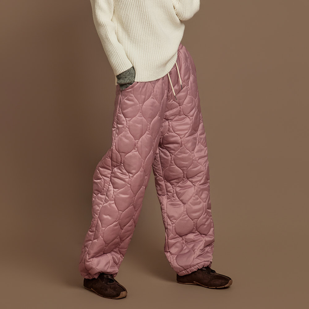 这是一款充满休闲氛围的绗缝夹棉长裤。