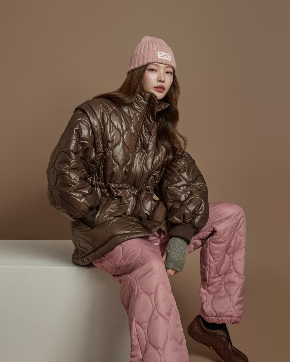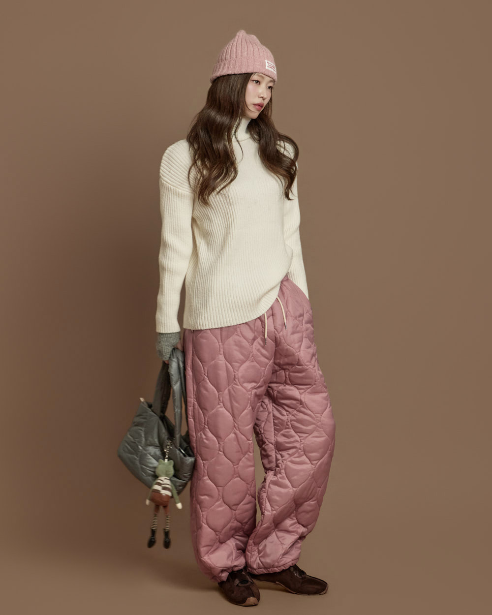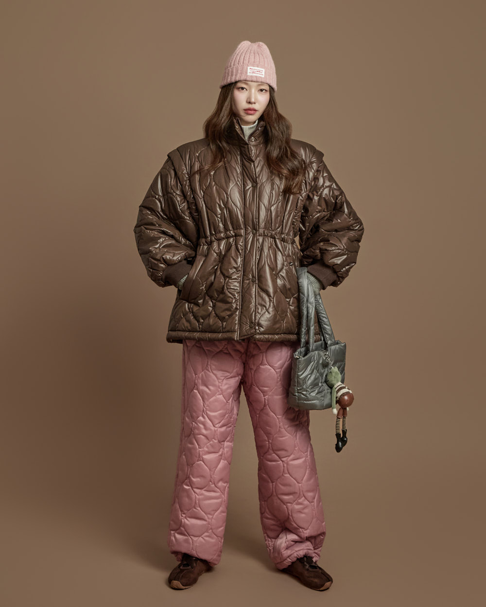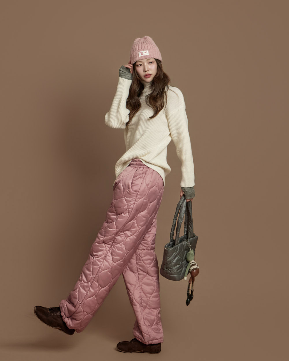 这是一款充满休闲氛围的绗缝夹棉长裤。