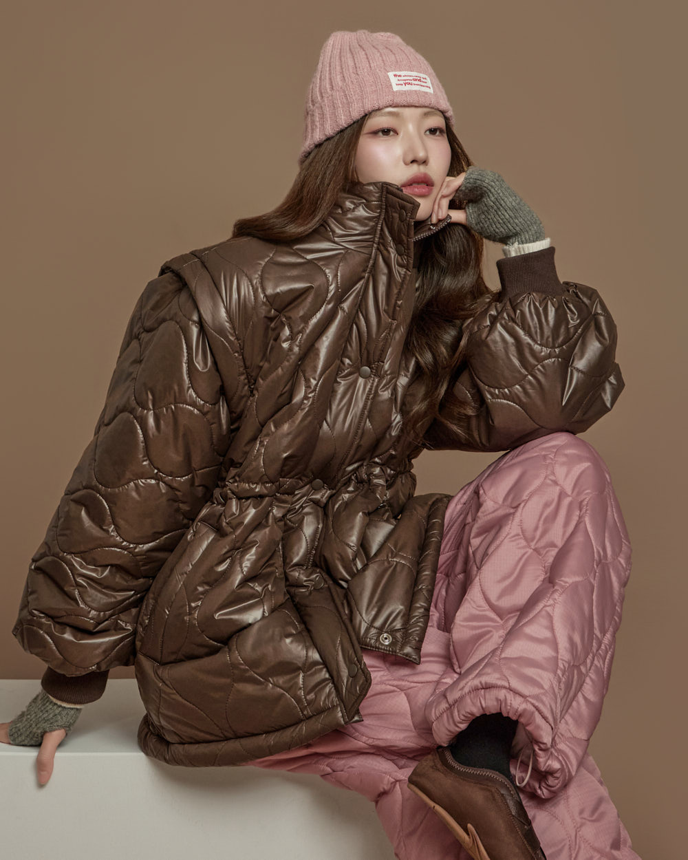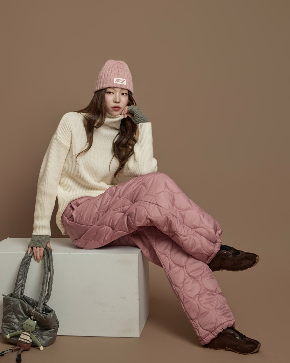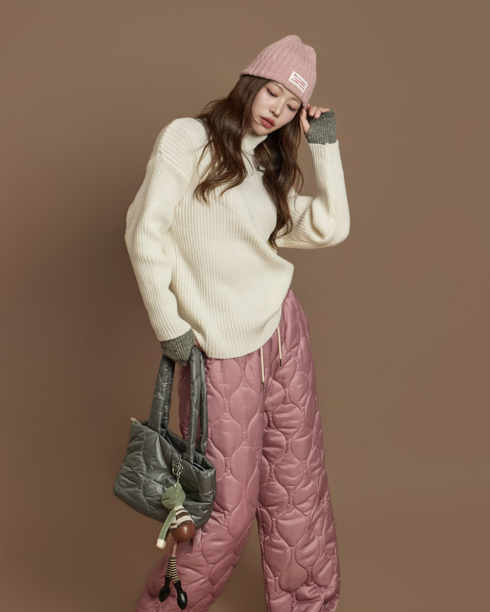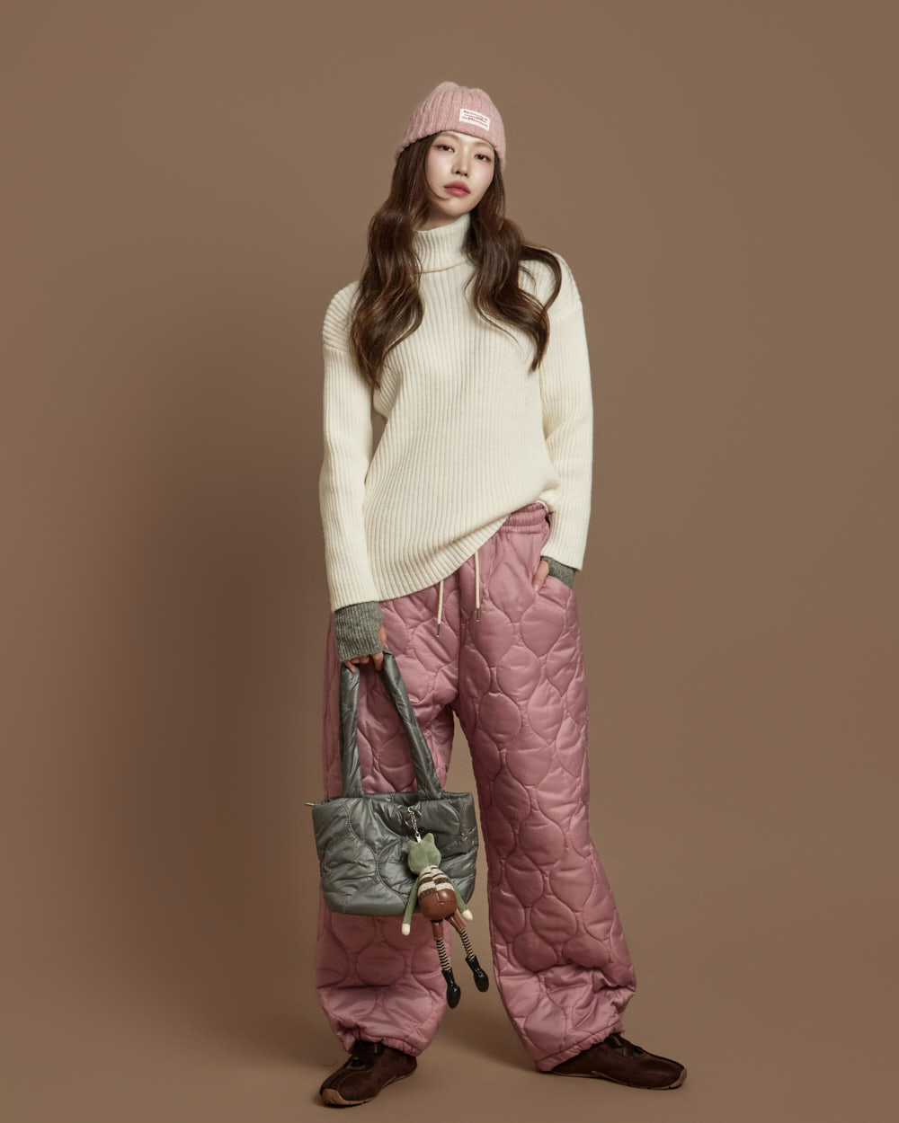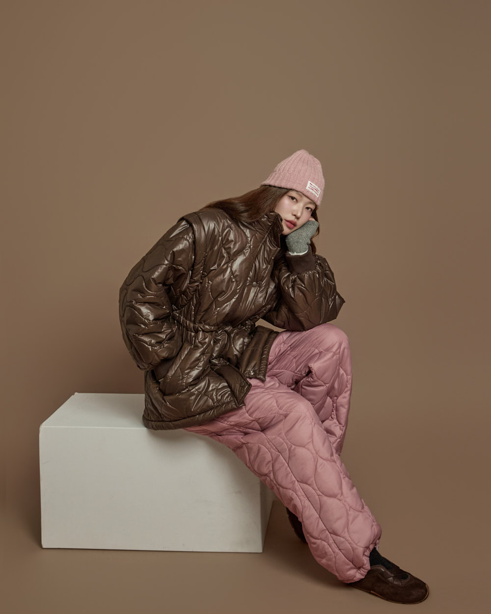 这是一款充满休闲氛围的绗缝夹棉长裤。