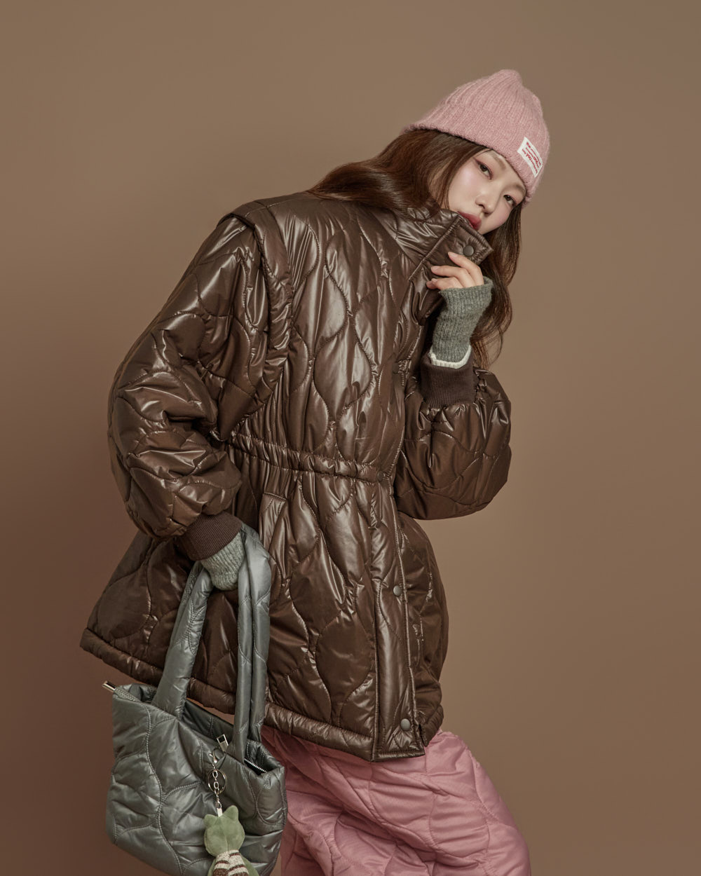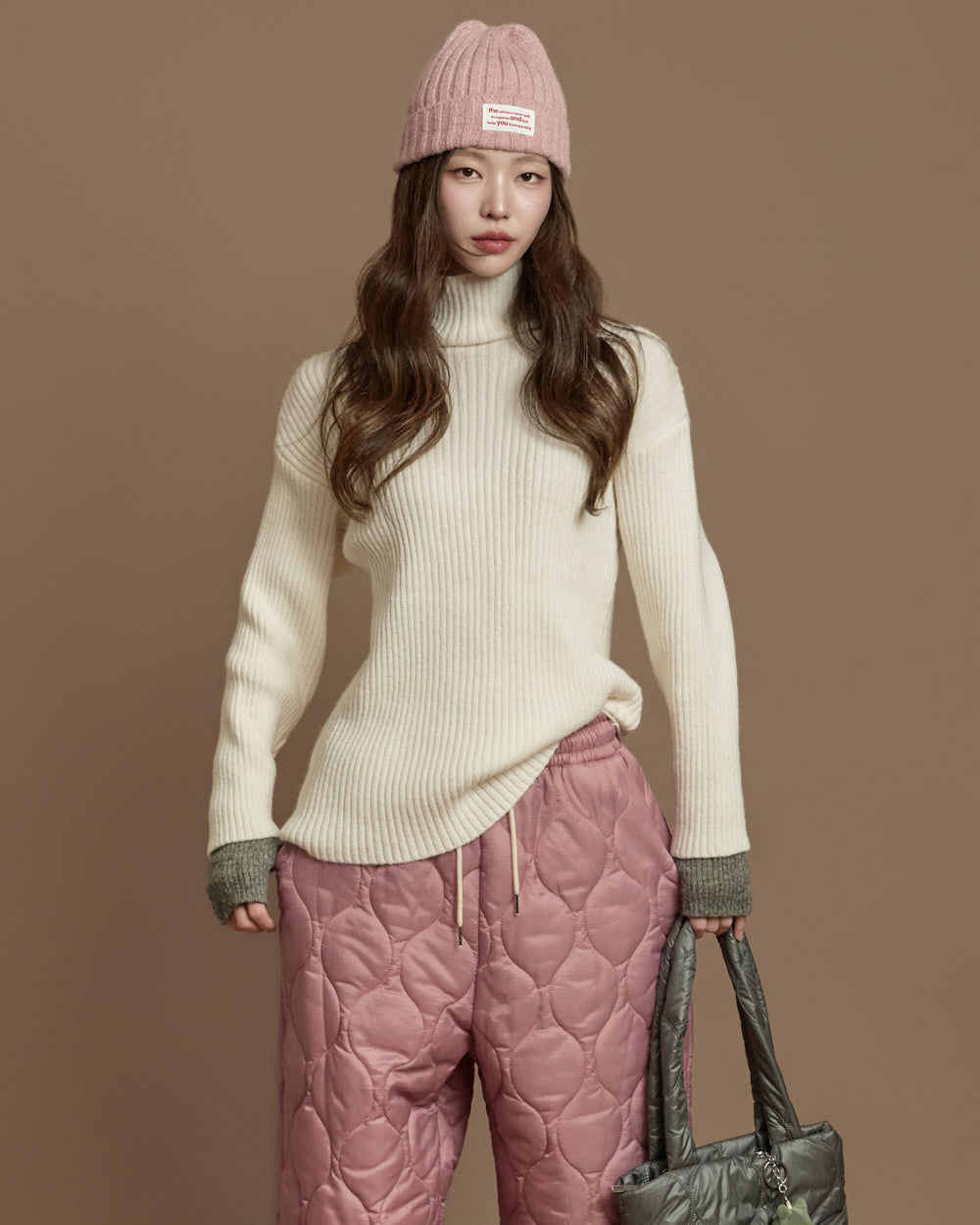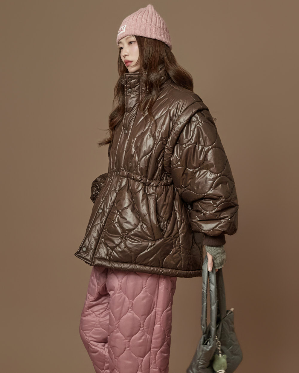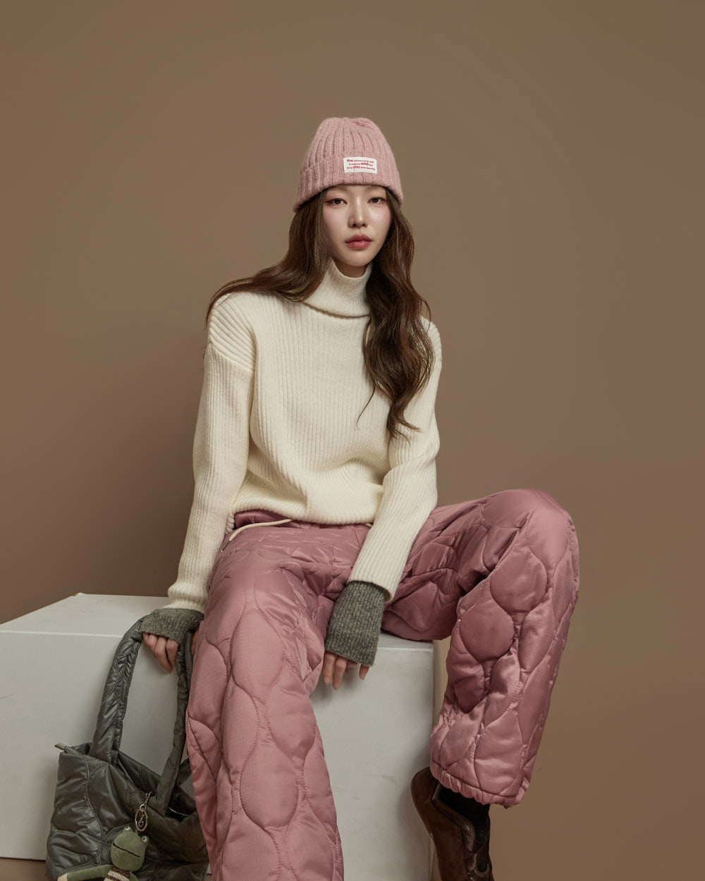 这是一款充满休闲氛围的绗缝夹棉长裤。