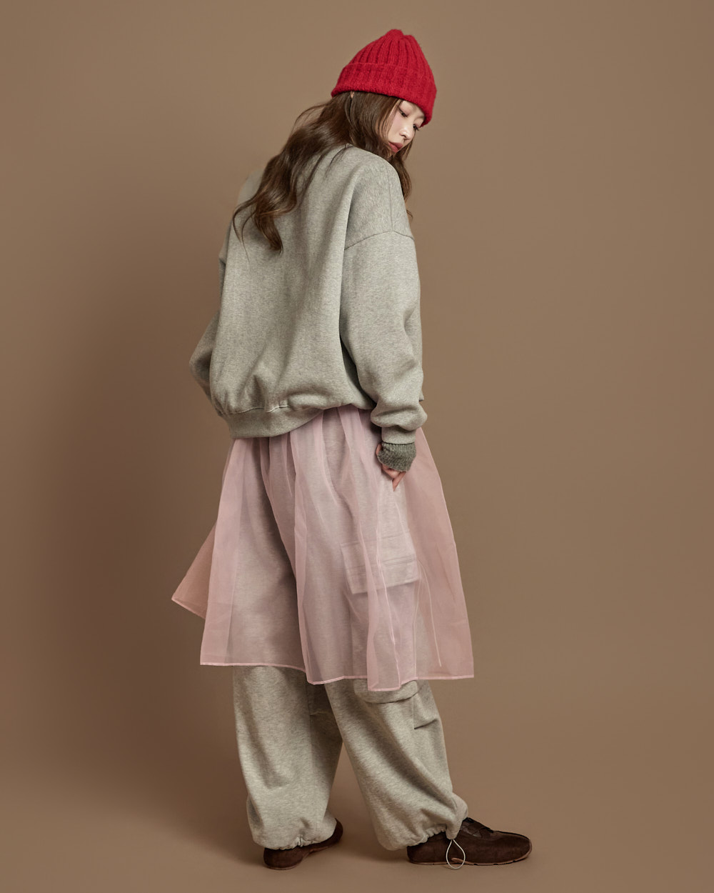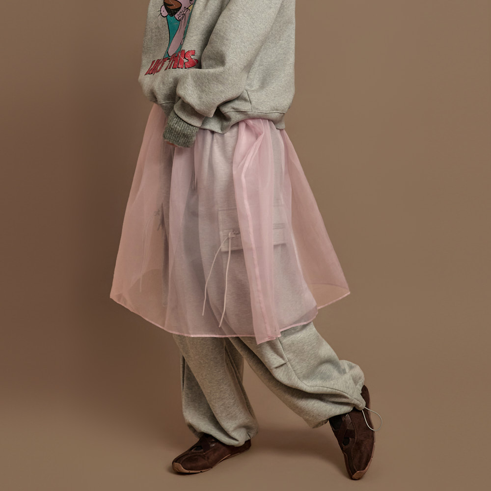 以半透欧根纱叠加设计,为整体造型增添感性亮点。