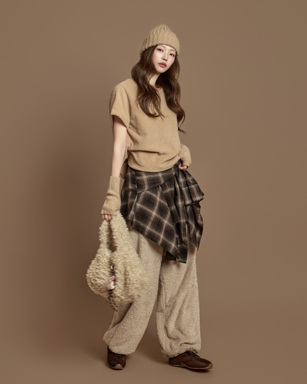 171CM 模特穿着 ONE 尺码,BROWN 颜色。