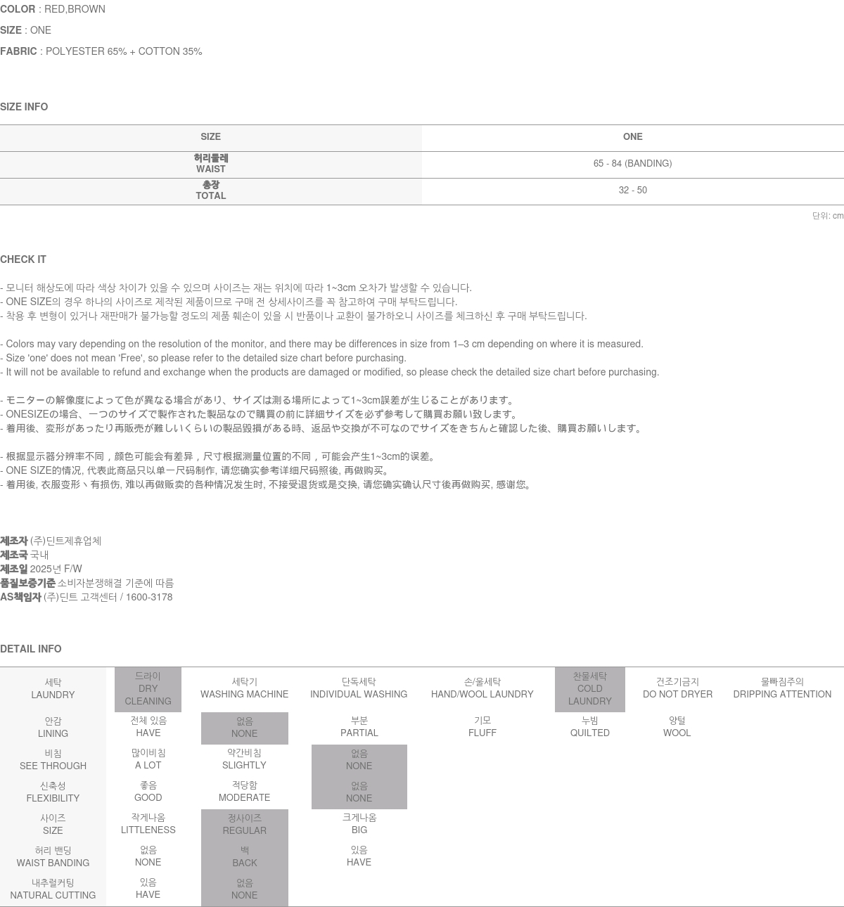 • DINT的所有商品, 使用一般洗滌或是烘乾機, 皆有可能成爲變形或是商品損傷的原因, 建議您使用乾洗.