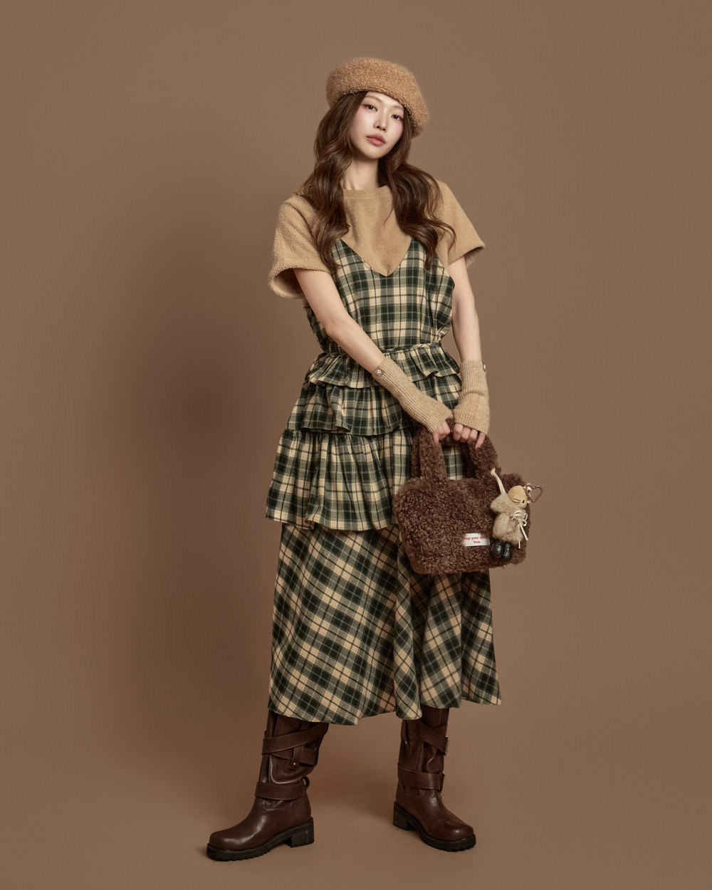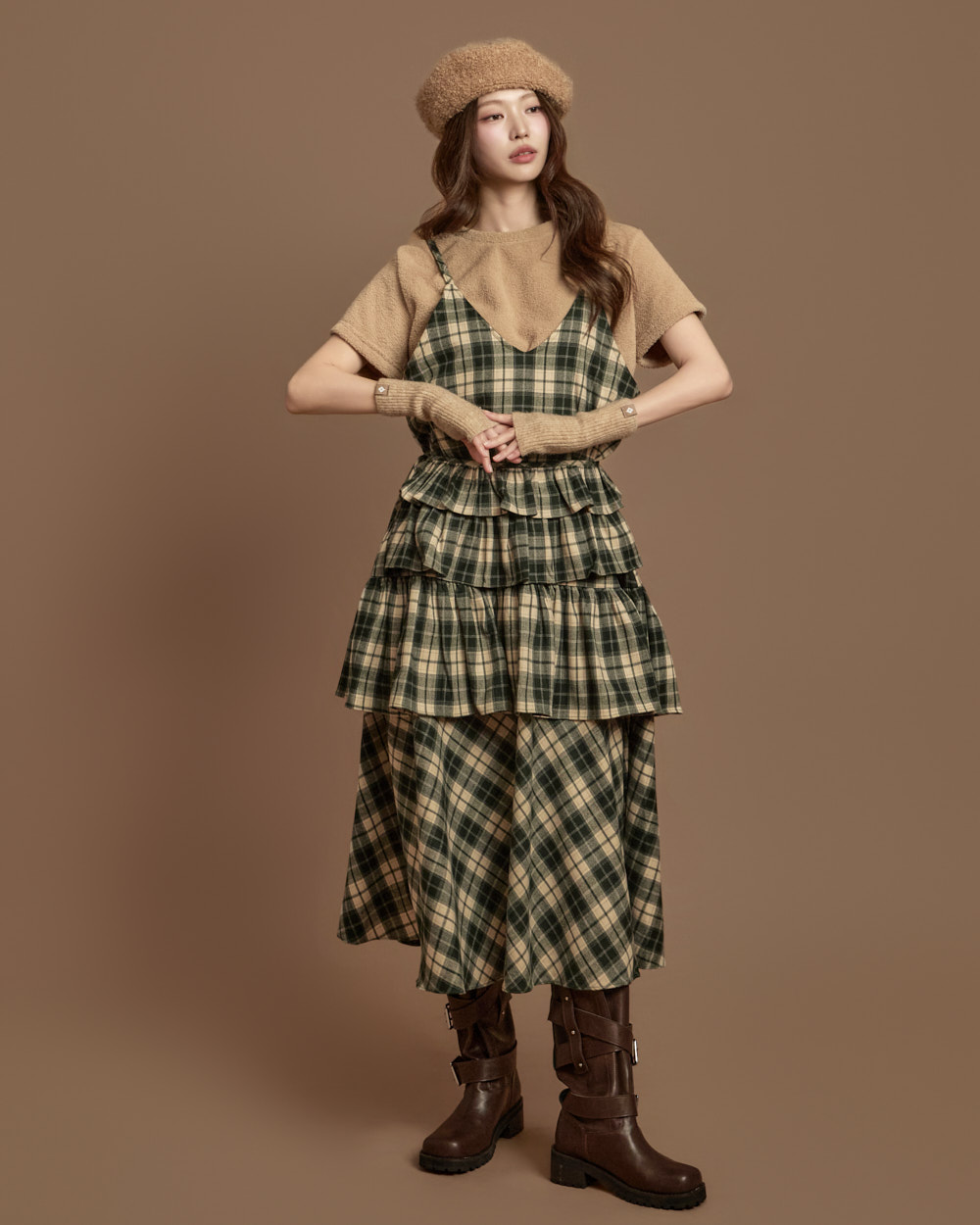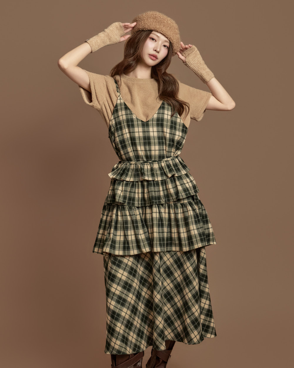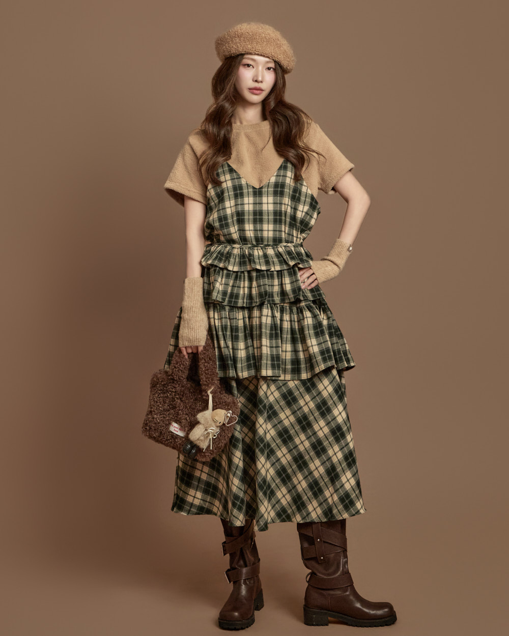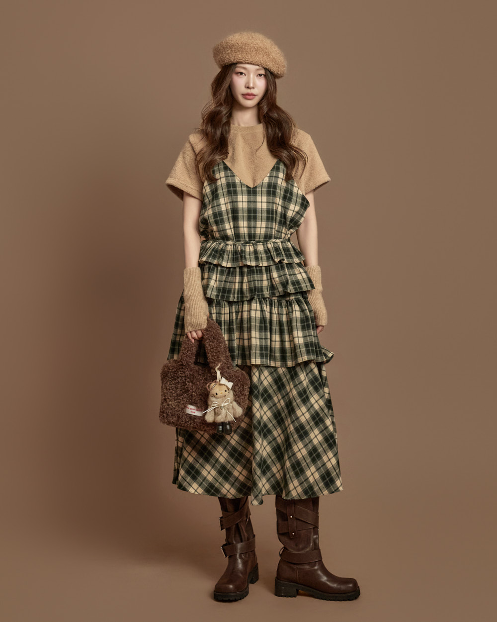 格纹图案的荷叶边半身裙
