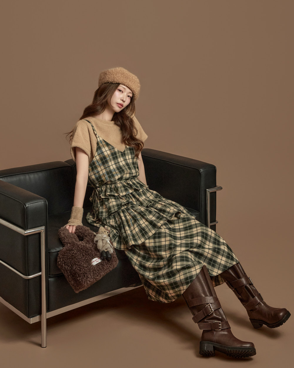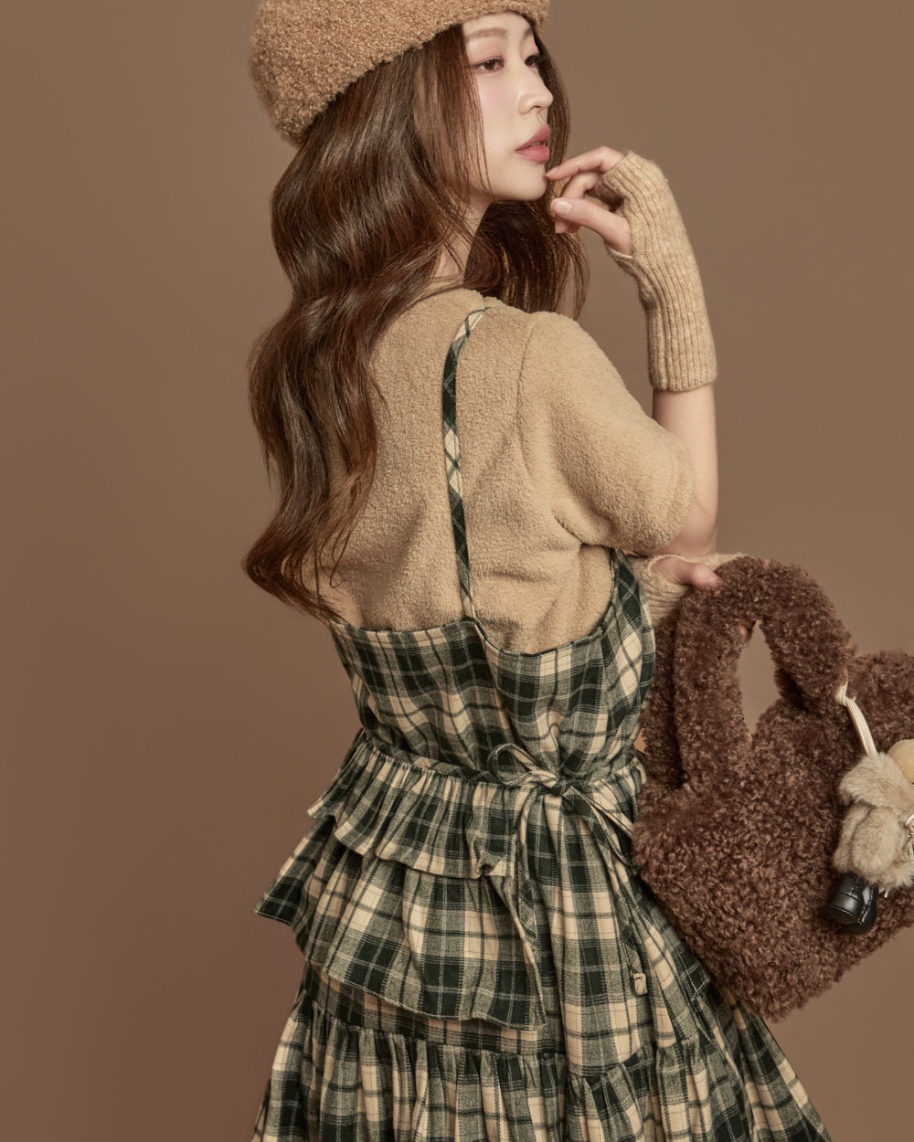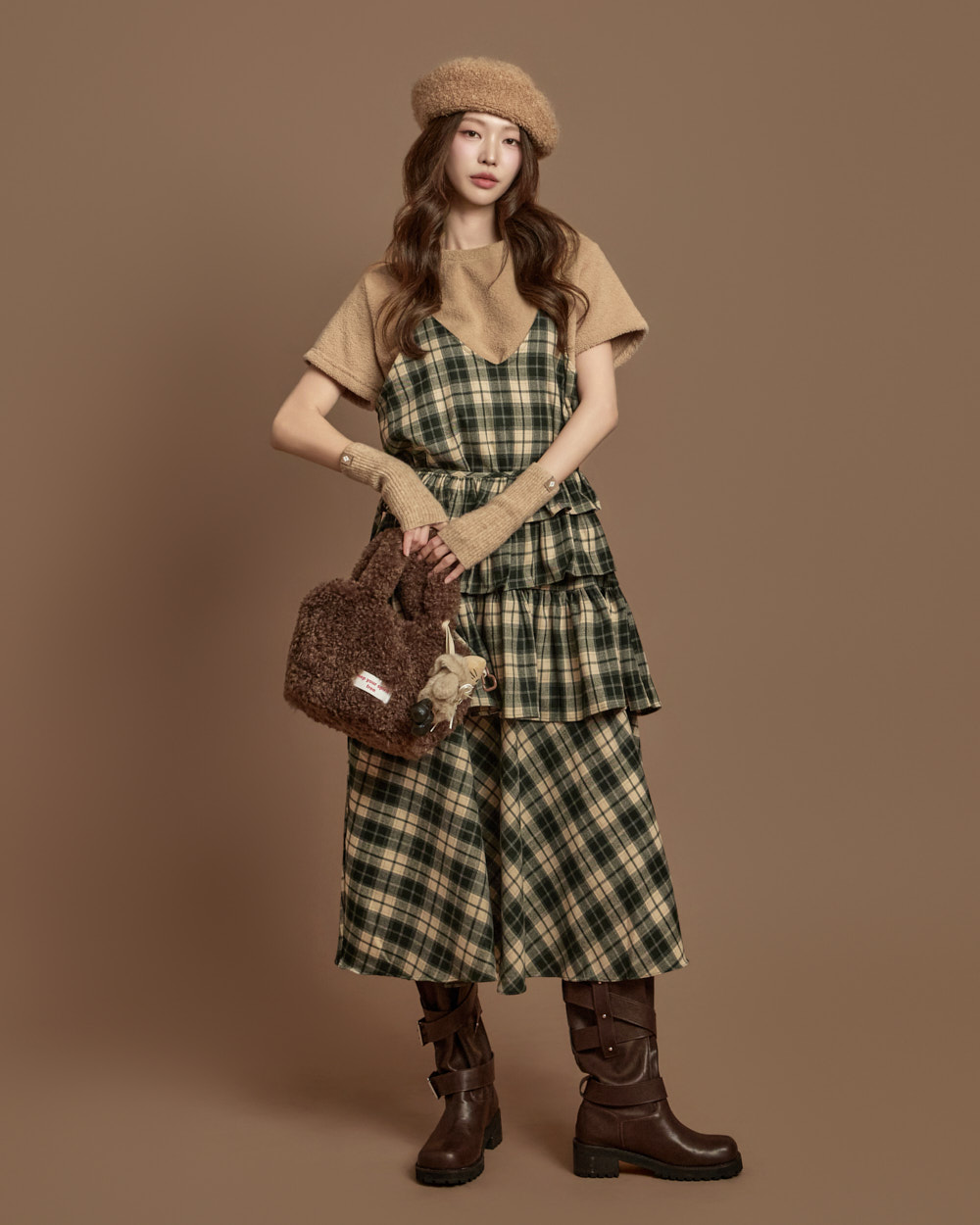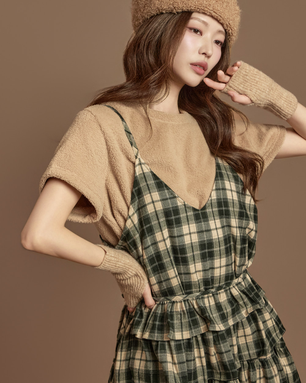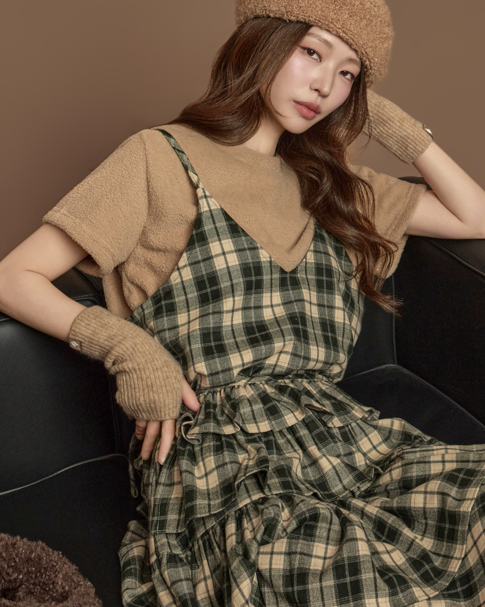 格纹图案的荷叶边半身裙