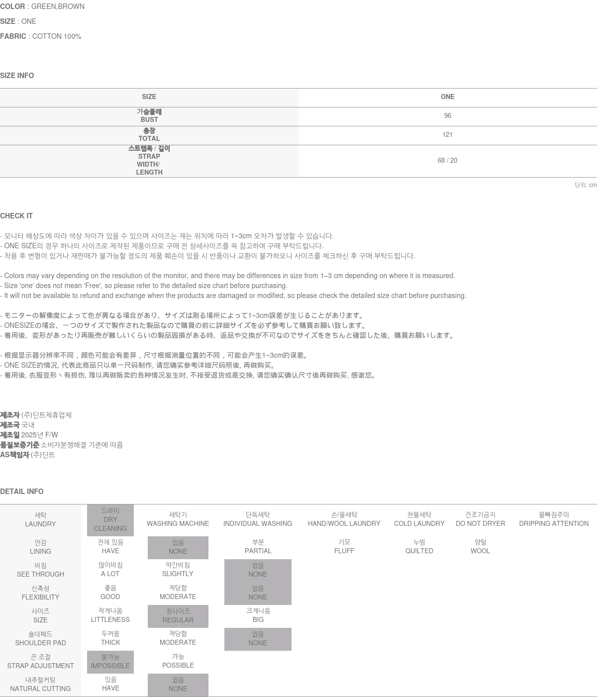 • DINT的所有商品, 使用一般洗滌或是烘乾機, 皆有可能成爲變形或是商品損傷的原因, 建議您使用乾洗.