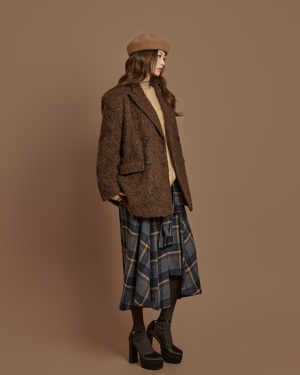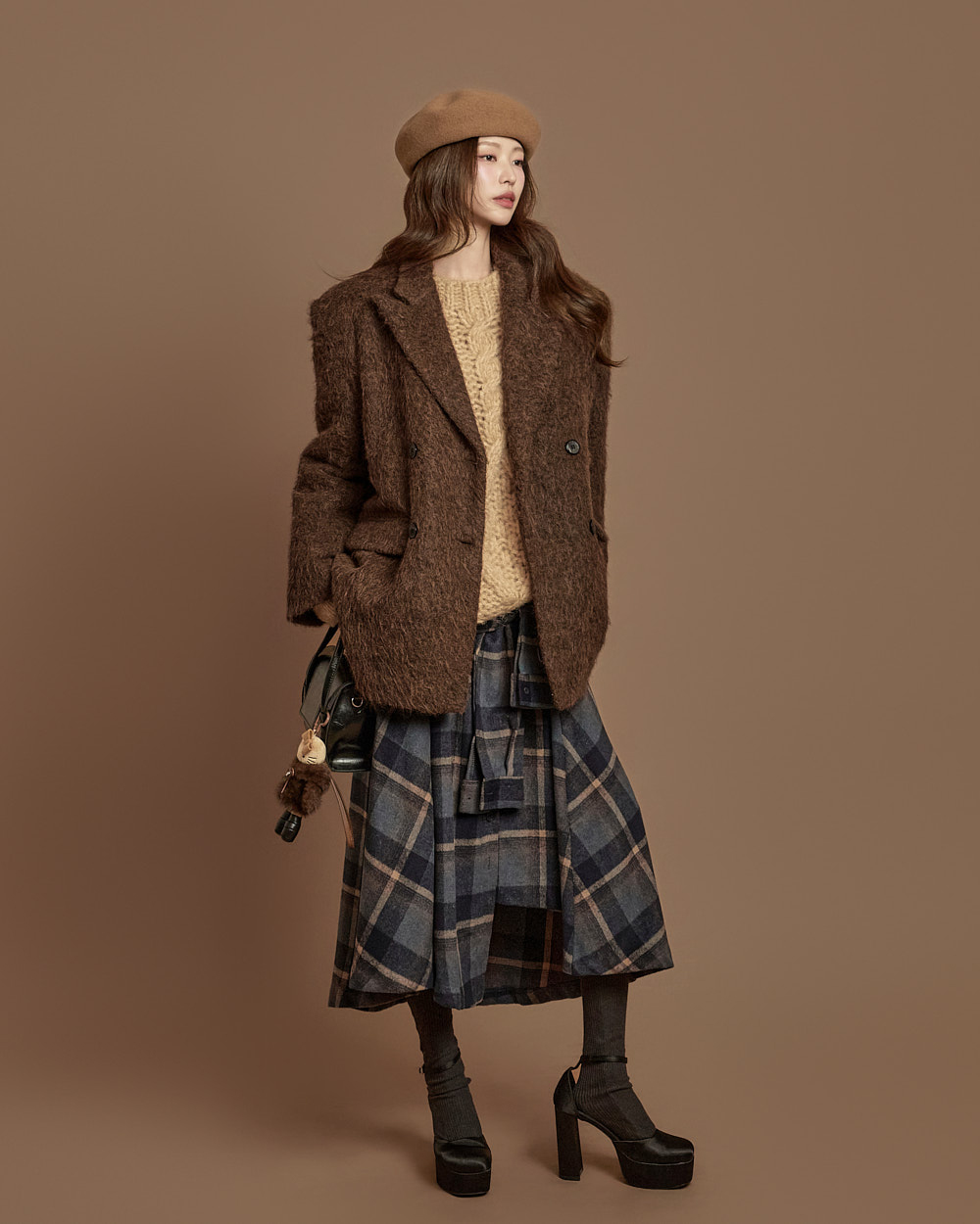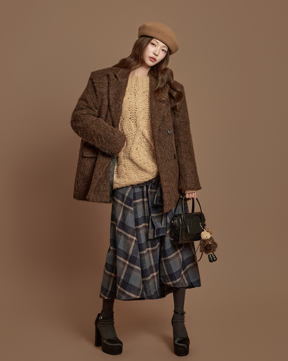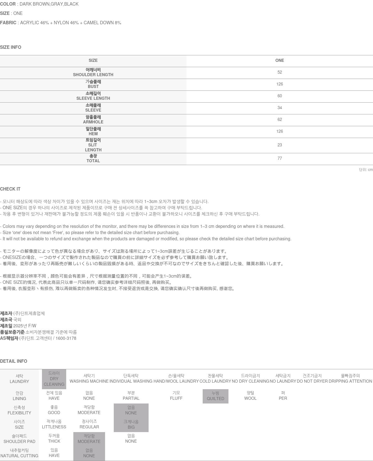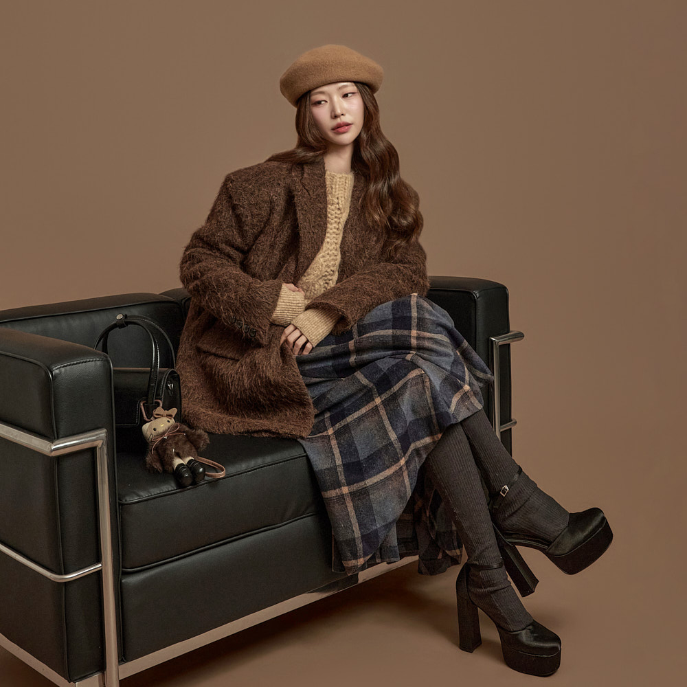 模特身高 171CM,穿着 ONE 尺码,DARK BROWN 颜色。