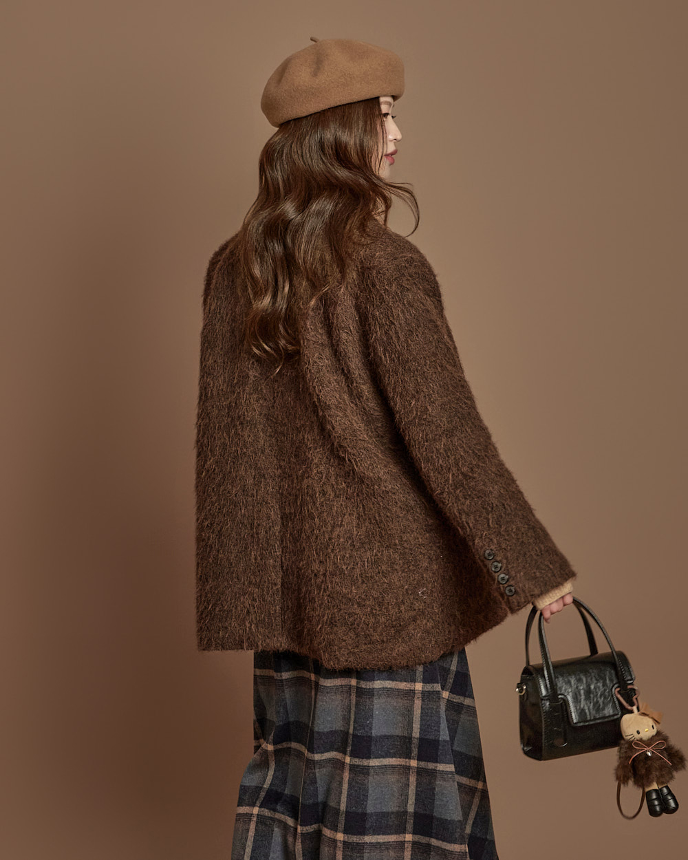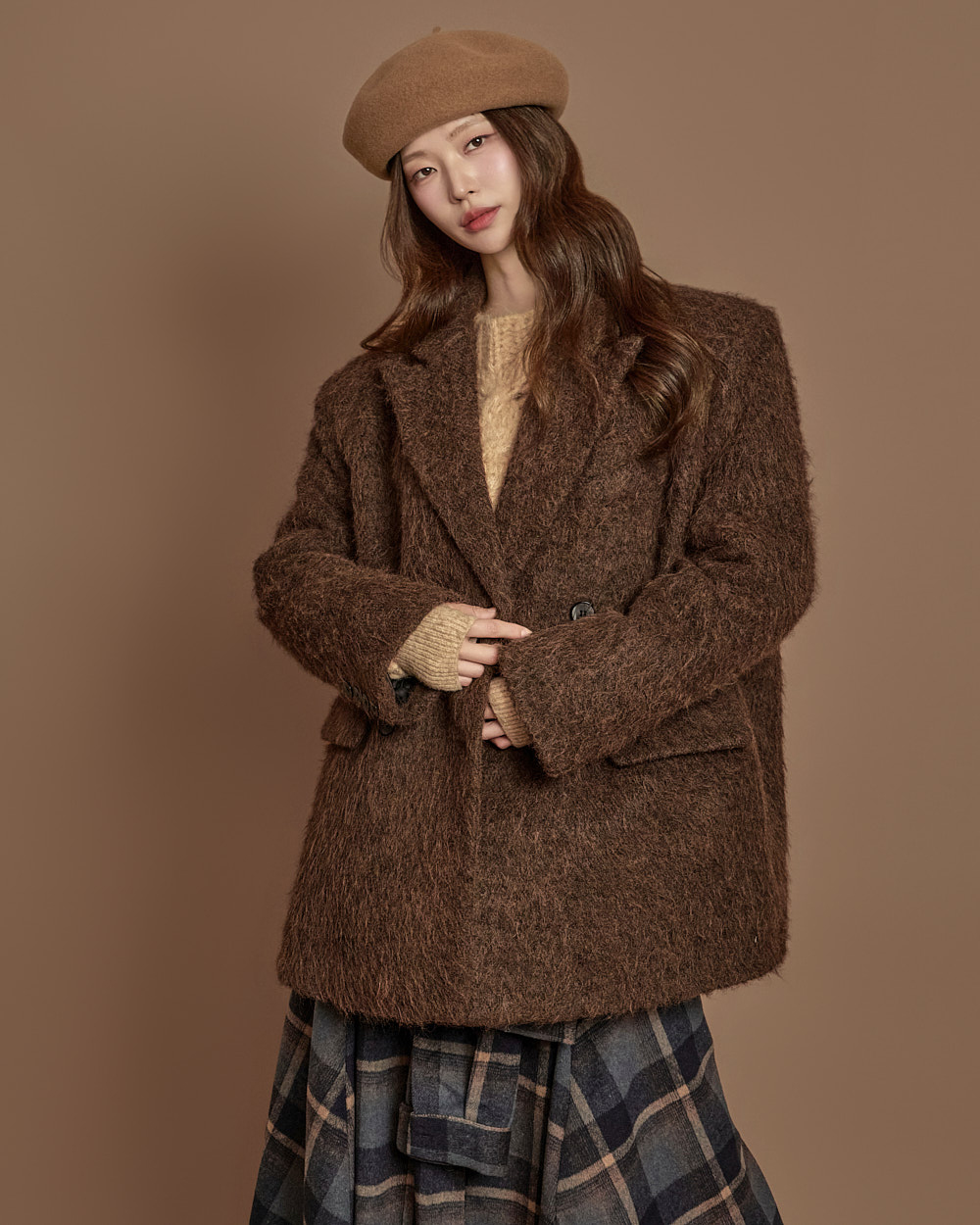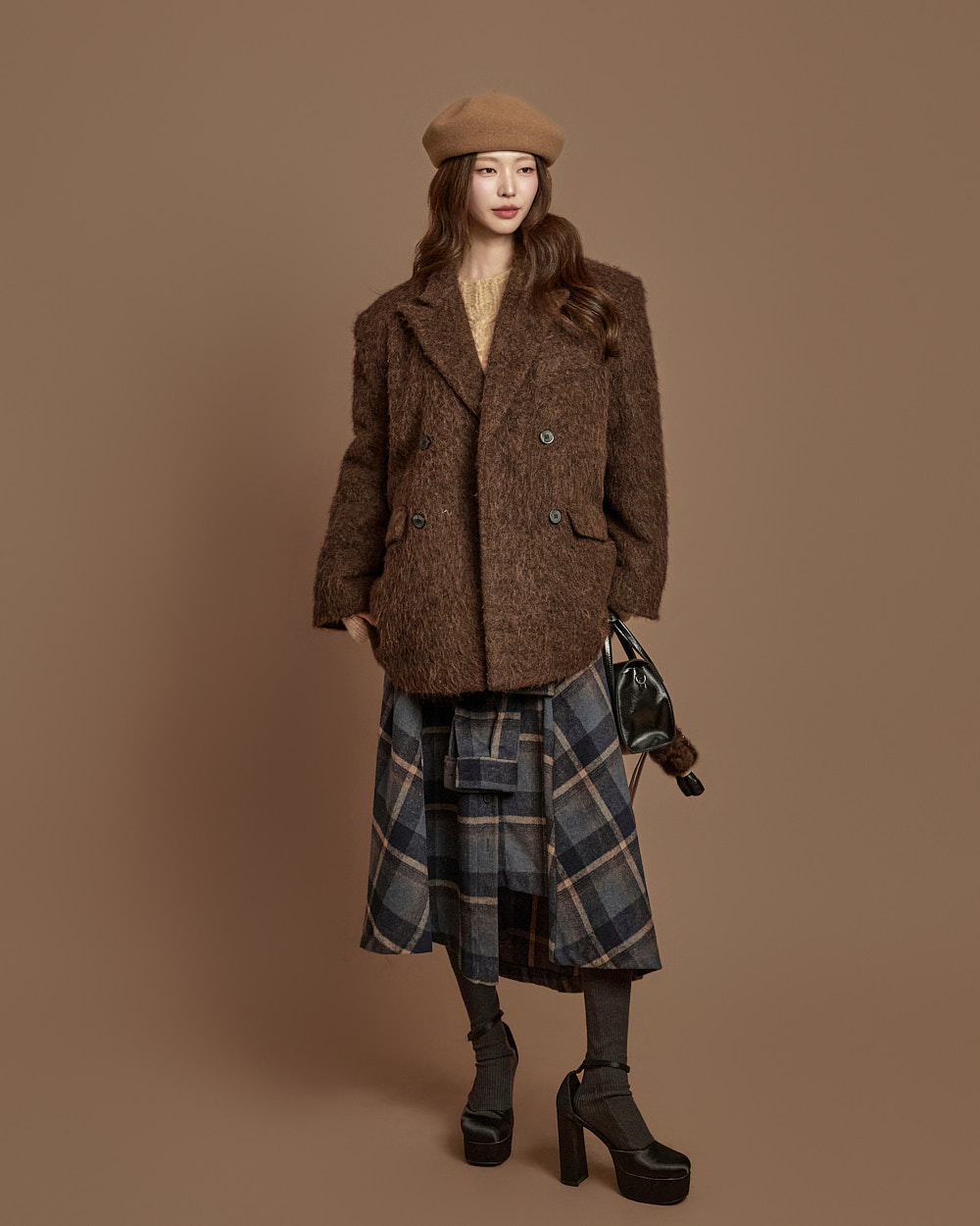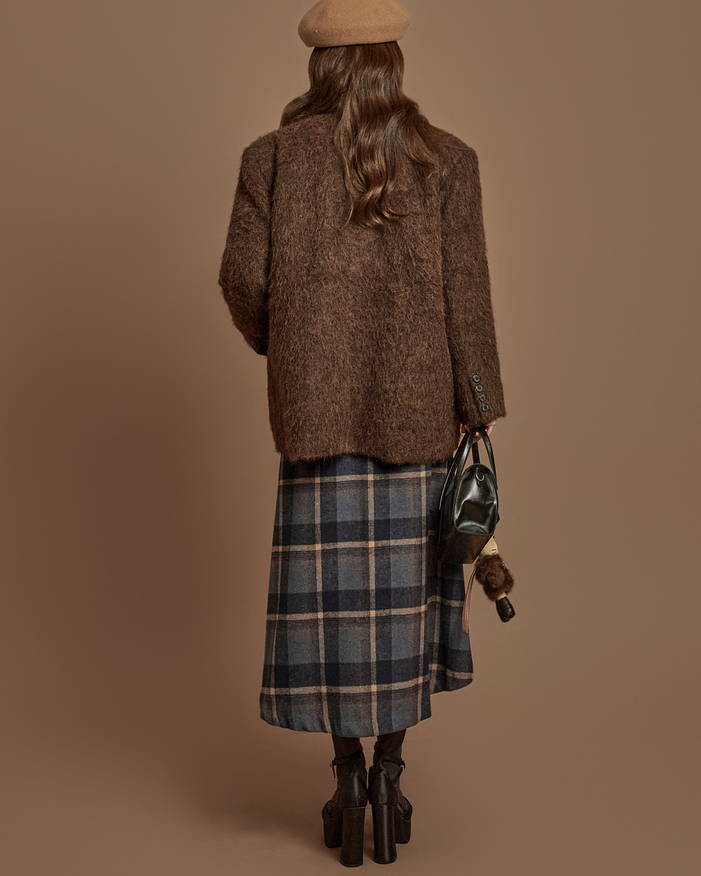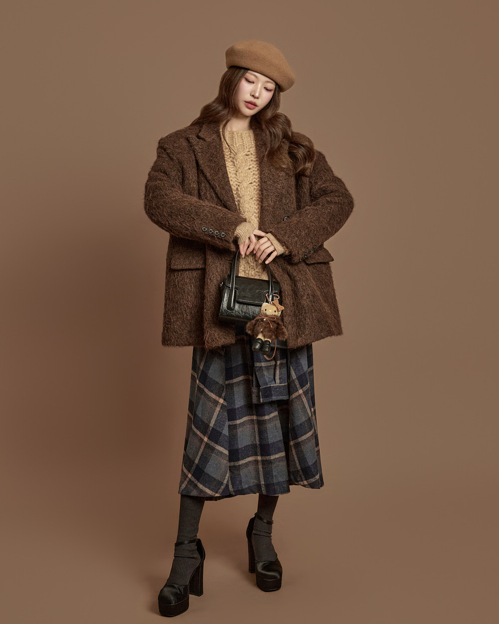 模特身高 171CM,穿着 ONE 尺码,DARK BROWN 颜色。