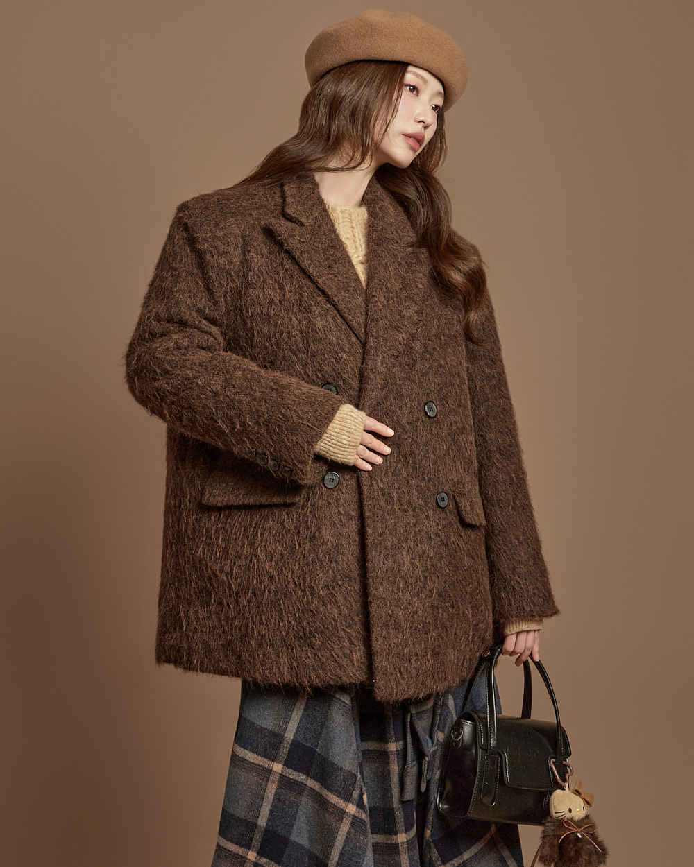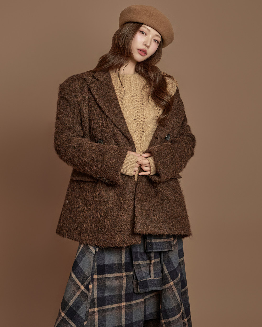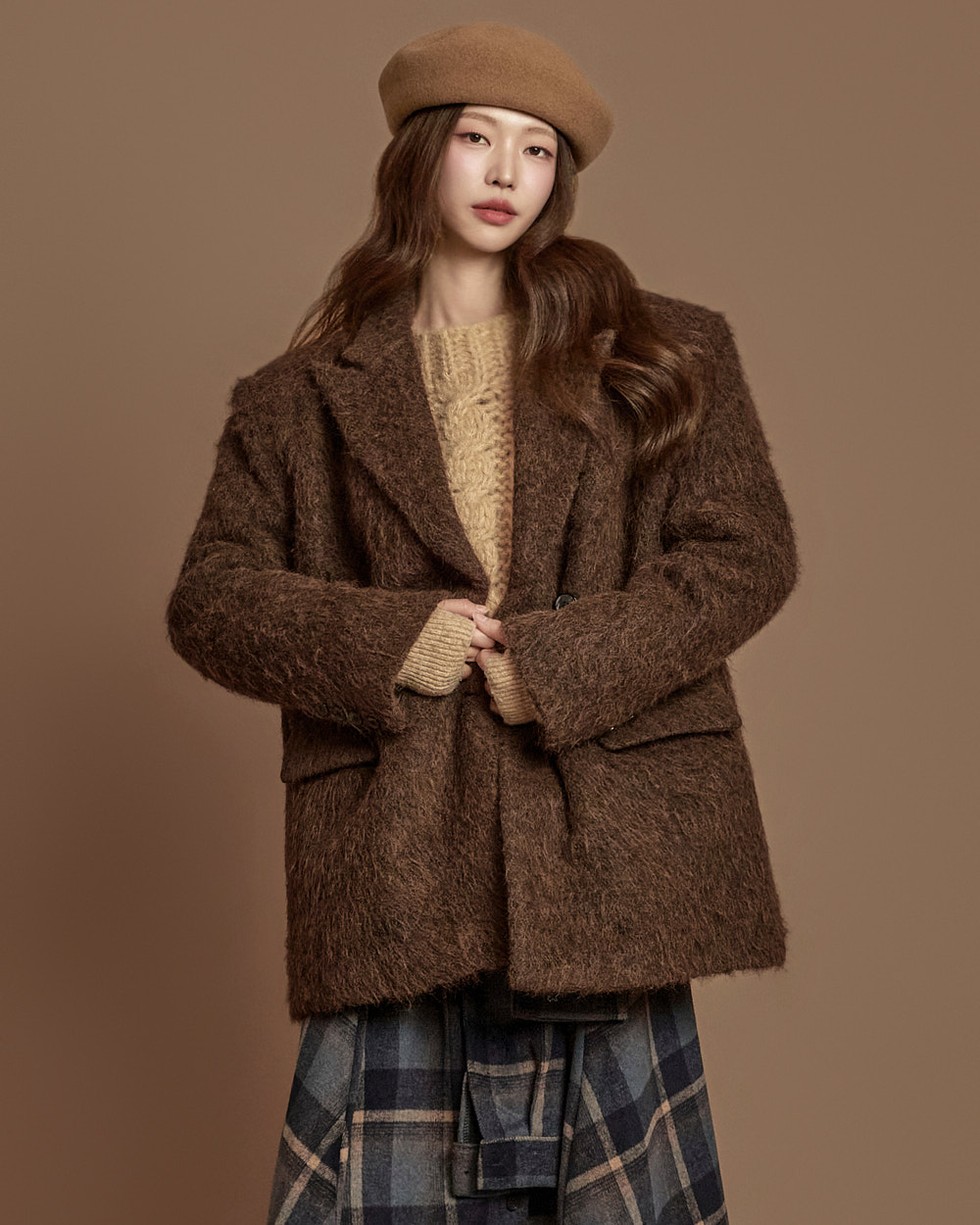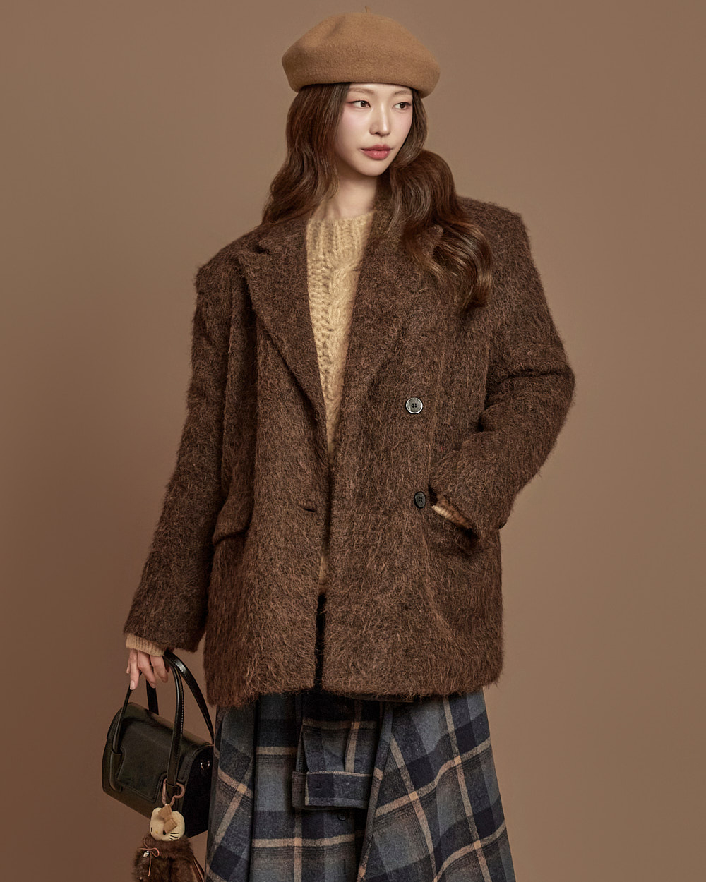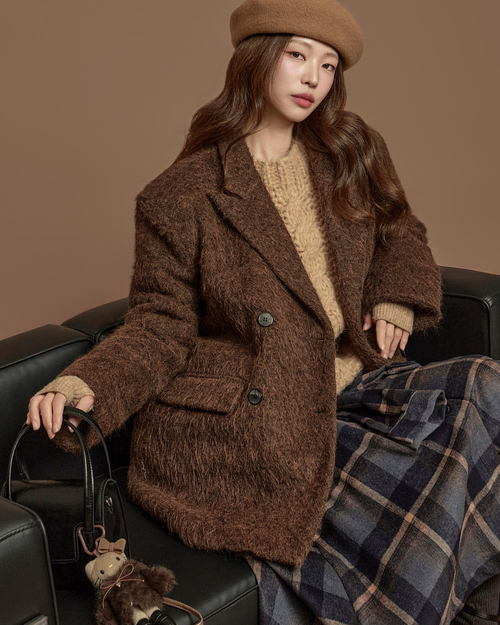 模特身高 171CM,穿着 ONE 尺码,DARK BROWN 颜色。