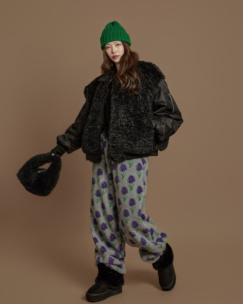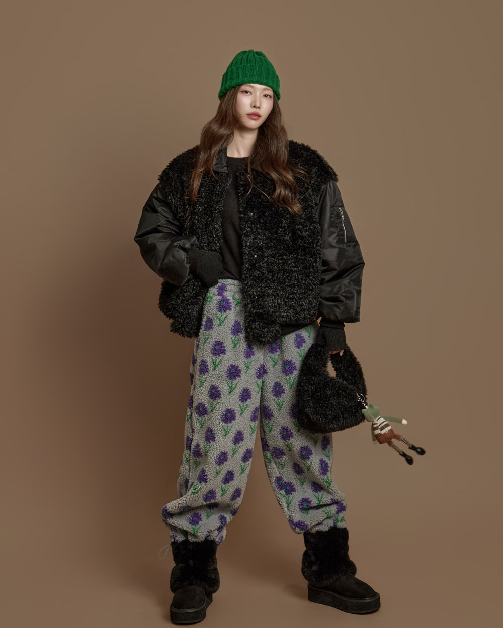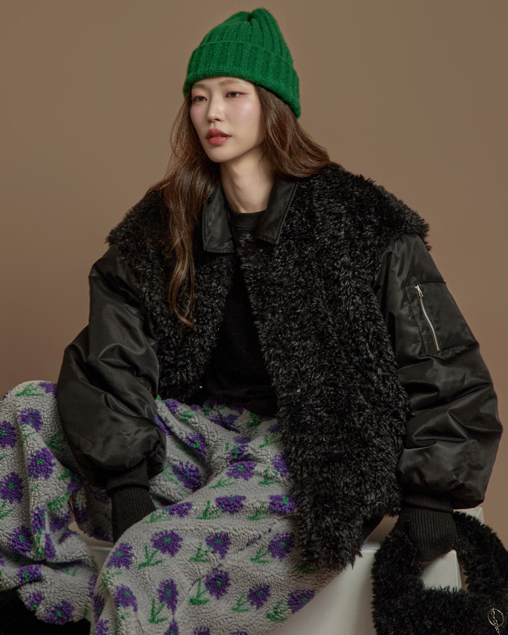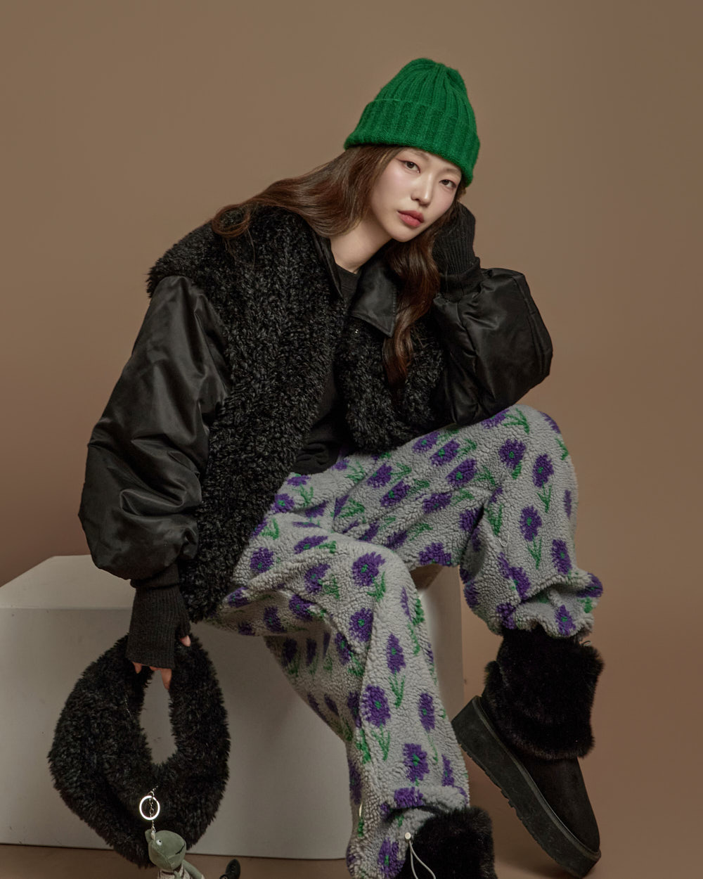 搭配毛绒质感的独特面料,