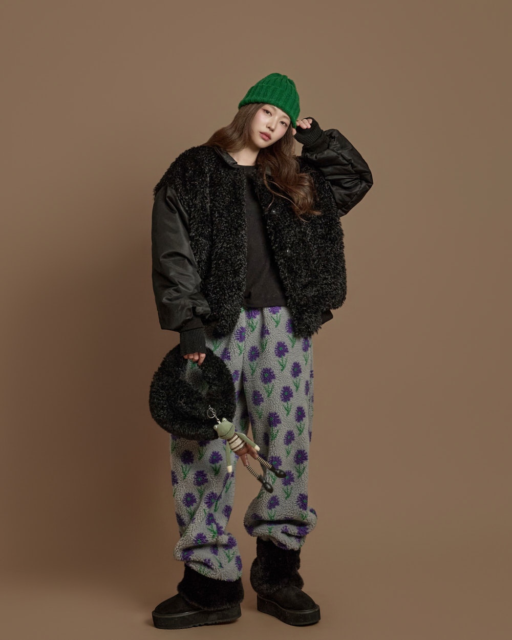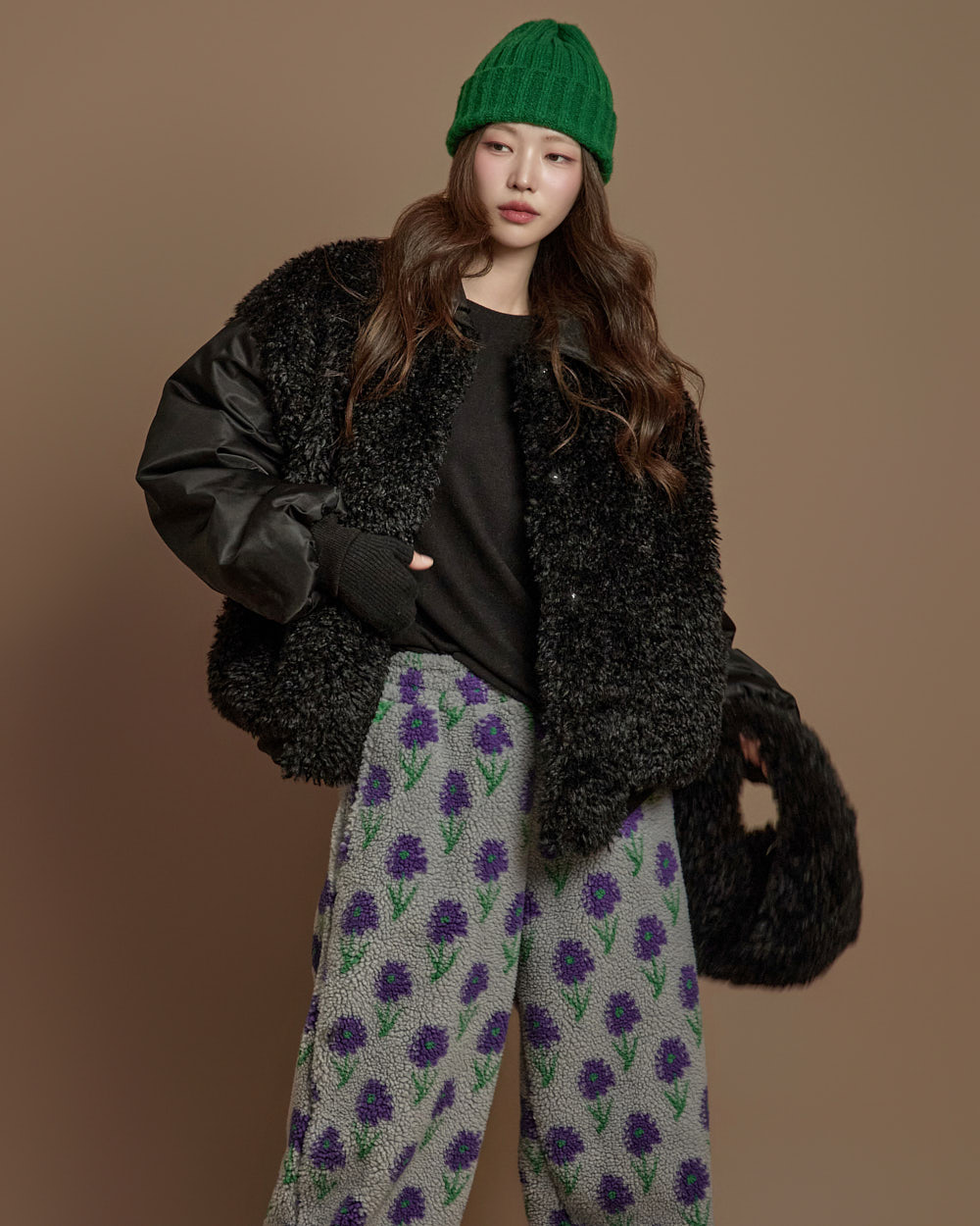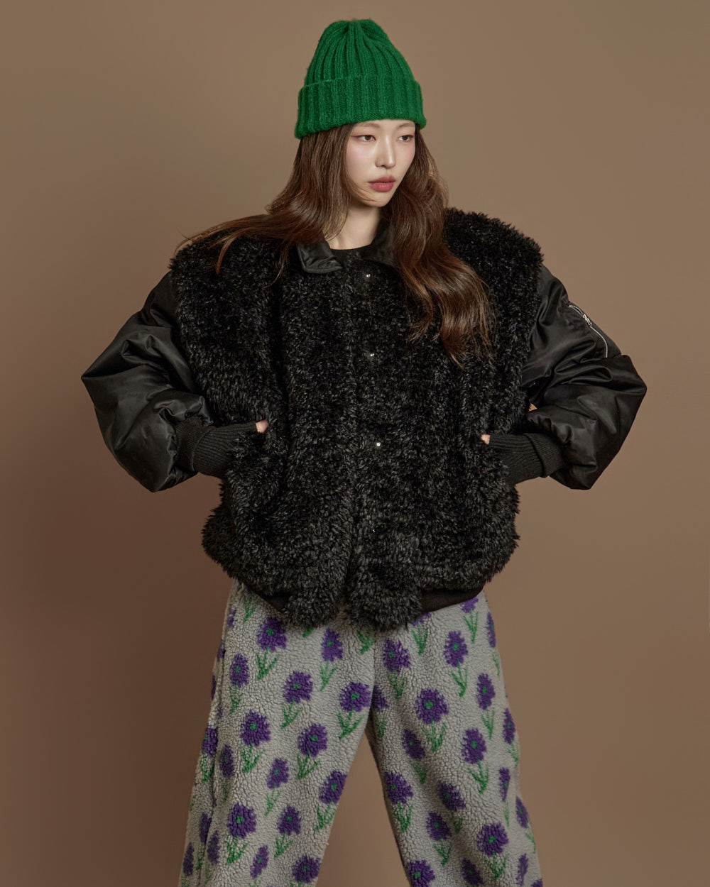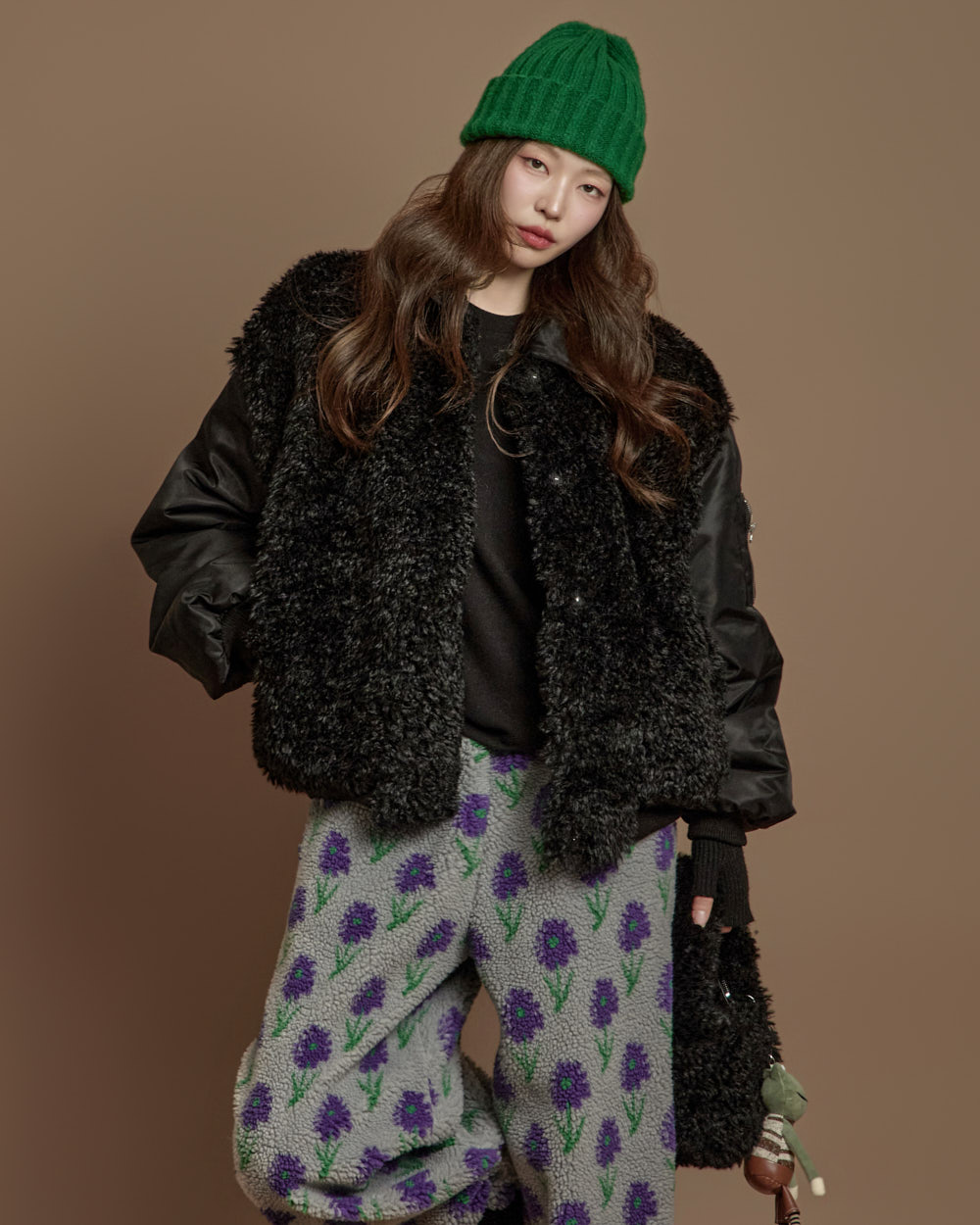 搭配毛绒质感的独特面料,