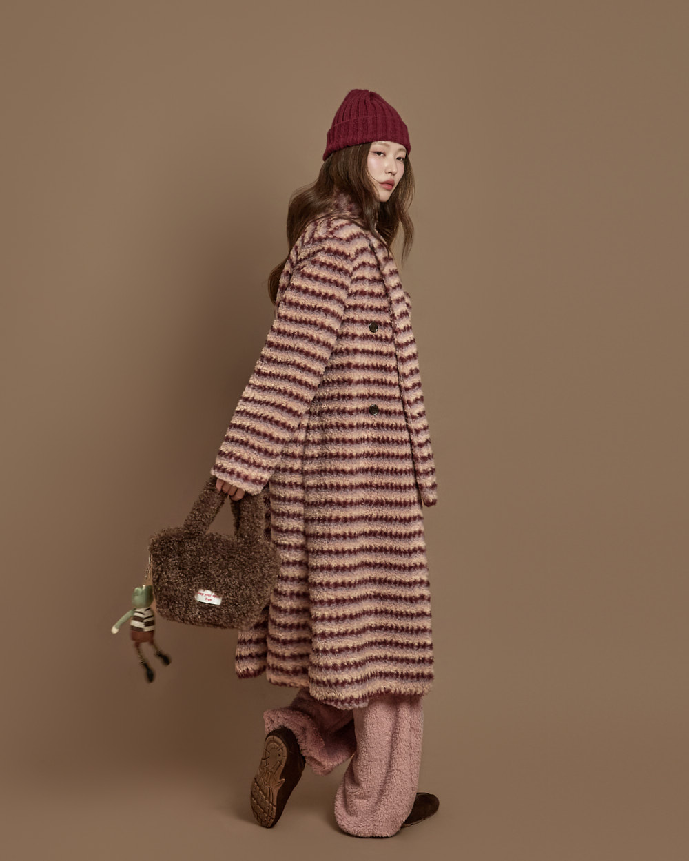 可爱休闲氛围的系带套装泰迪外套。
