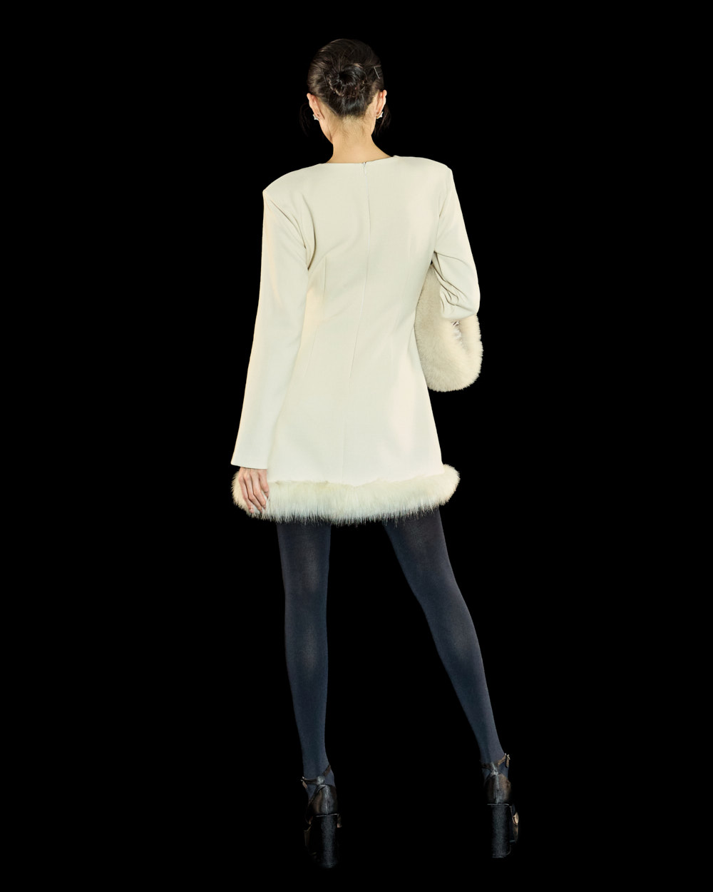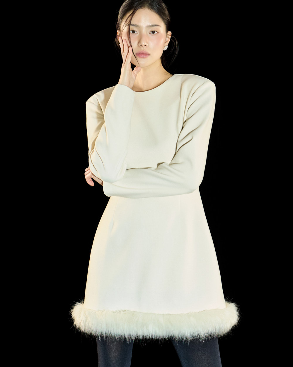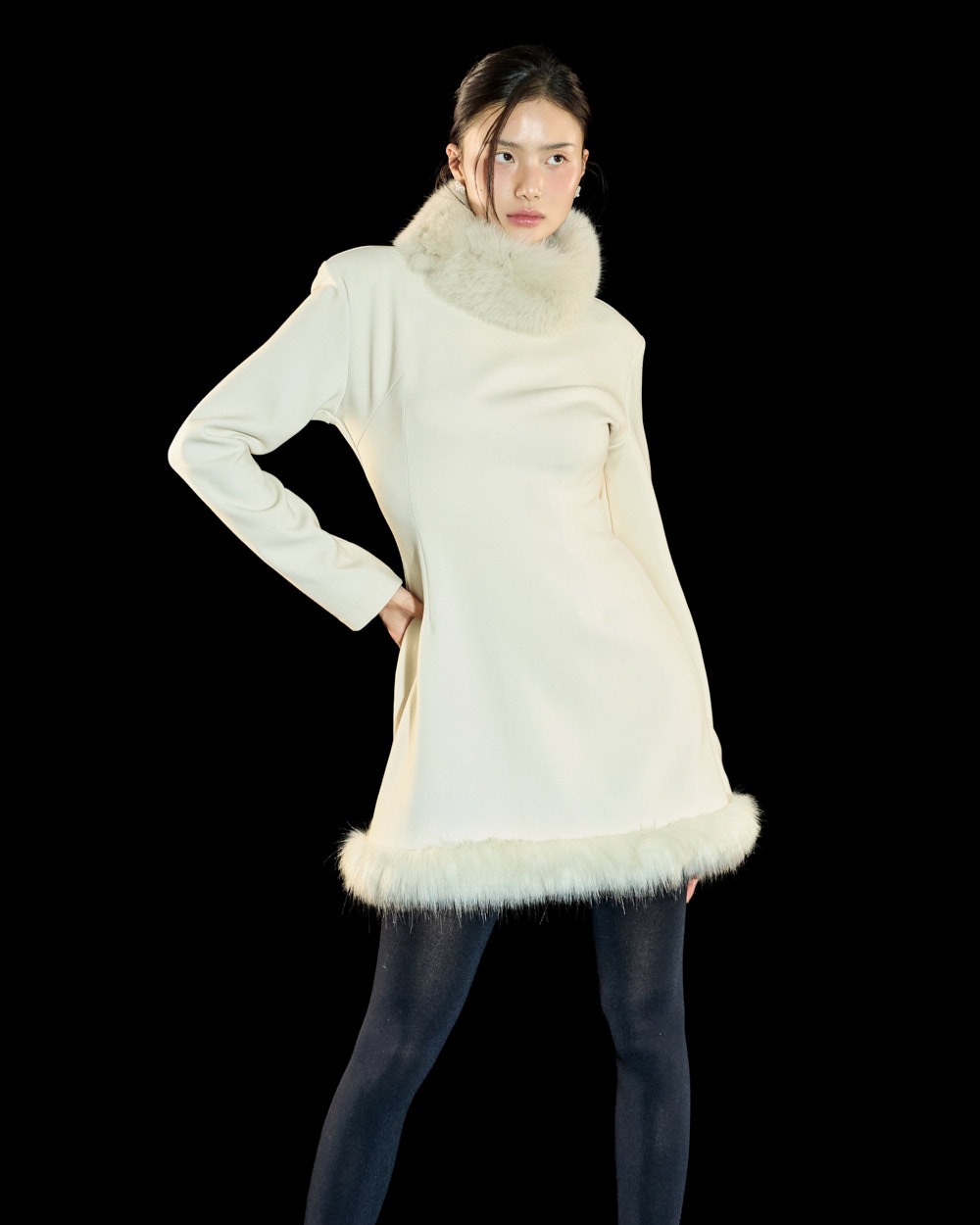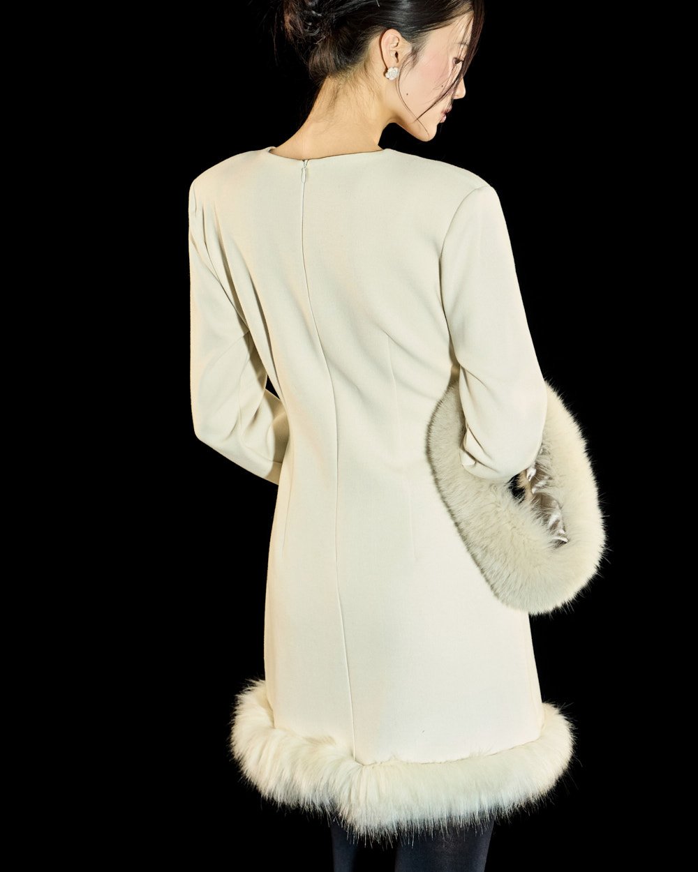 裙摆处的毛绒细节作为高级且独特的点睛元素,