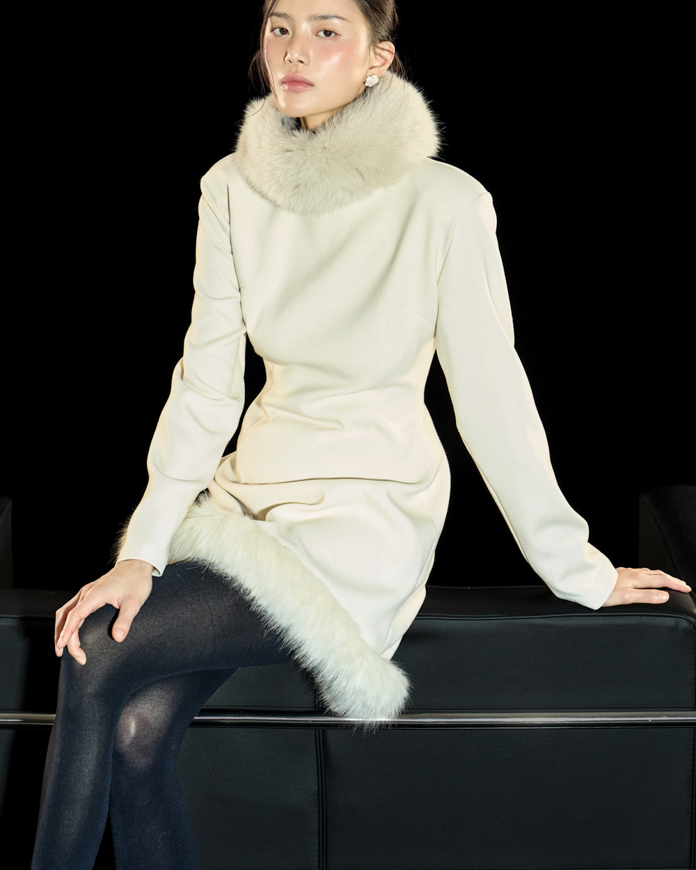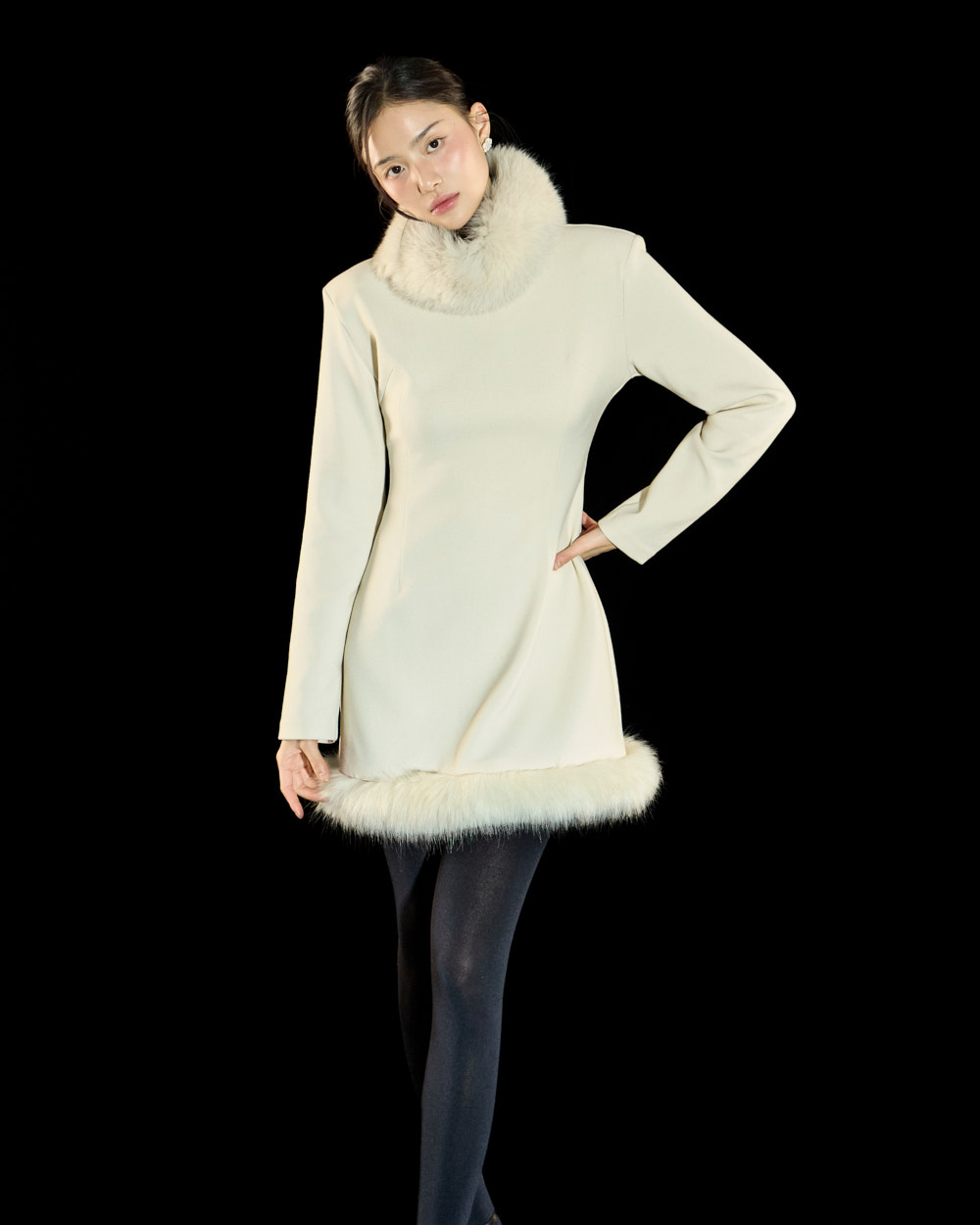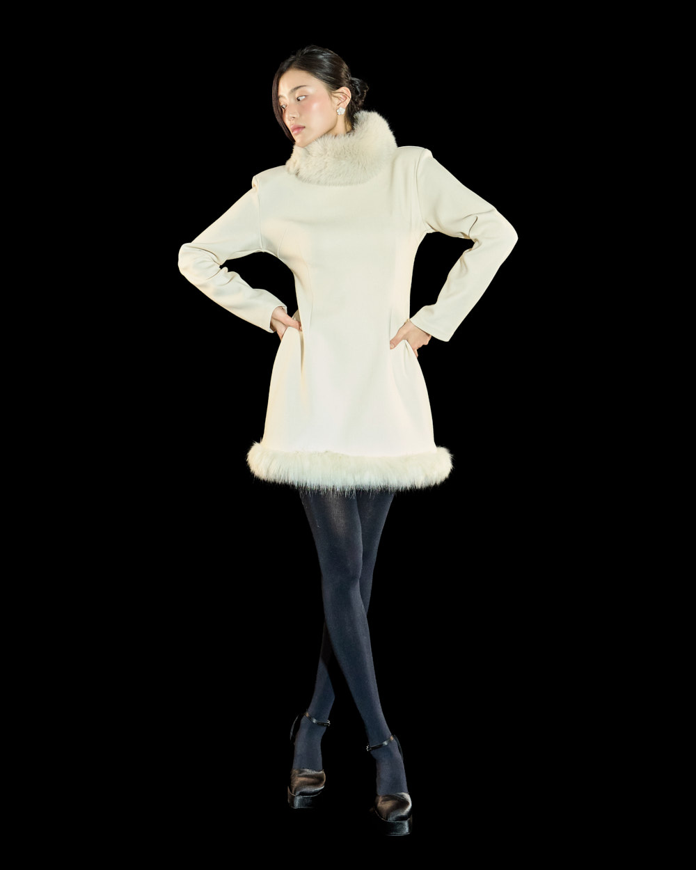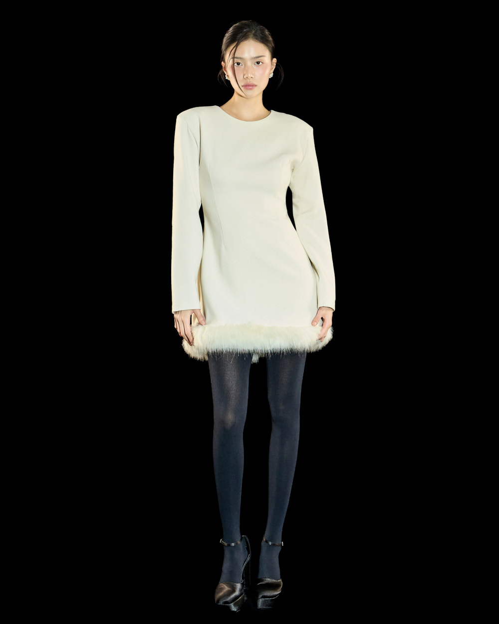 裙摆处的毛绒细节作为高级且独特的点睛元素,
