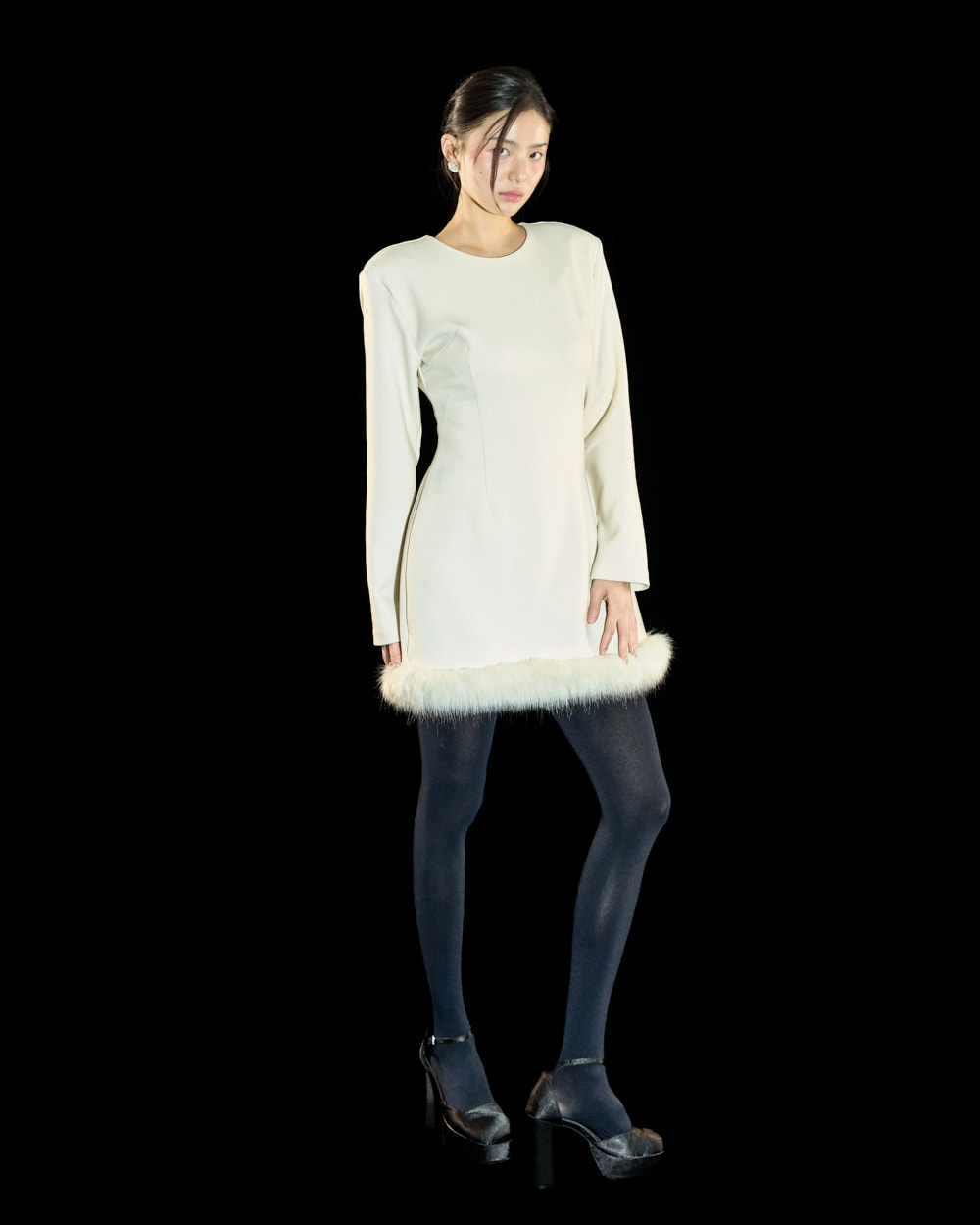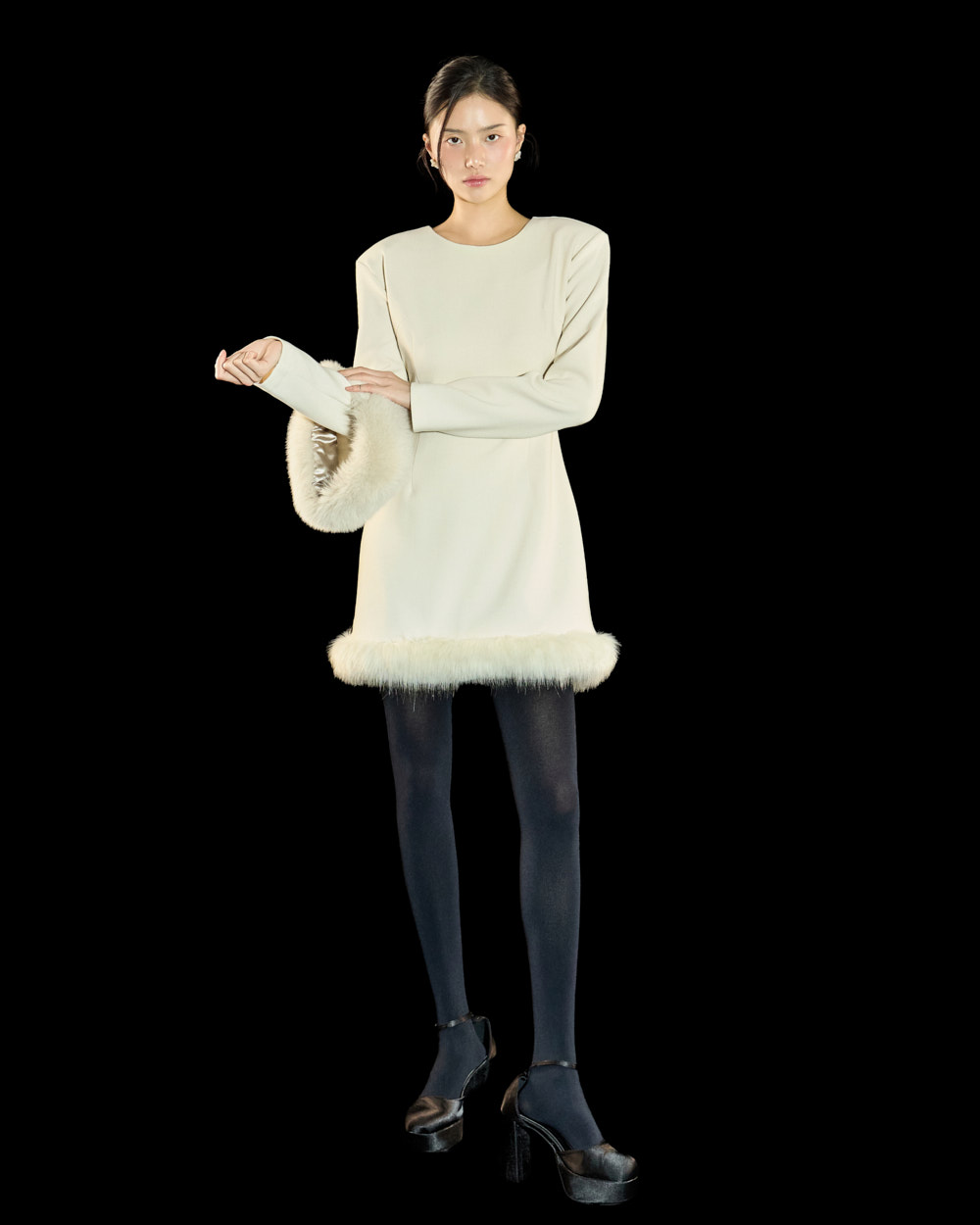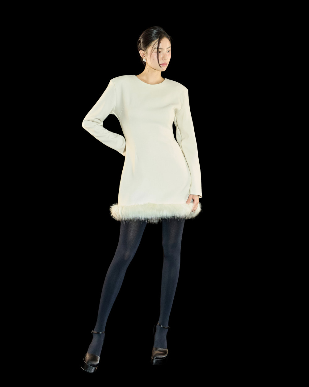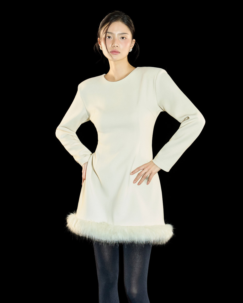 裙摆处的毛绒细节作为高级且独特的点睛元素,