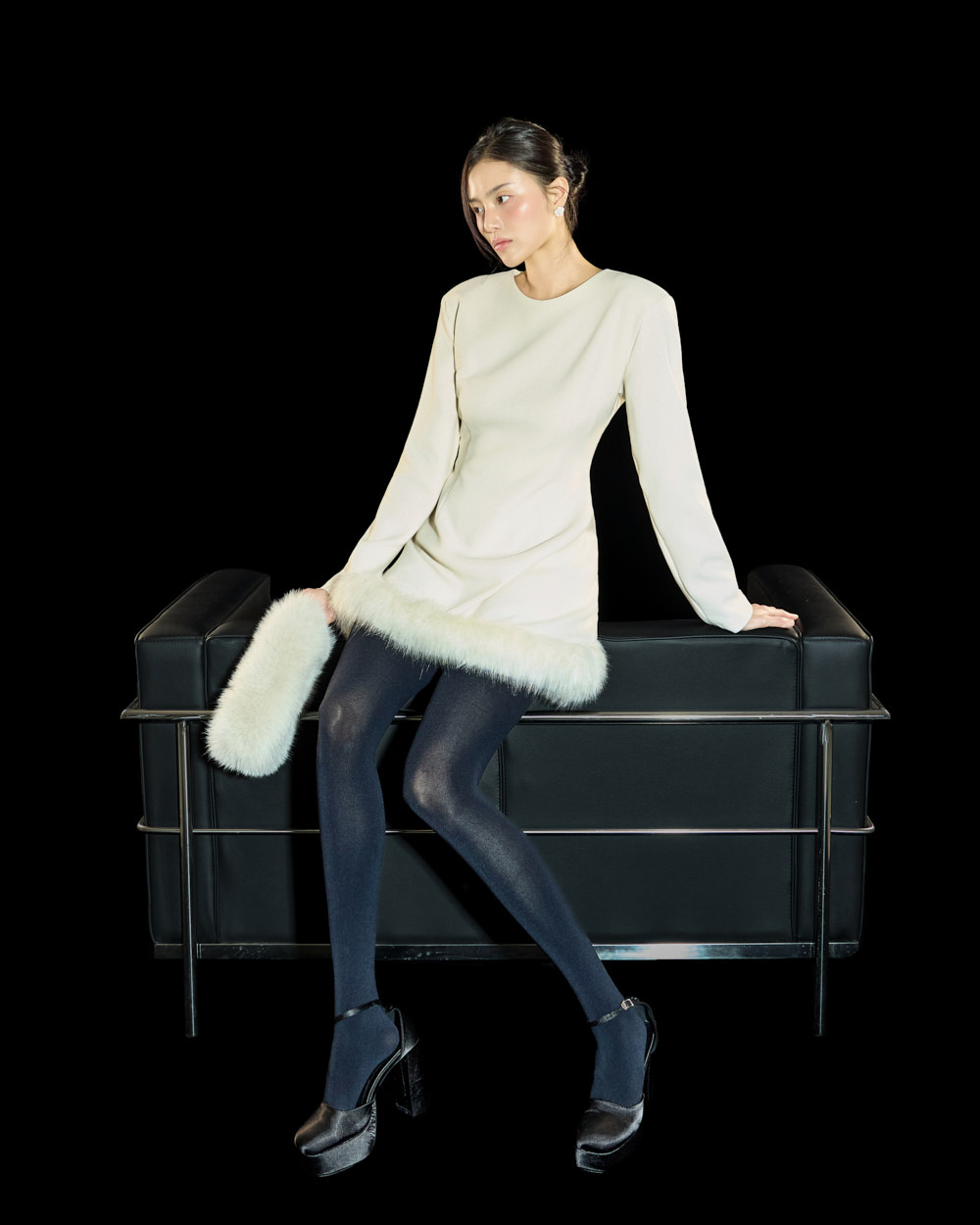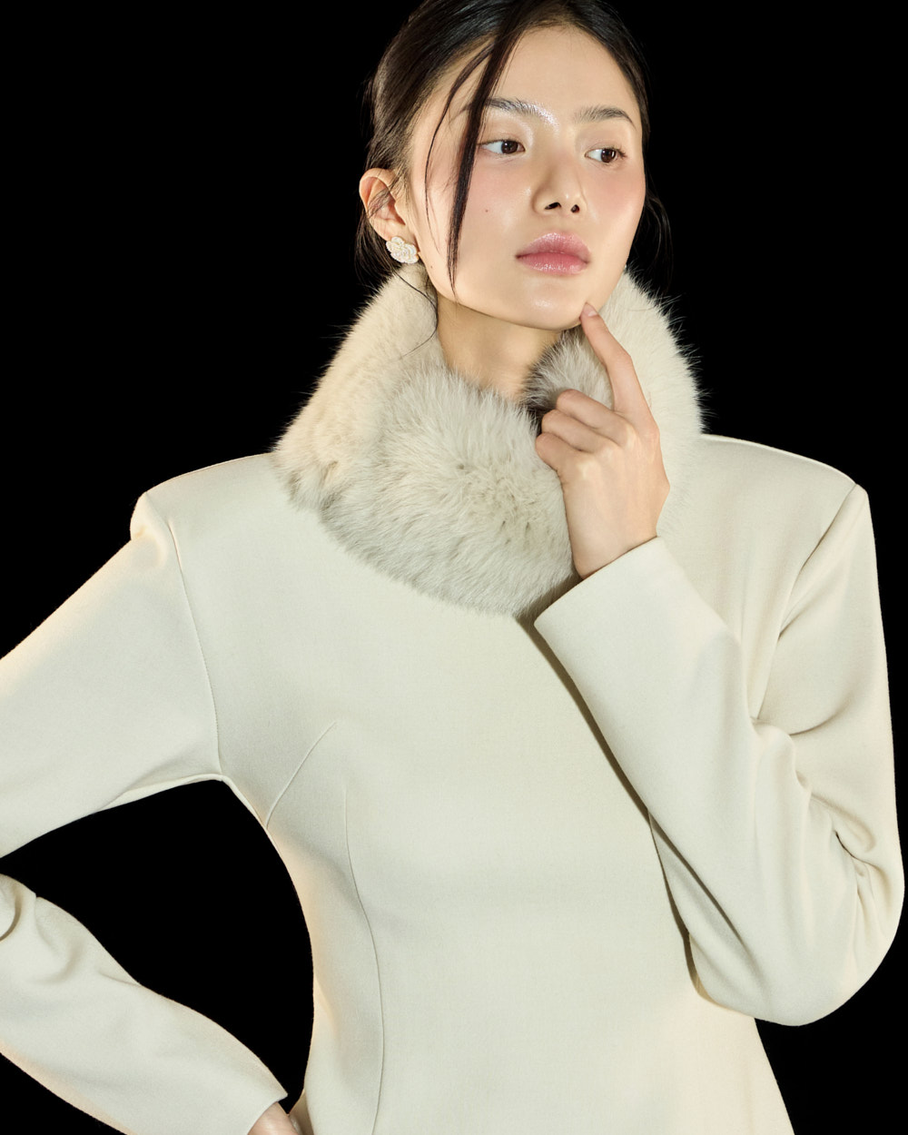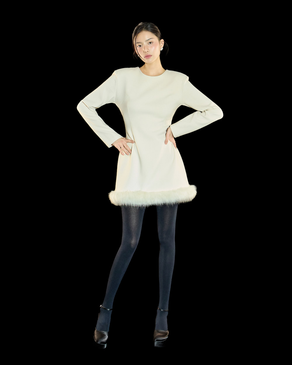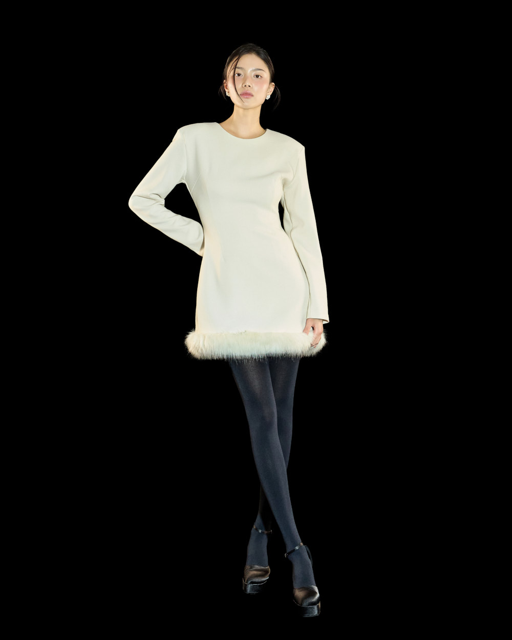 裙摆处的毛绒细节作为高级且独特的点睛元素,