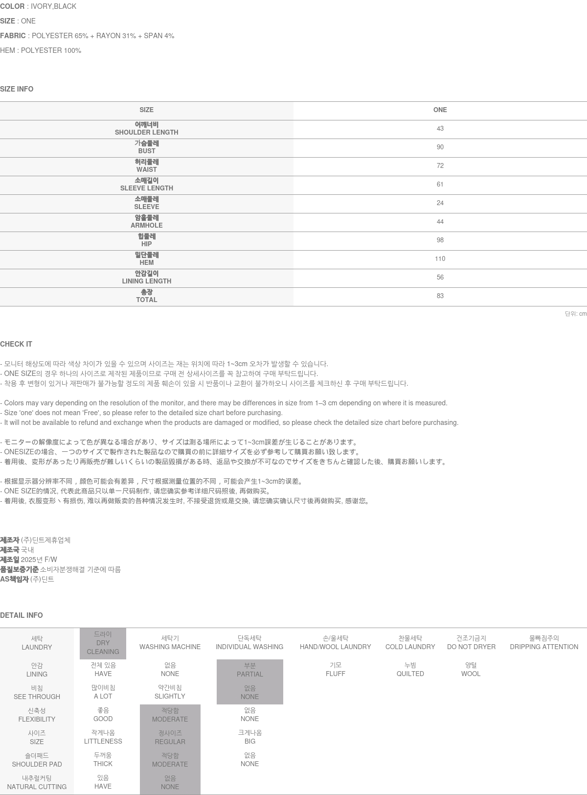 • DINT的所有商品, 使用一般洗滌或是烘乾機, 皆有可能成爲變形或是商品損傷的原因, 建議您使用乾洗.