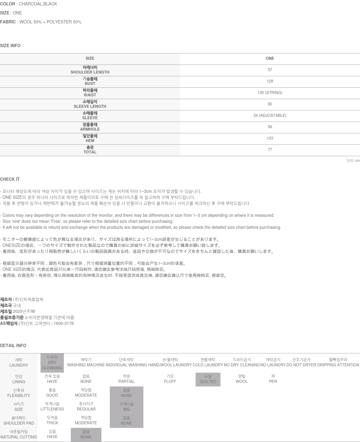 173CM 모델 ONE 사이즈, CHARCOAL 컬러 착용하였습니다.