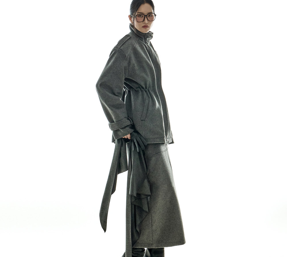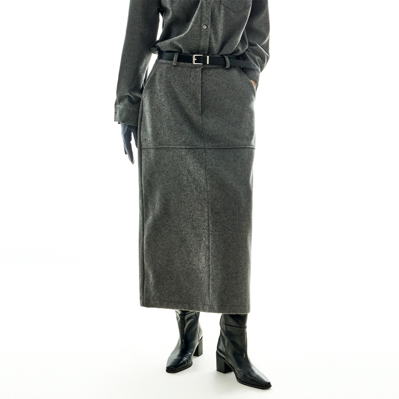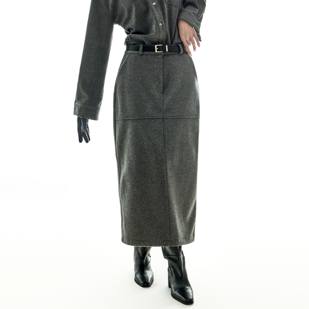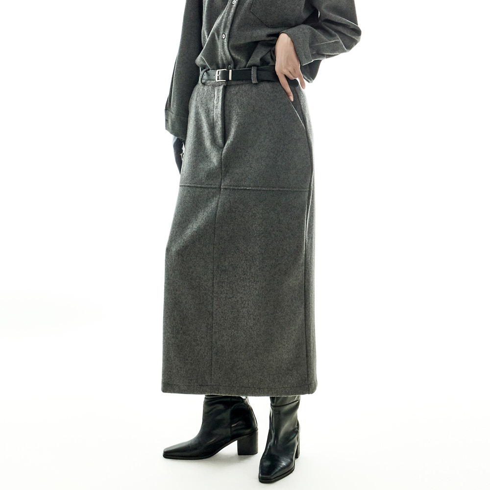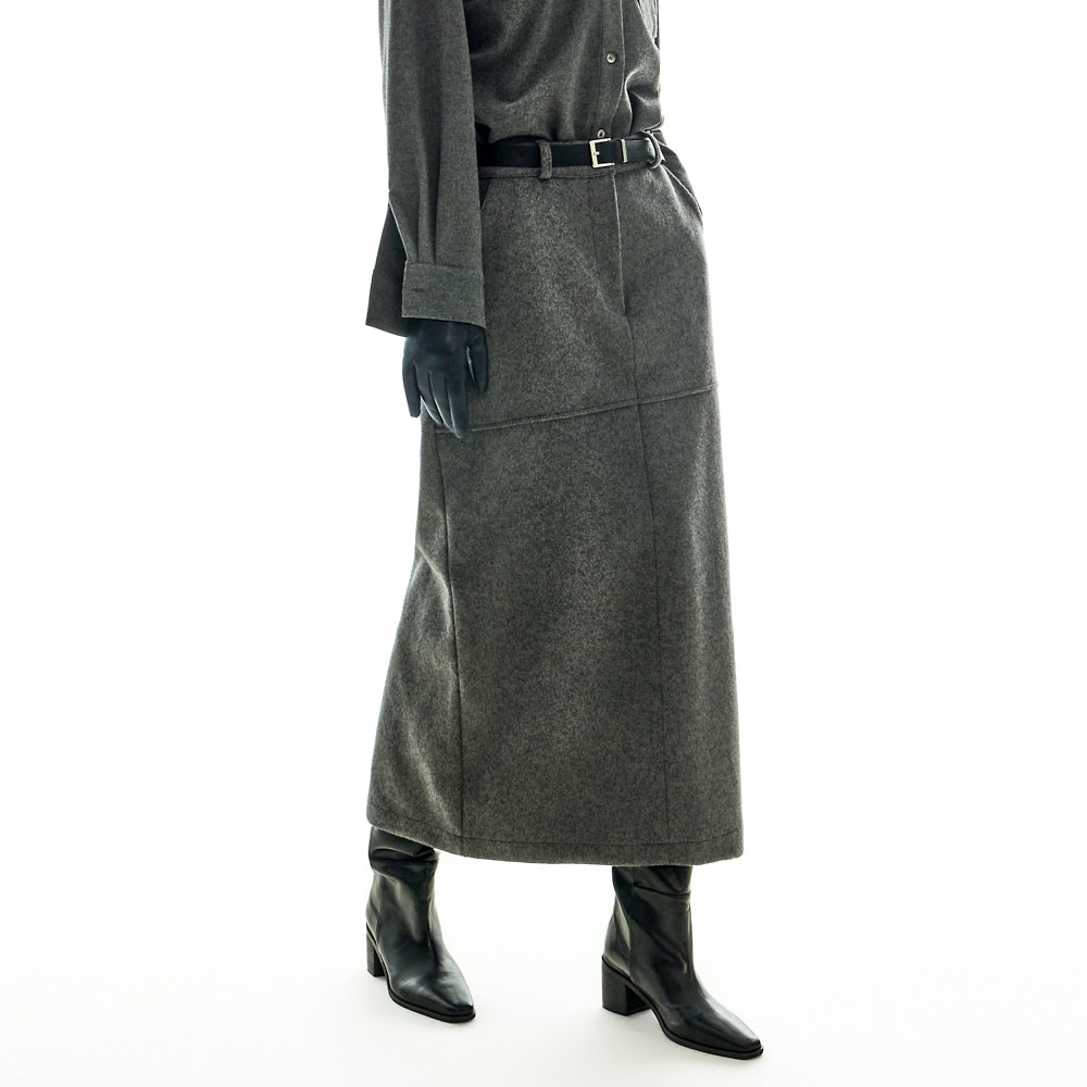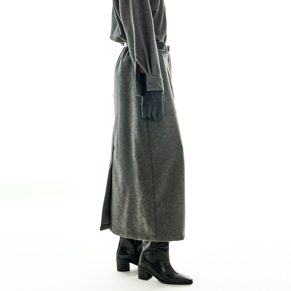 모던하고 깔끔한 무드의 울 롱 스커트입니다.