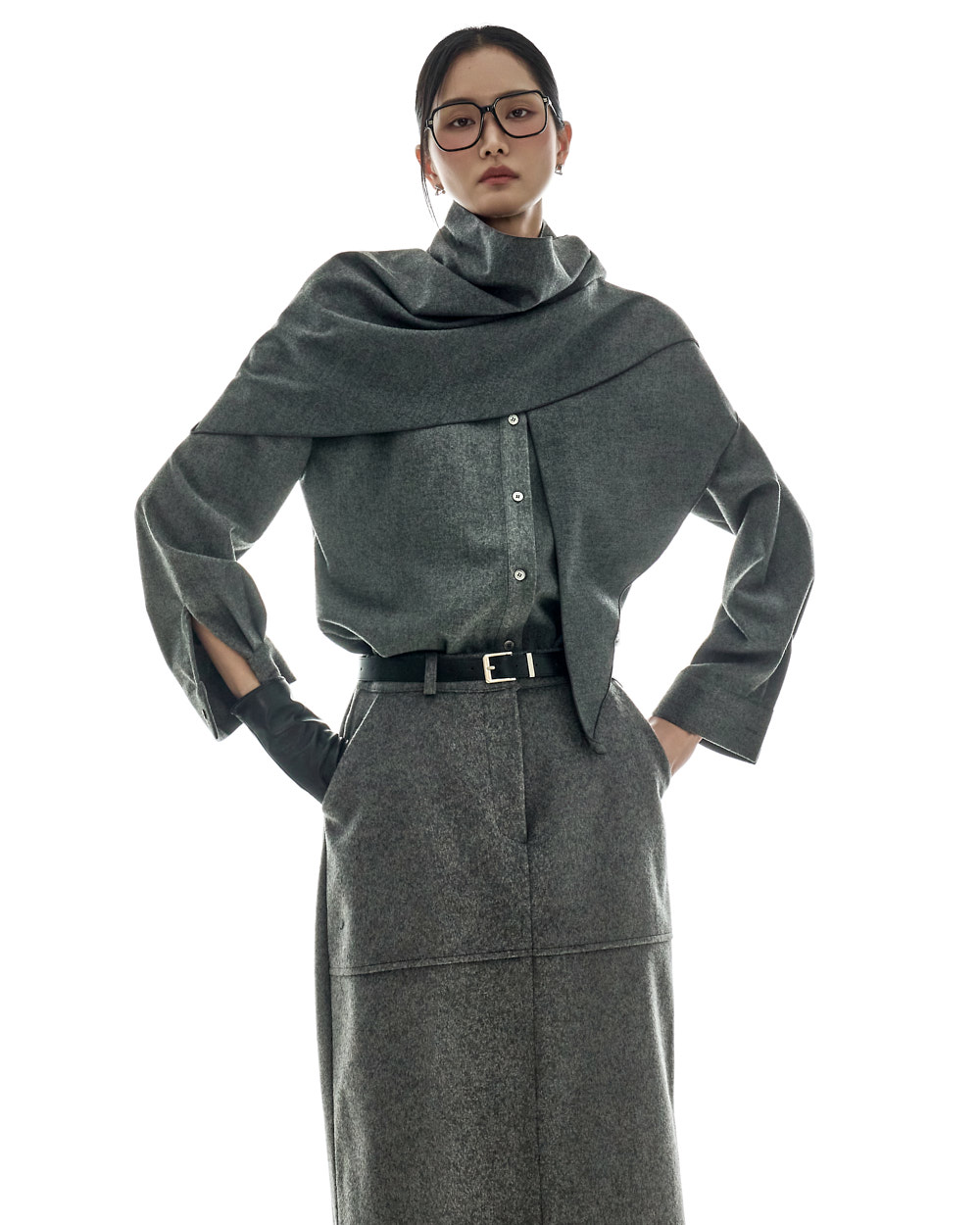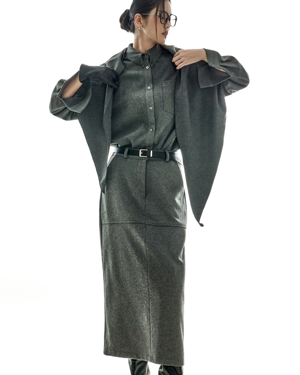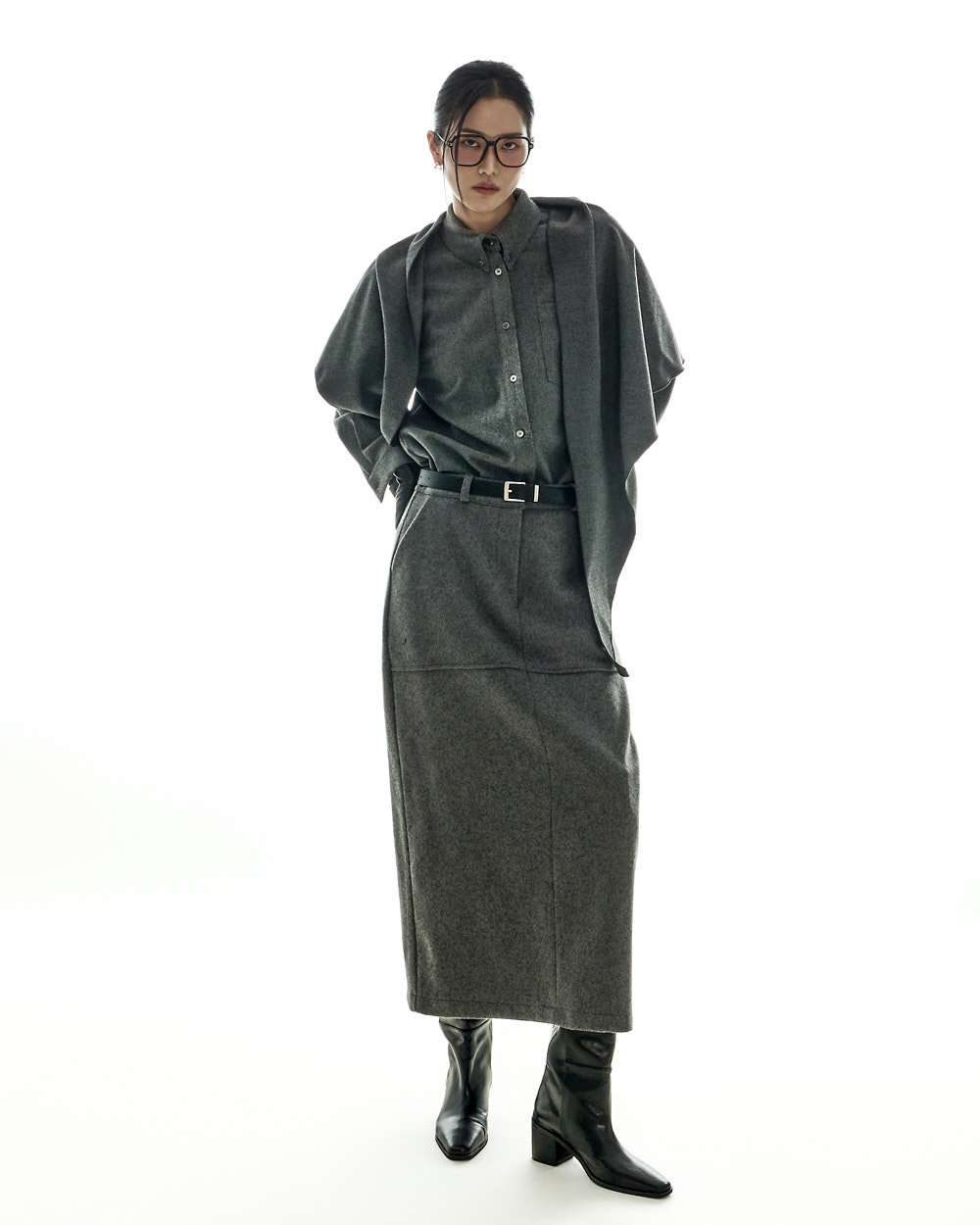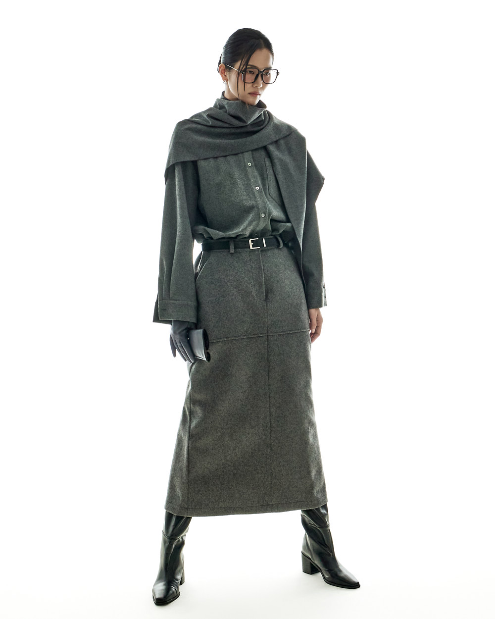 모던하고 깔끔한 무드의 울 롱 스커트입니다.