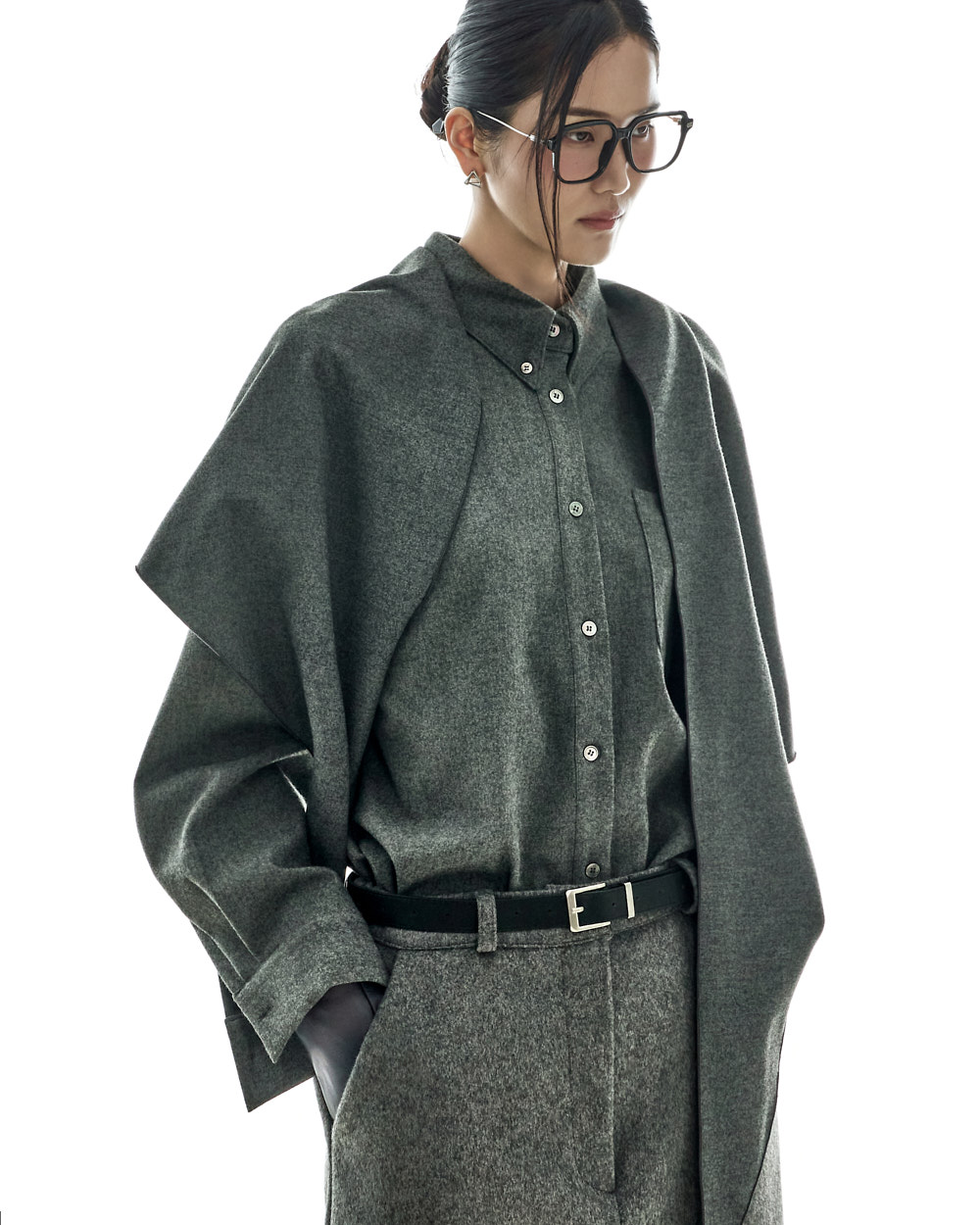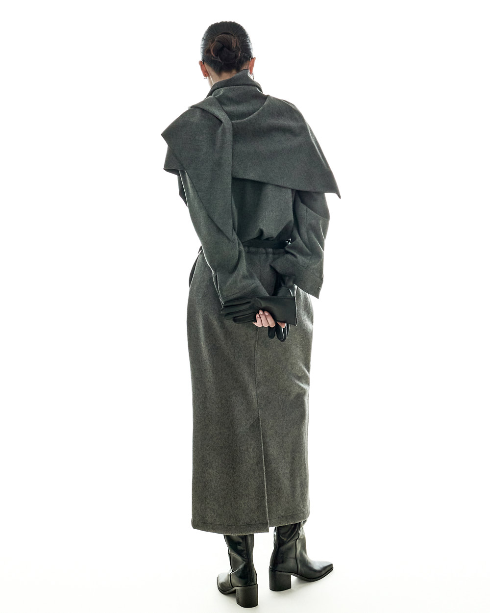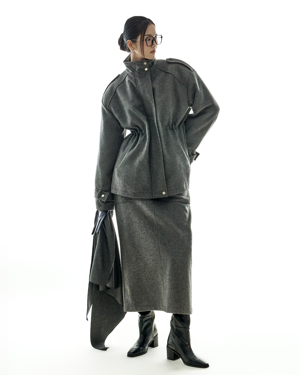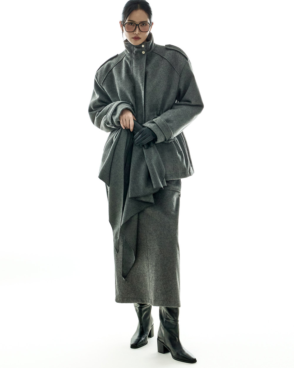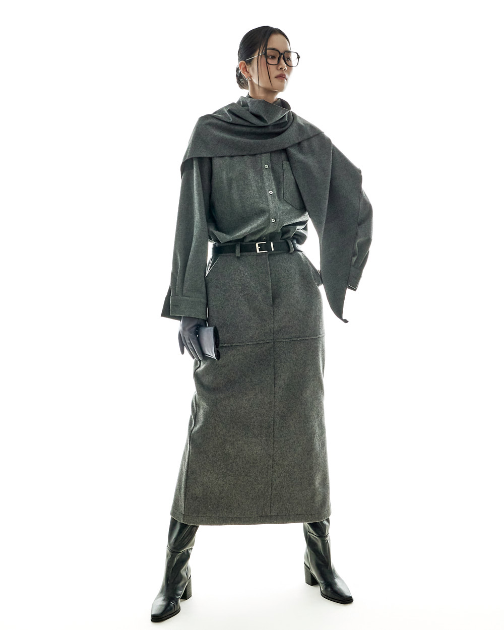 모던하고 깔끔한 무드의 울 롱 스커트입니다.