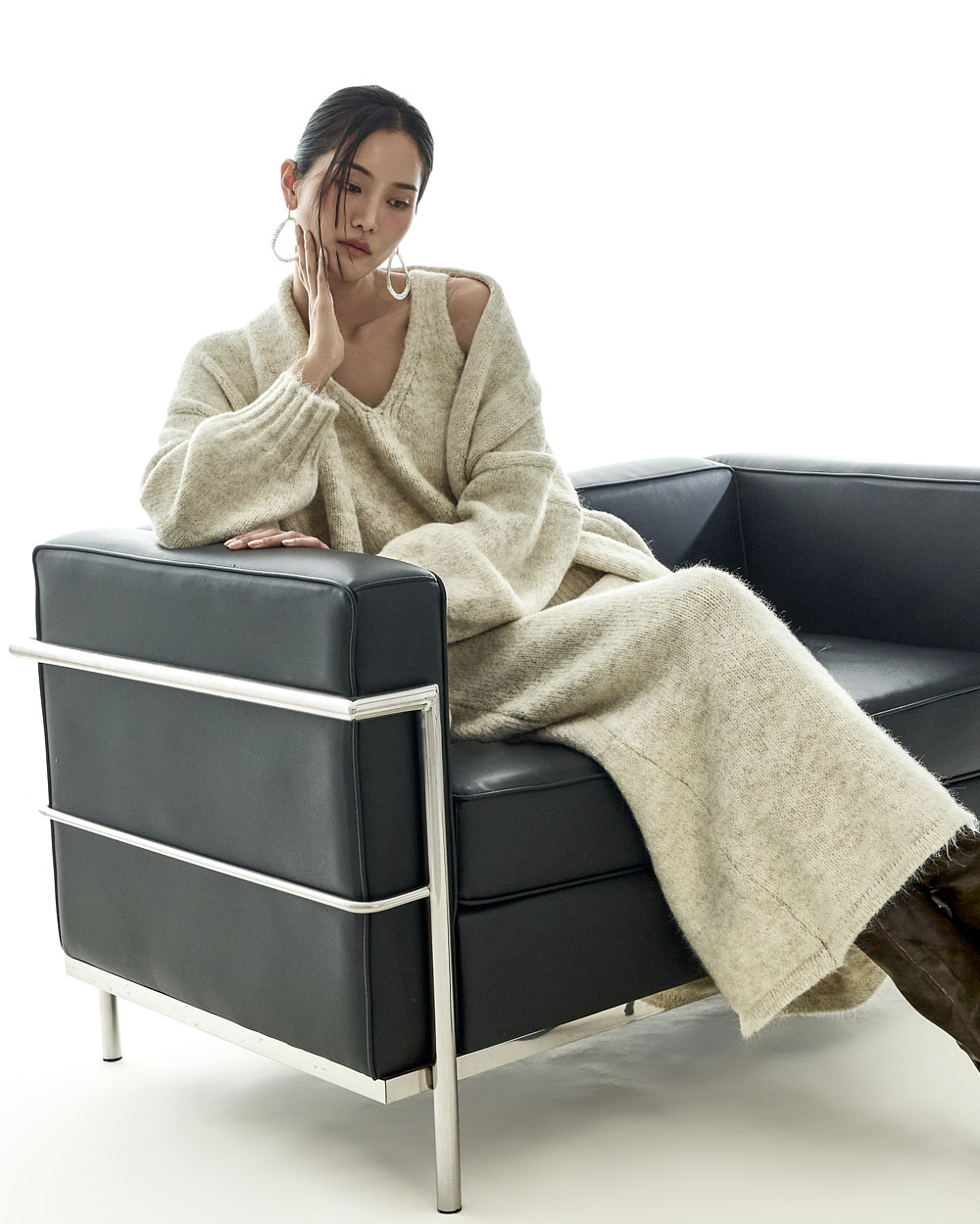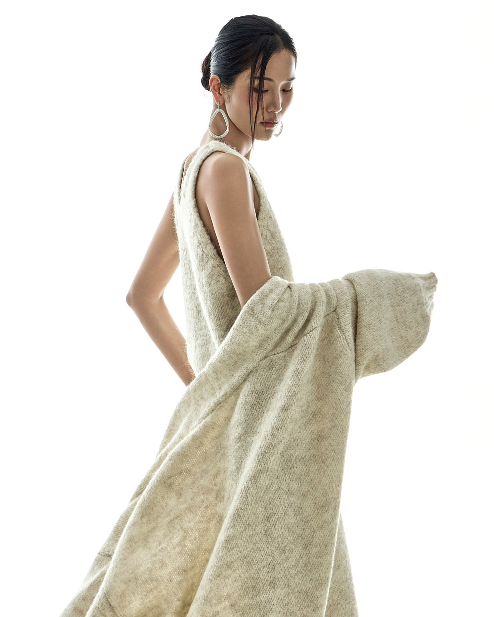 173CM 模特穿着 ONE 尺码,IVORY 颜色。