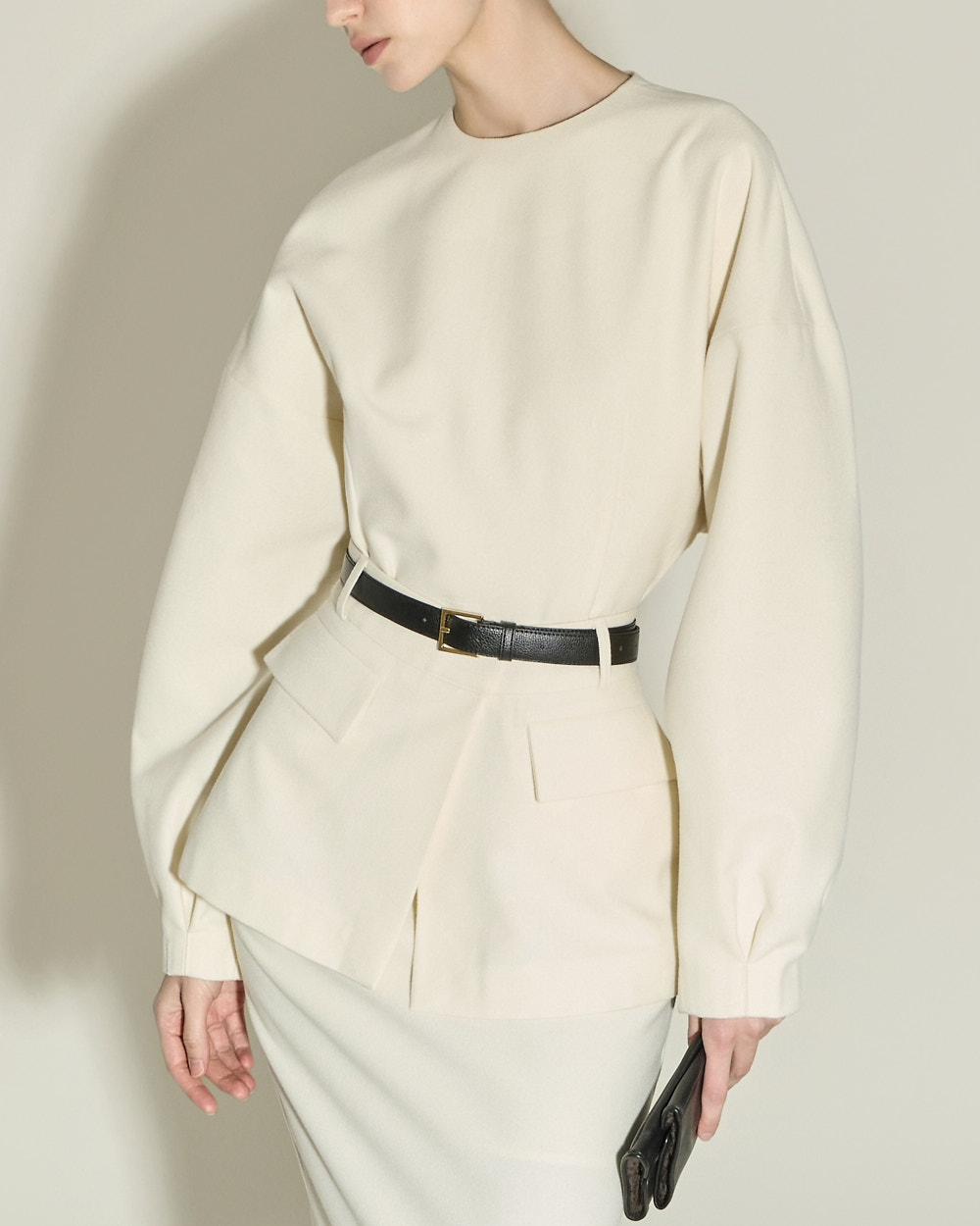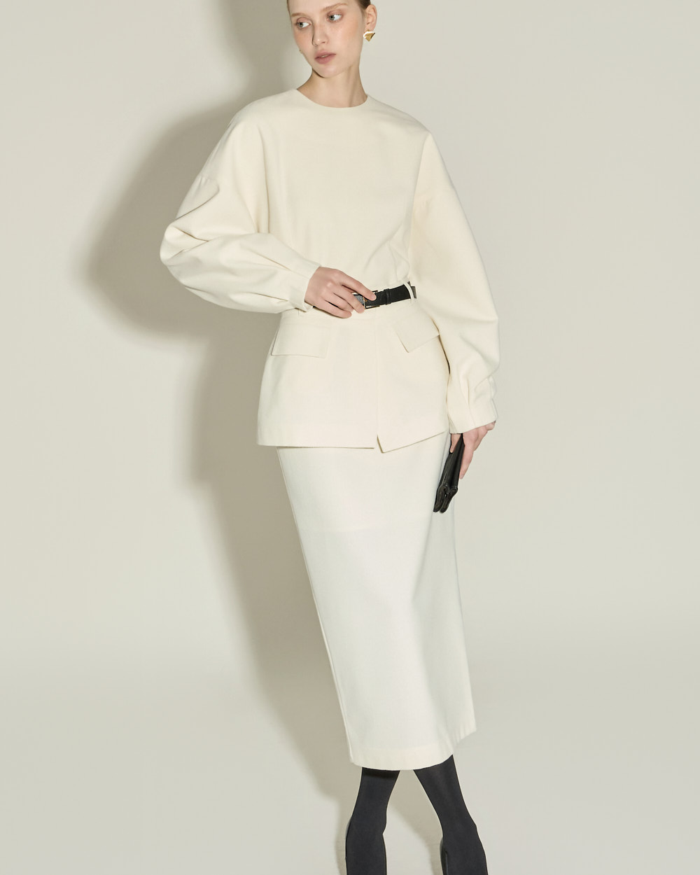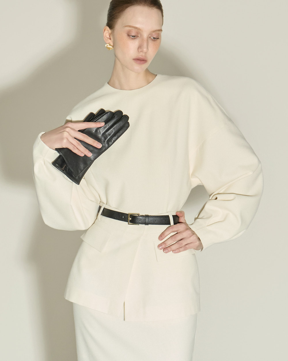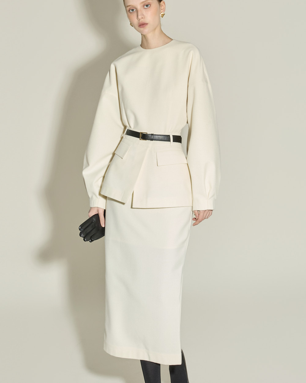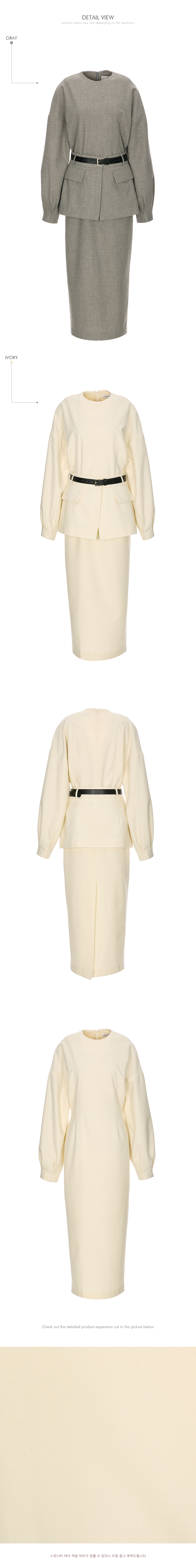 IVORY 配色搭配金色扣环腰带,GRAY 配色搭配银色扣环腰带,